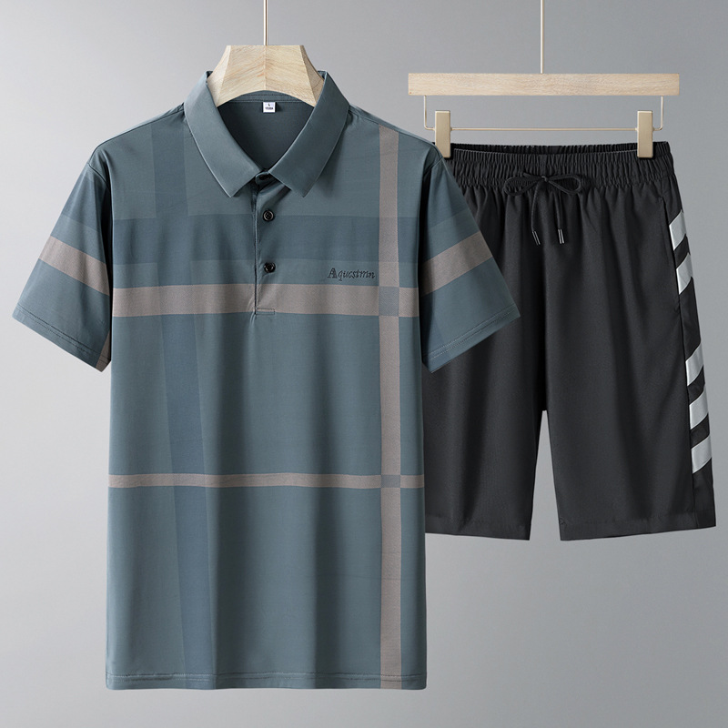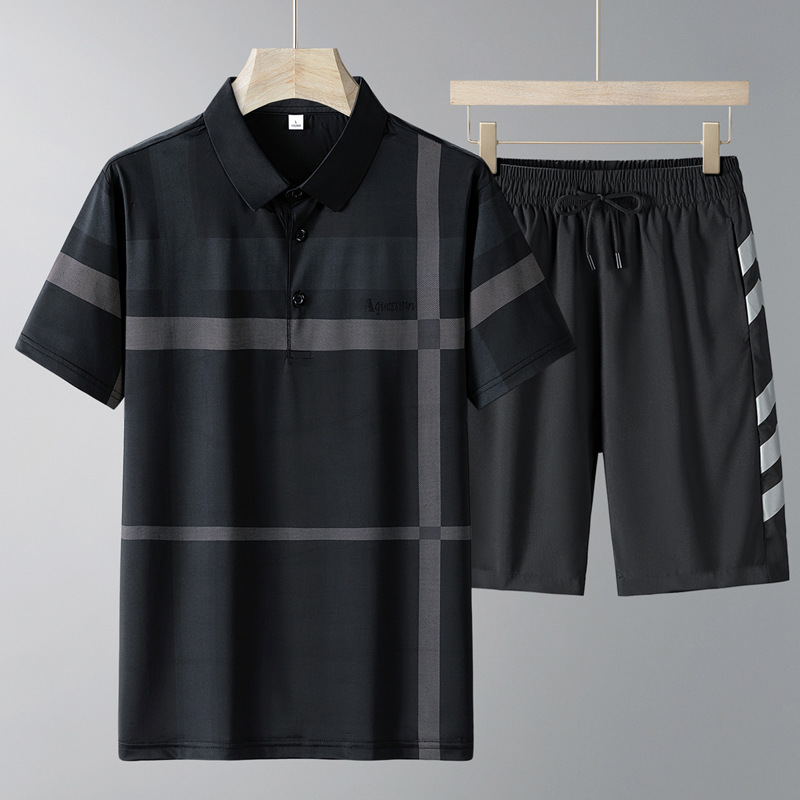 아빠 여름 반팔 티셔츠 여름 아이스 실크 중년 남성 할아버지 옷 중년 반팔 반바지 세트