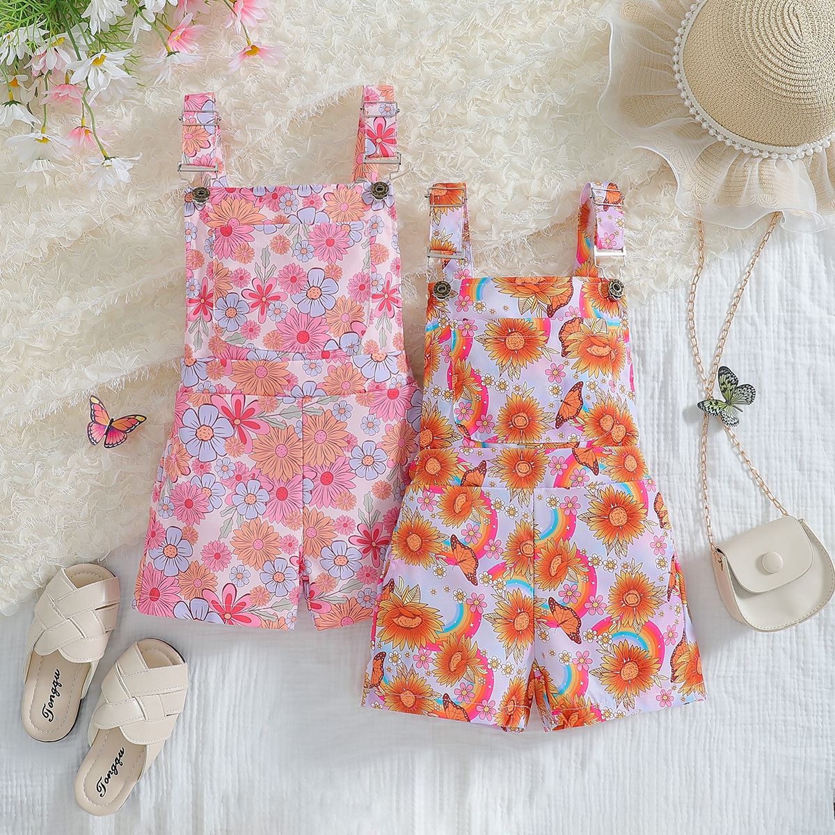 아마존 아동복 유럽 및 미국 소녀 서스펜더 바지 여름 새로운 유행 스타일 어린이 인쇄 서스펜더 바지 어린이 바지스토어 가기