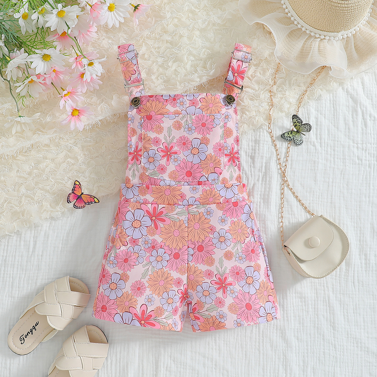 아마존 아동복 유럽 및 미국 소녀 서스펜더 바지 여름 새로운 유행 스타일 어린이 인쇄 서스펜더 바지 어린이 바지