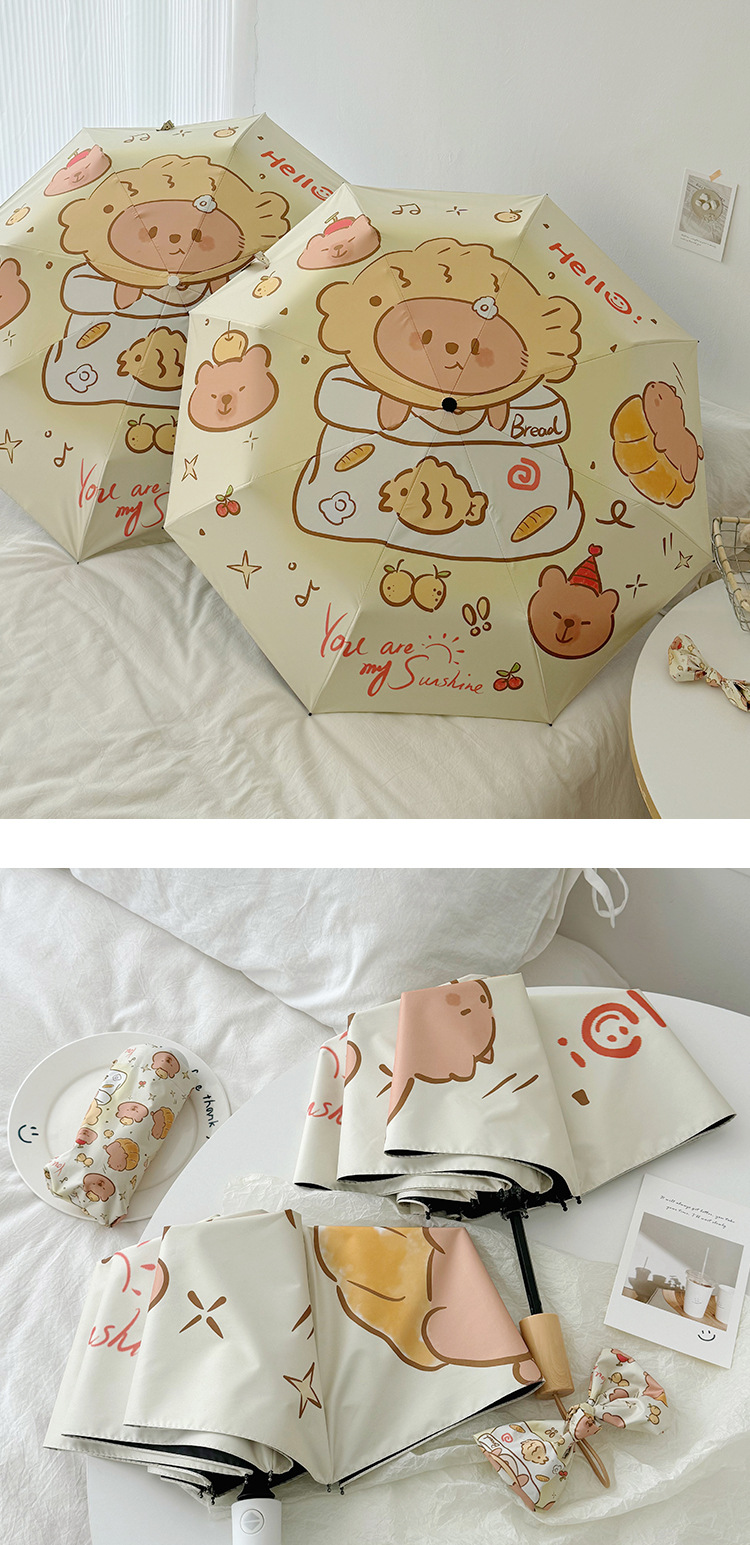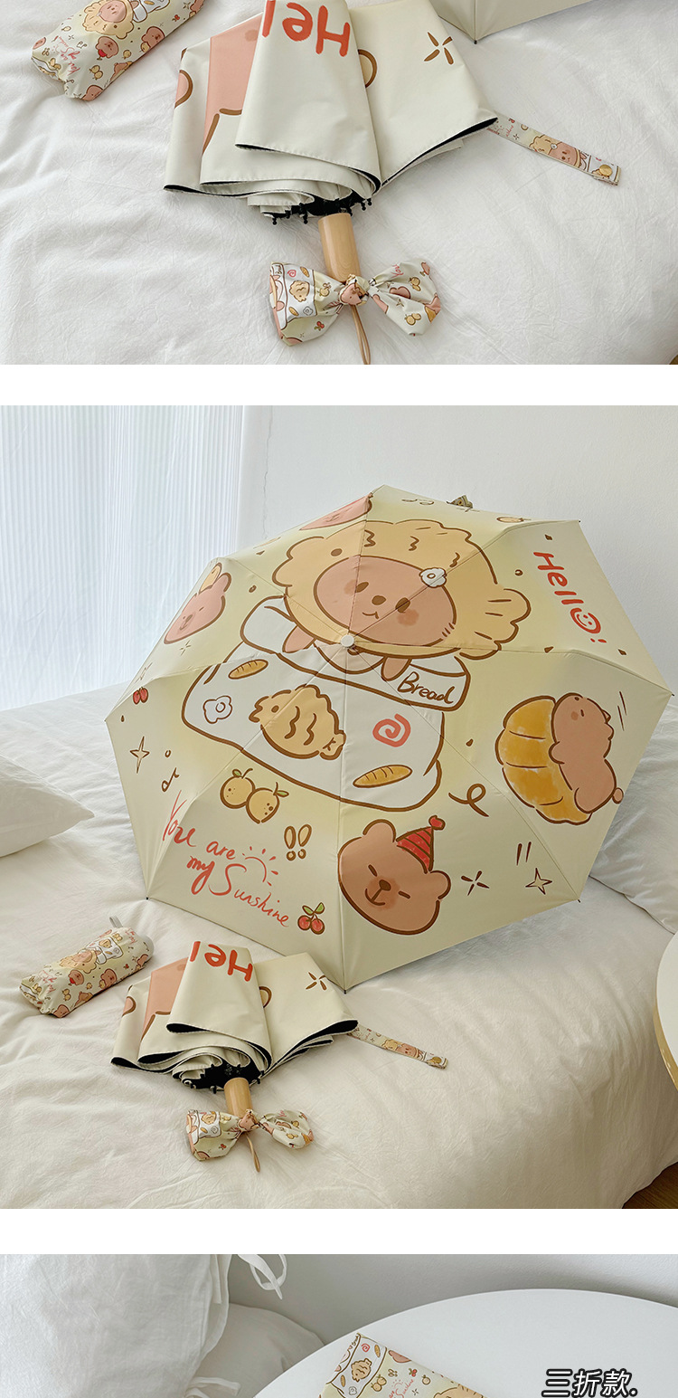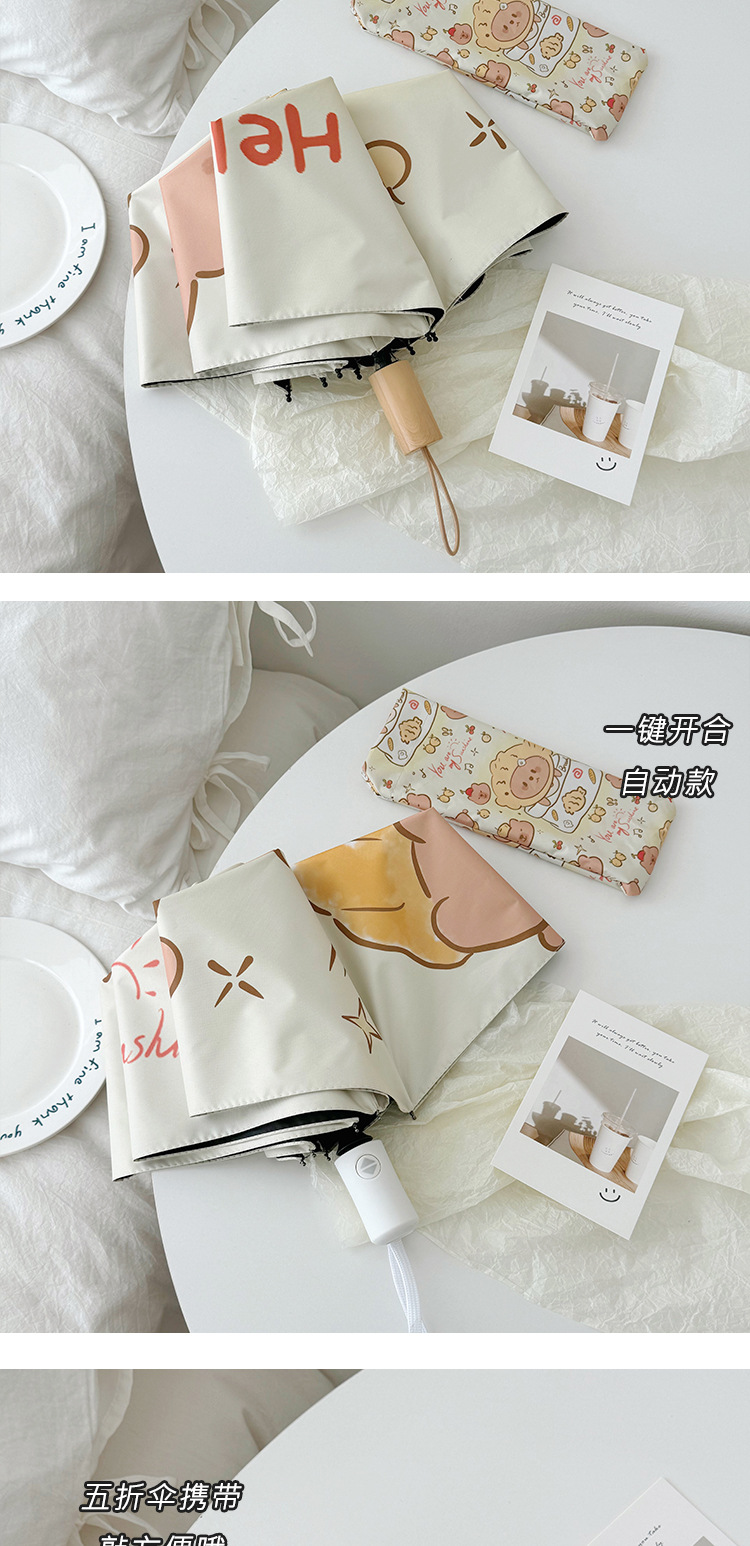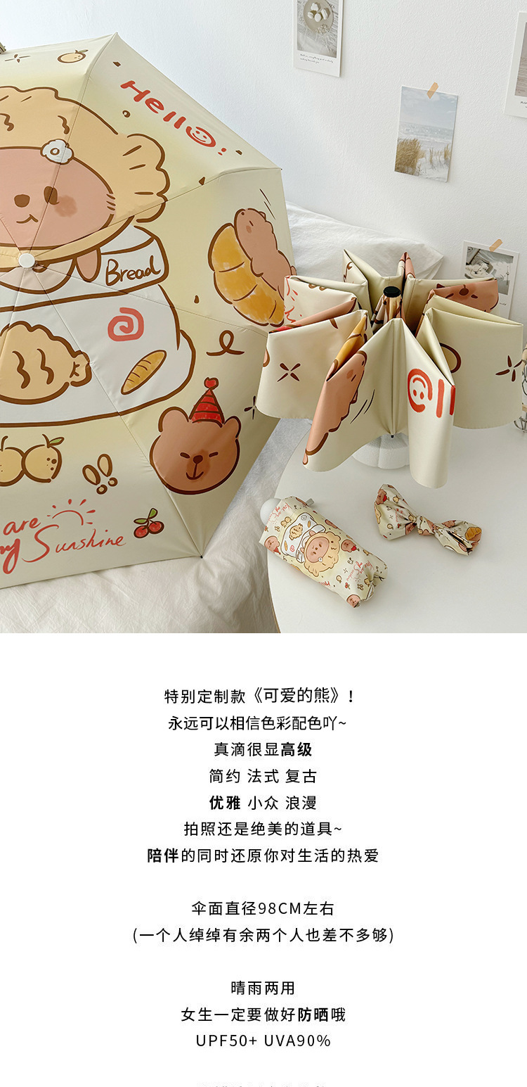 귀여운 곰 만화 어린이 우산 선 스크린 안티 자외선 태양 우산 3 배 이중 사용 자동 우산