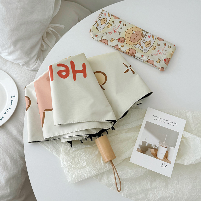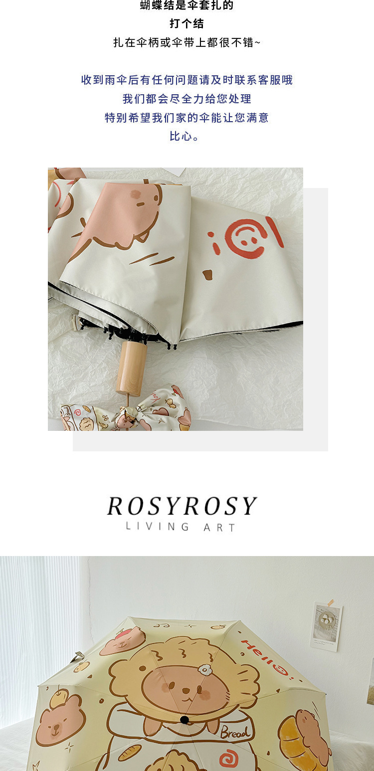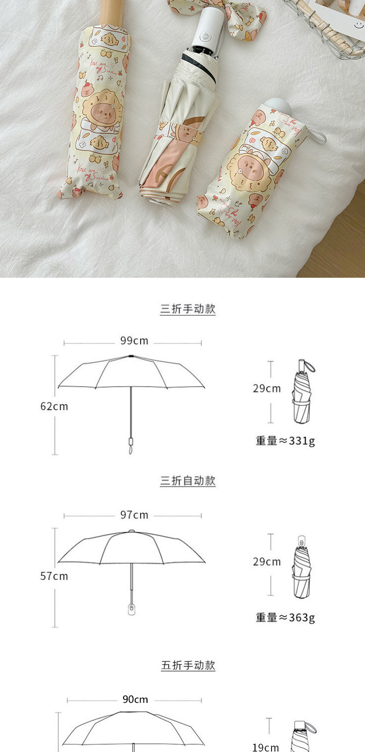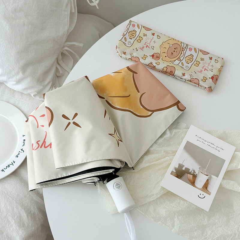 귀여운 곰 만화 어린이 우산 선 스크린 안티 자외선 태양 우산 3 배 이중 사용 자동 우산