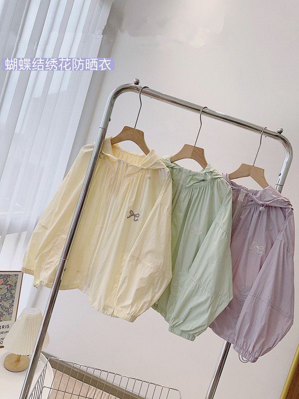 소녀 선 스크린 의류 2024 여름 여성 어린이 한국식 초박형 활 자수 신속 건조 후드 코트 선 스크린 의류스토어 가기