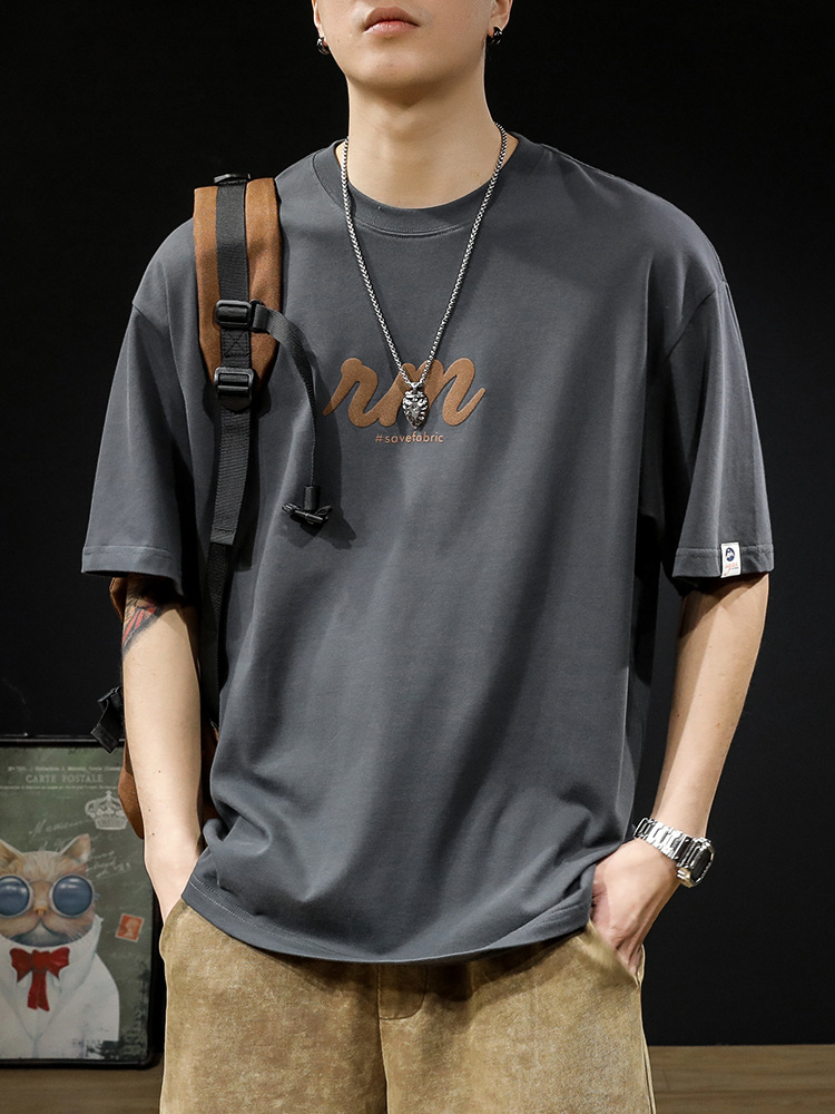 아메리칸 레트로 반팔 티셔츠 남자 2024 년 여름 뉴 헤비 1 남자 트렌디 브랜드 느슨한 반팔 남성 트렌디 T
