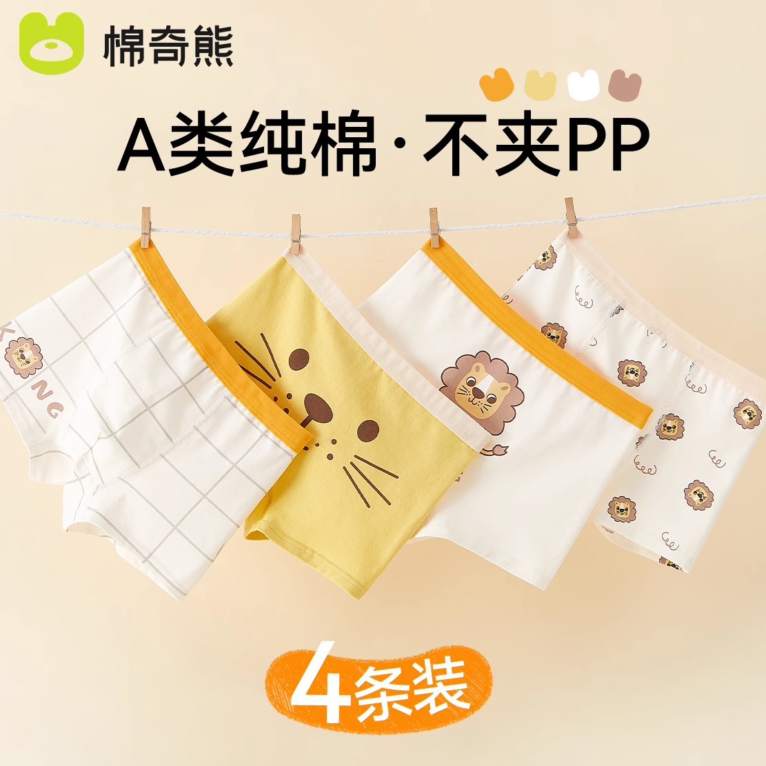 • 킹 라이온-4 팩 클래스 엉덩이 없이 순수한 면화