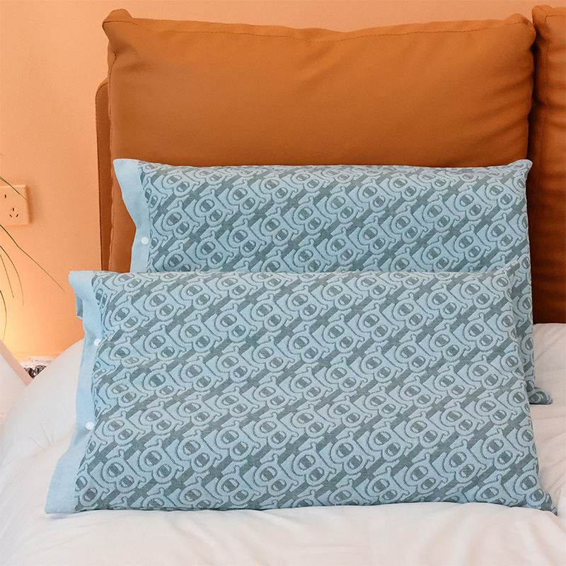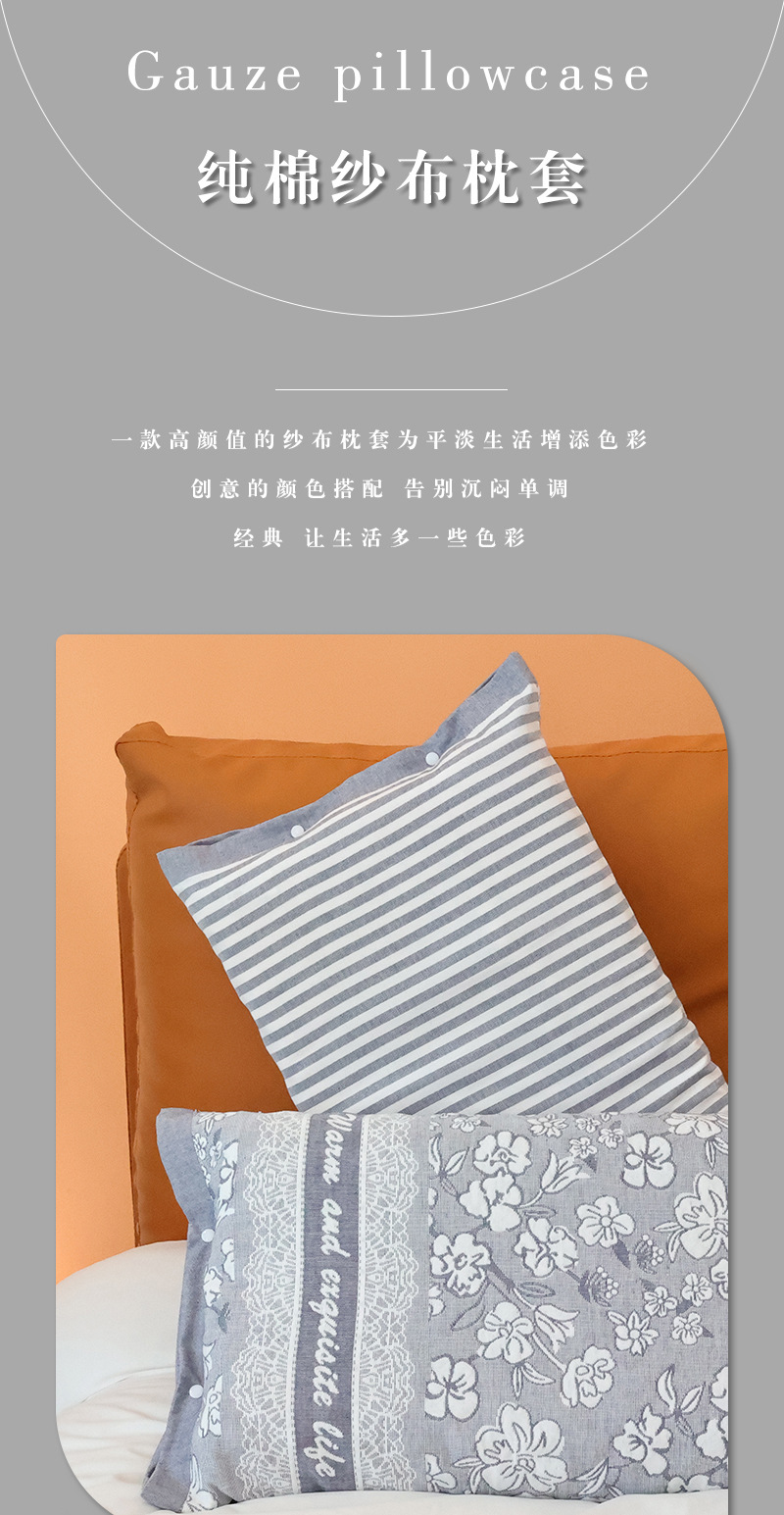 • 회색 파란색과 흰색 도자기 거즈 베갯잇이