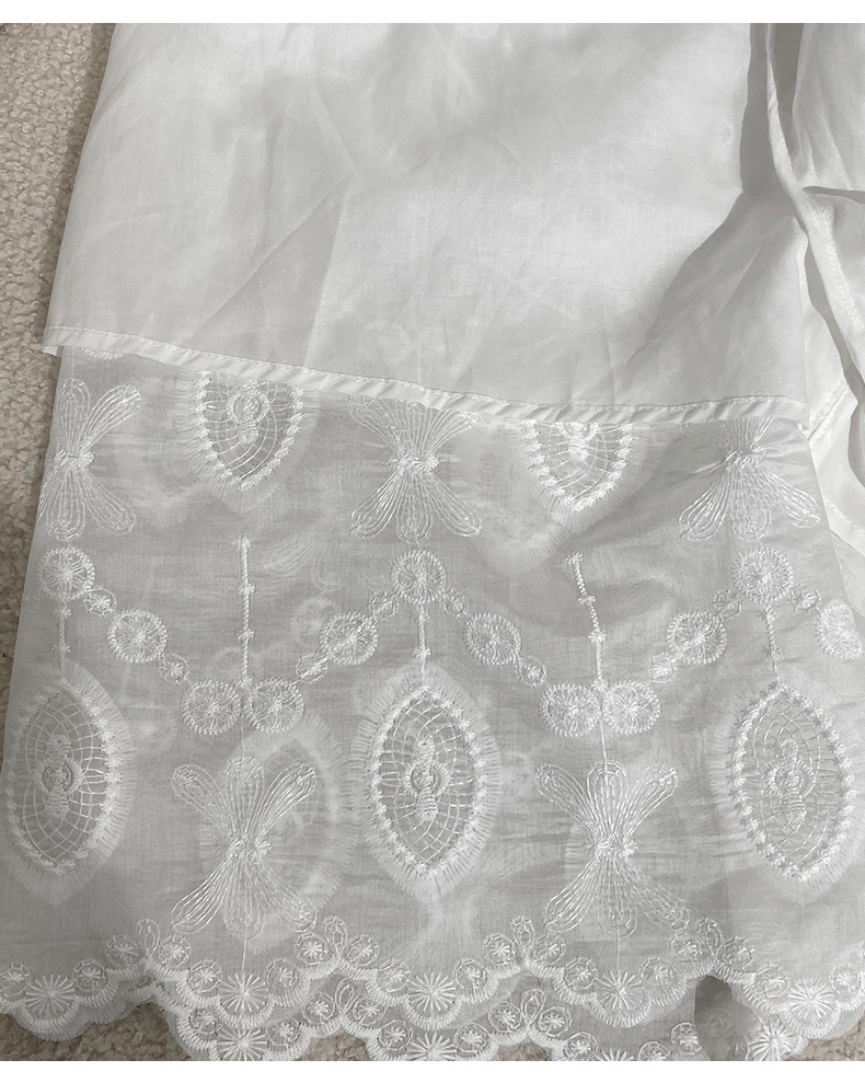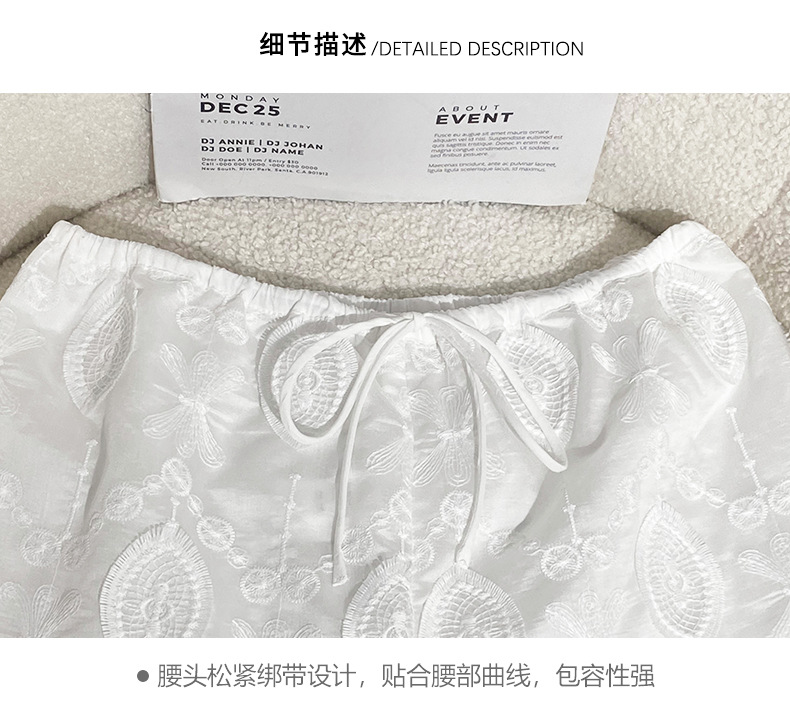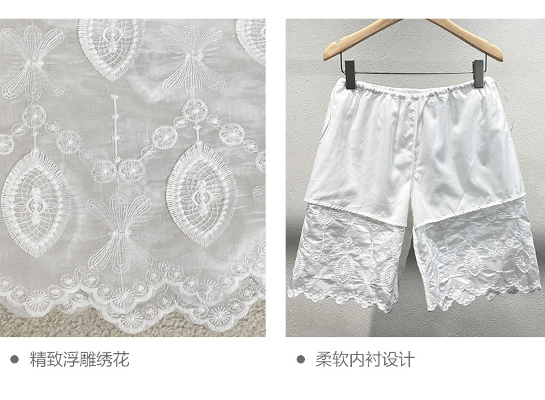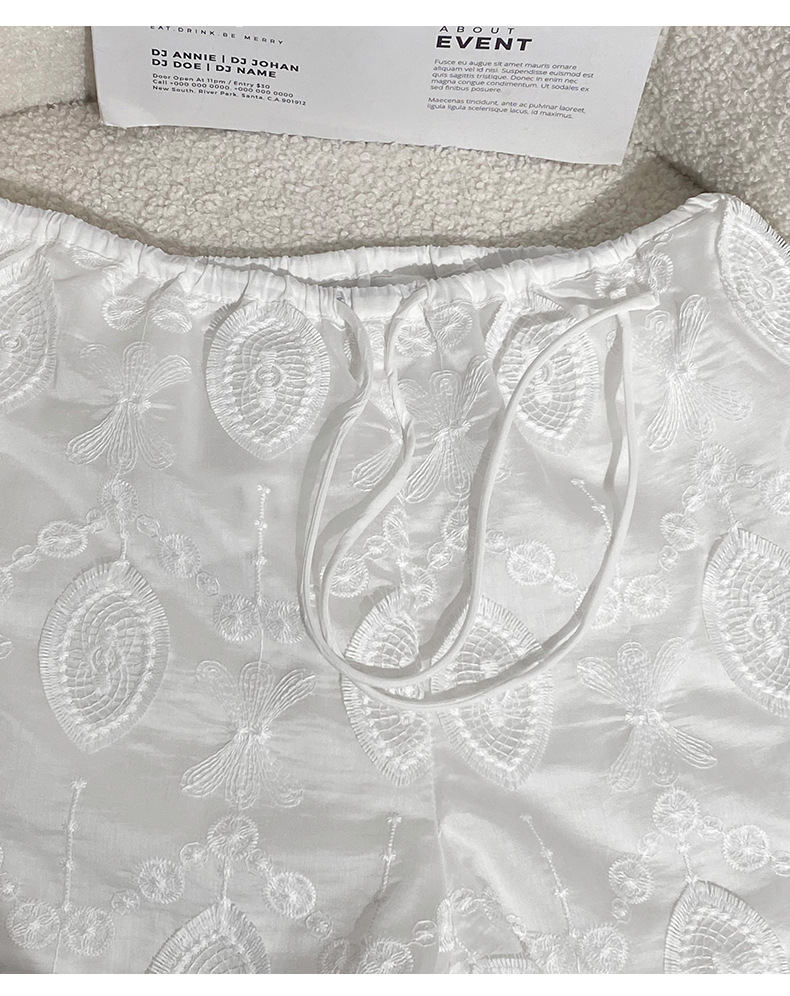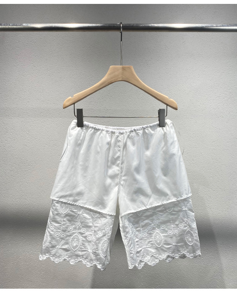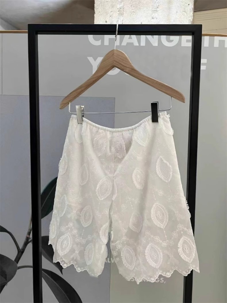 틈새 2024 여름 여성을위한 새로운 화이트 타이트 허리 레이스 업 자수 레이스 반바지스토어 가기