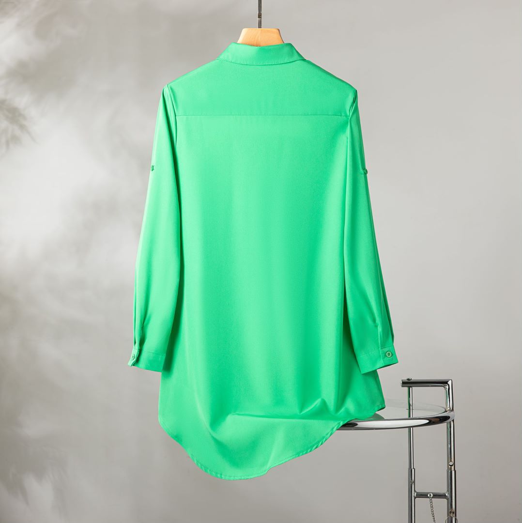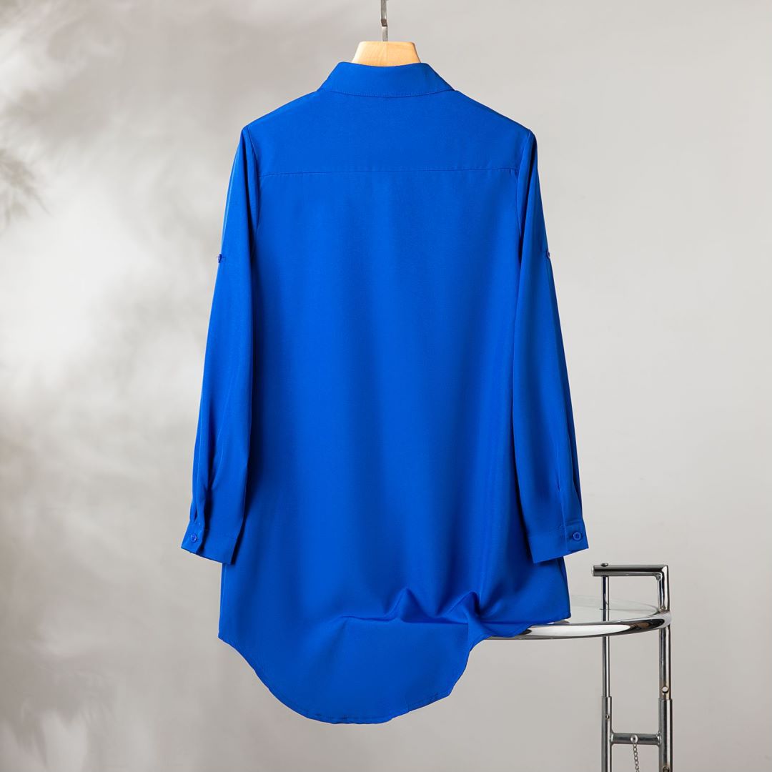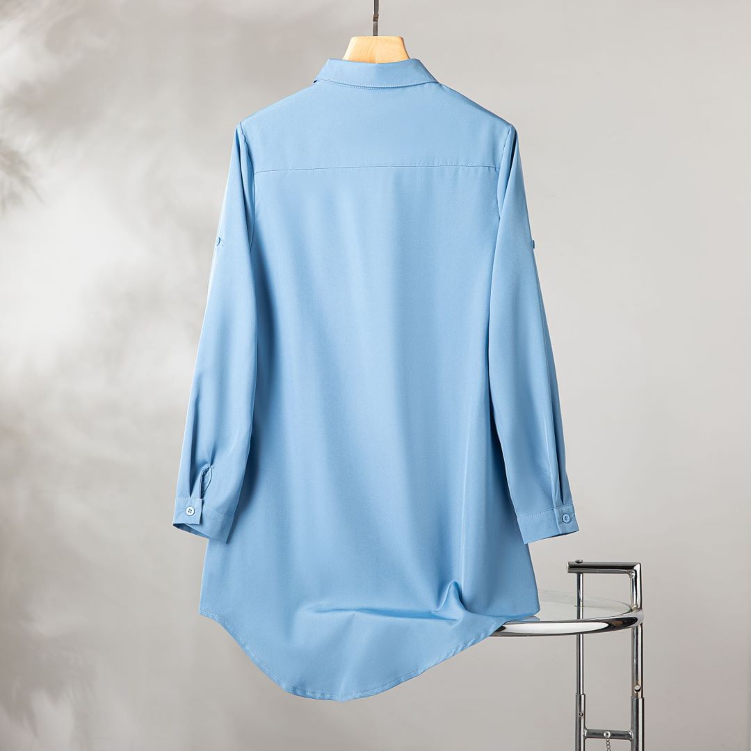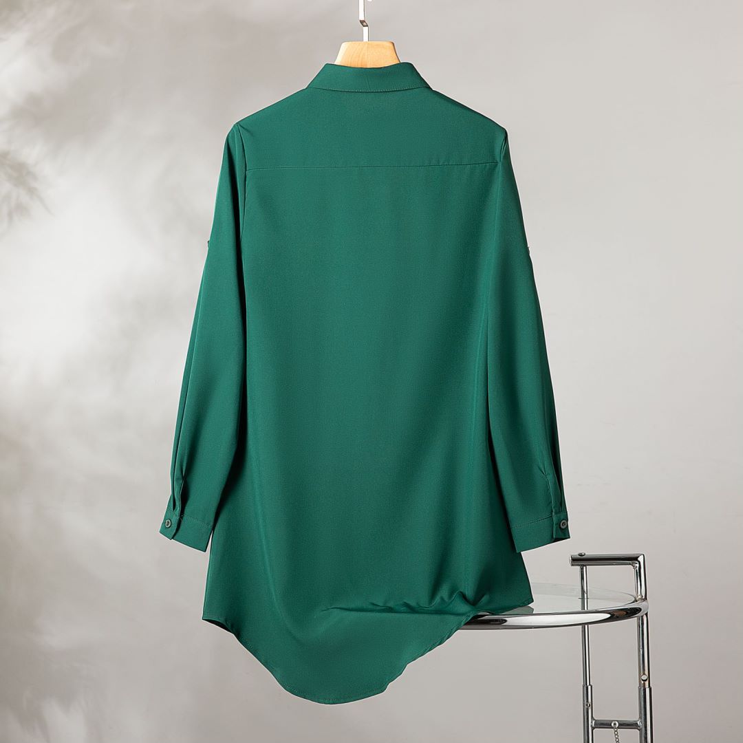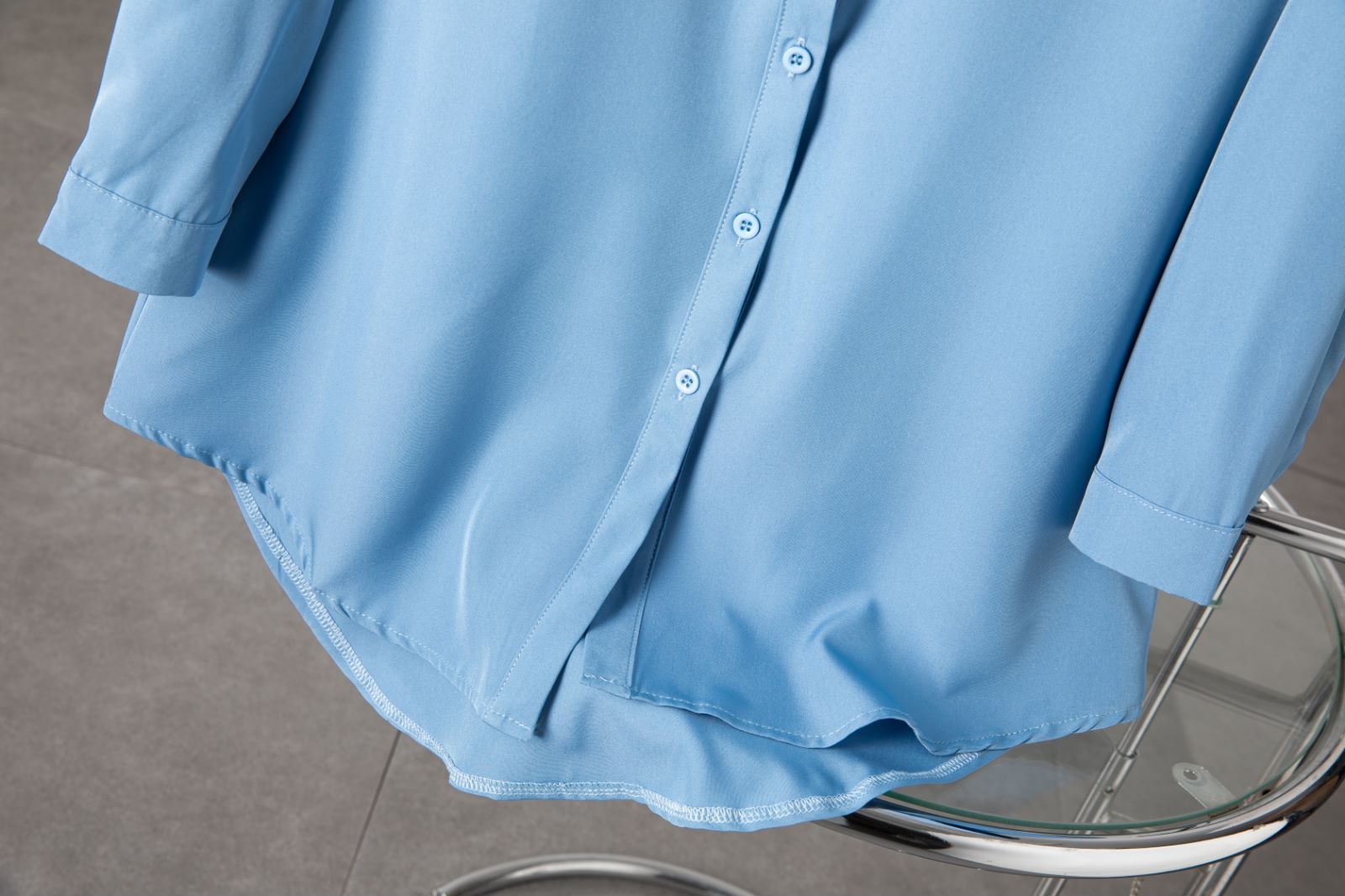 새로운 한국 스타일 남자 친구 BF 스타일 플러스 사이즈 긴 소매 화이트 셔츠 스커트 탑 루즈 셔츠 중간 길이 셔츠 여성