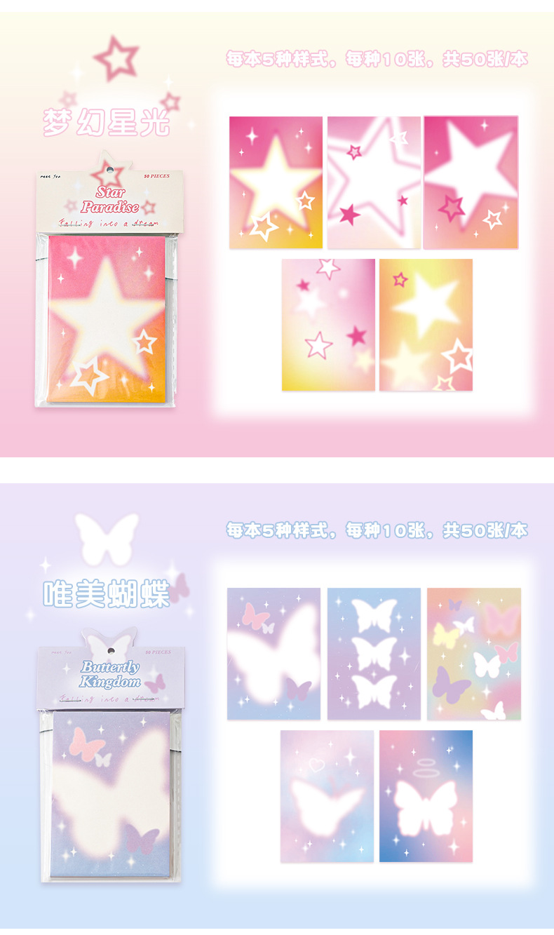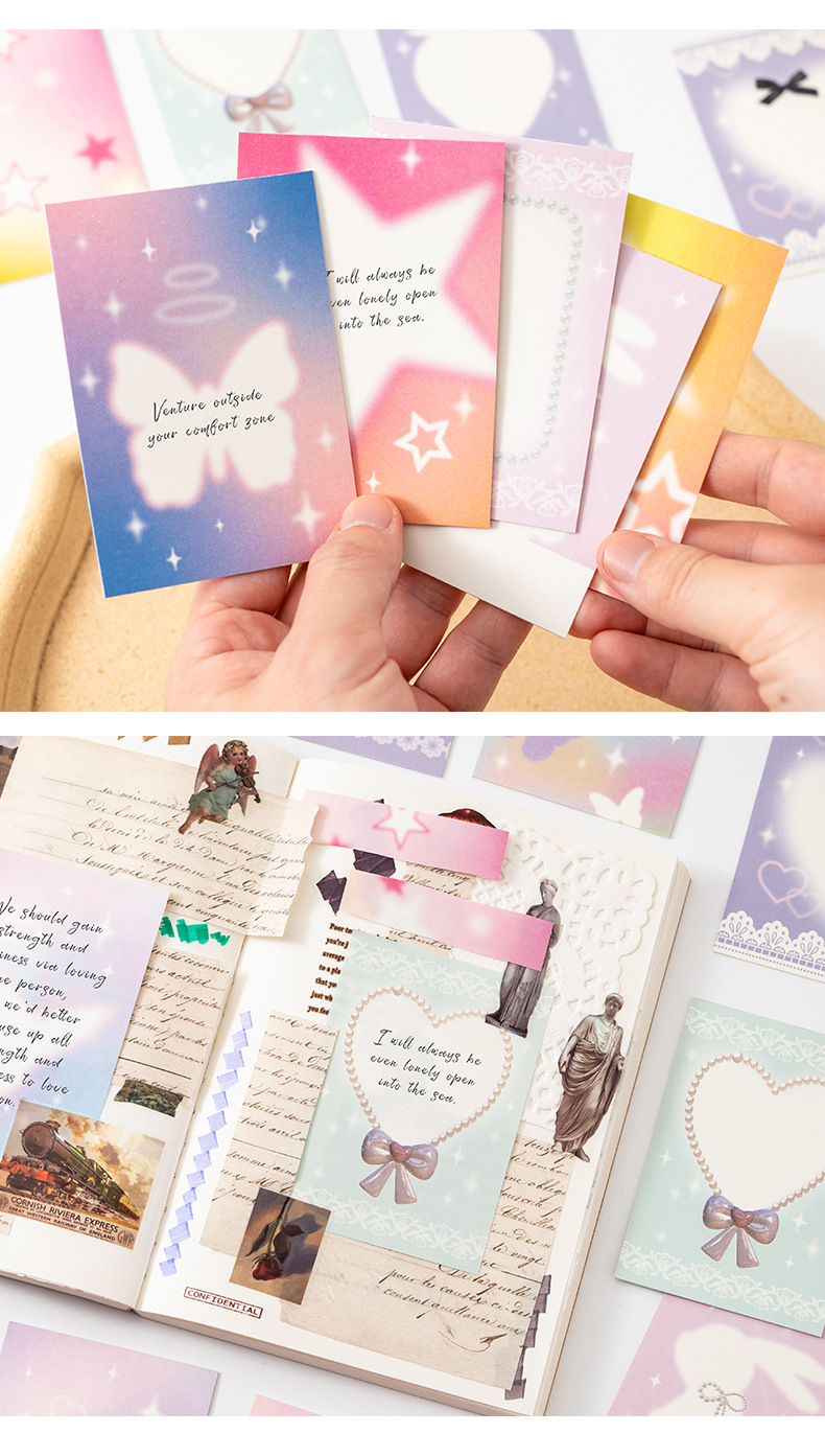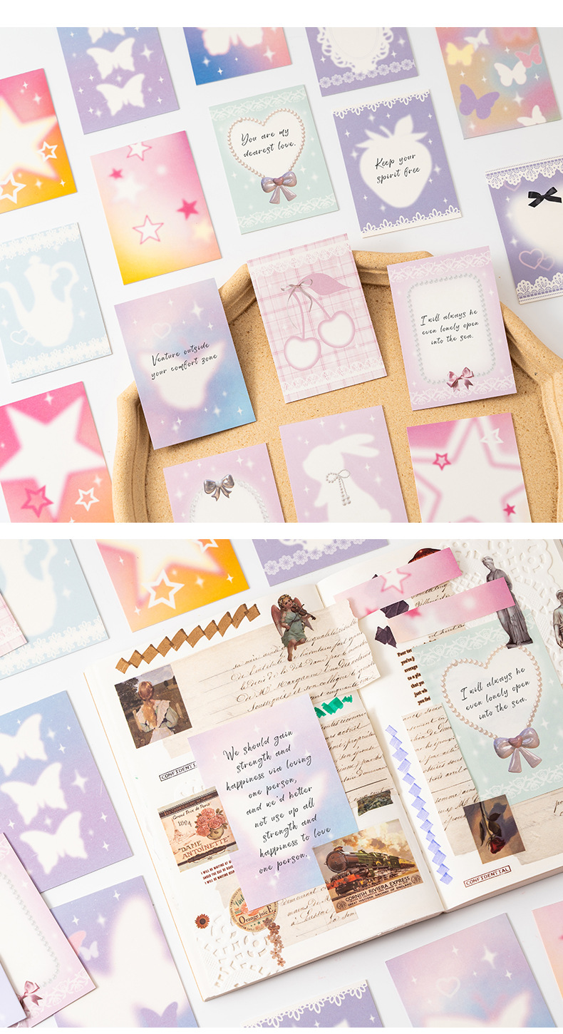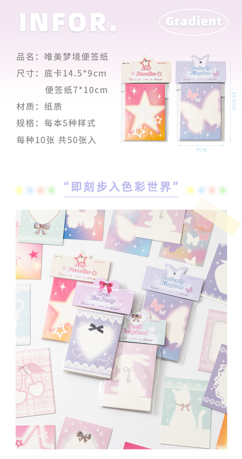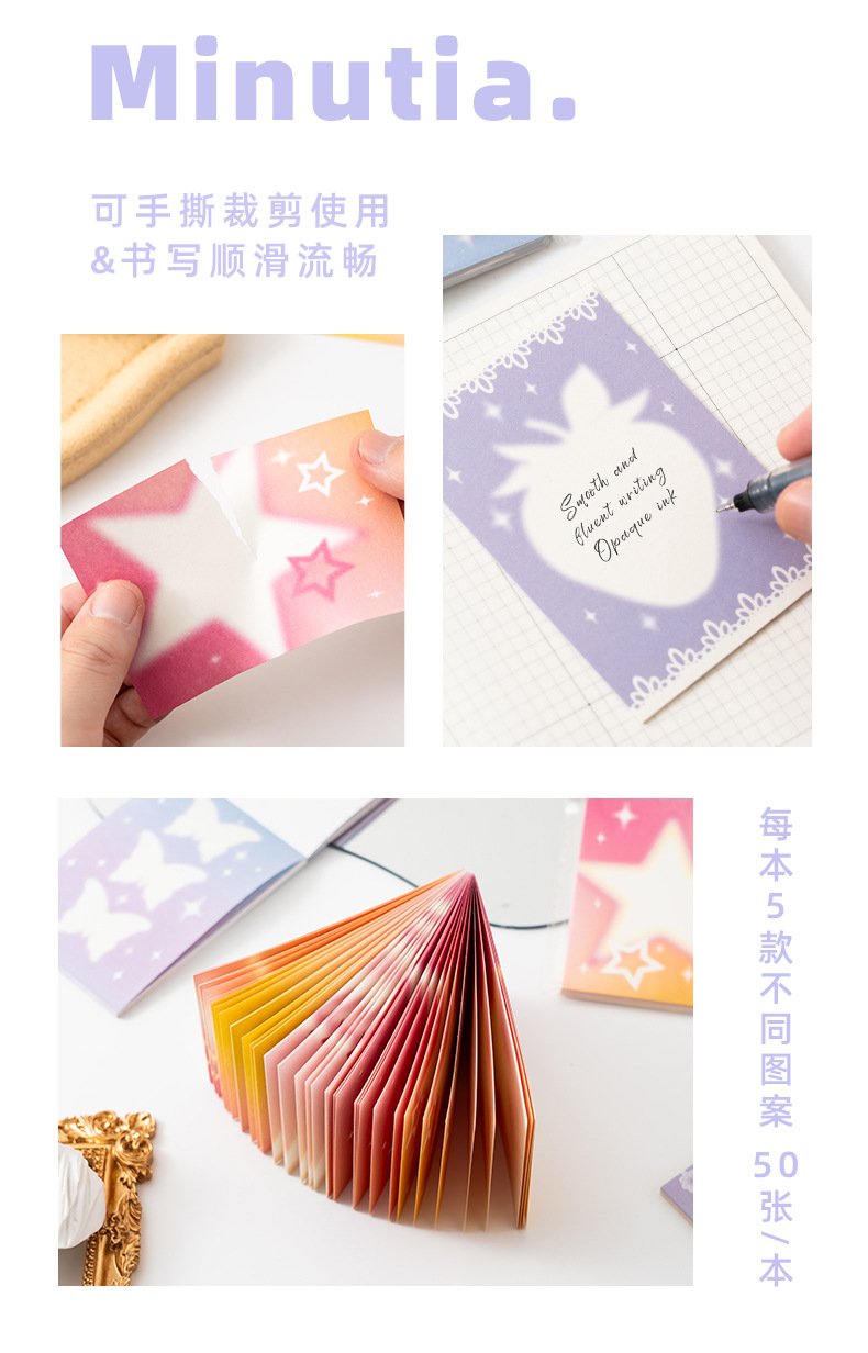 높은 가치의 그라디언트 컬러 노트 종이 스타일 창조적 인 귀여운 끈적 끈적한 노트 책은 소녀의 심장 노트를 찢을 수 있습니다스토어 가기