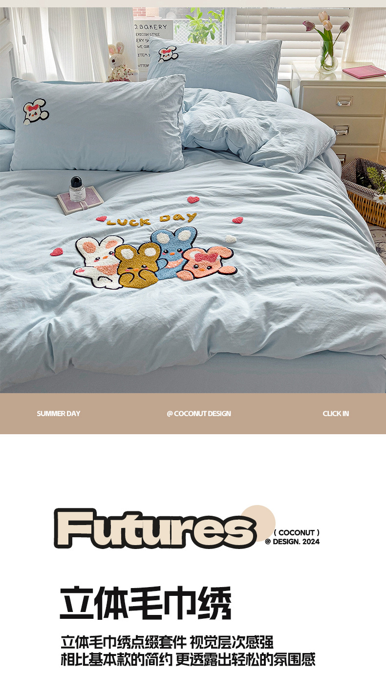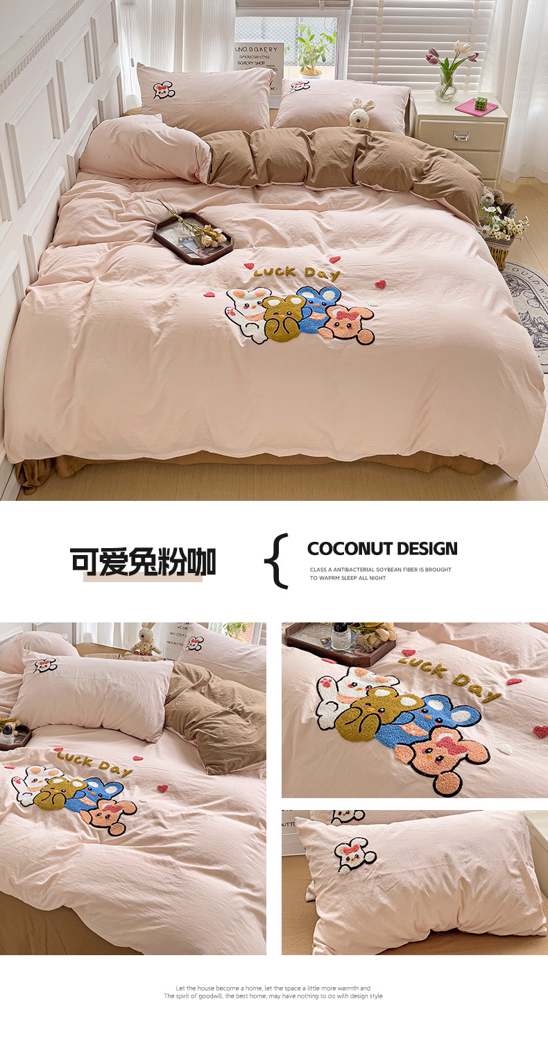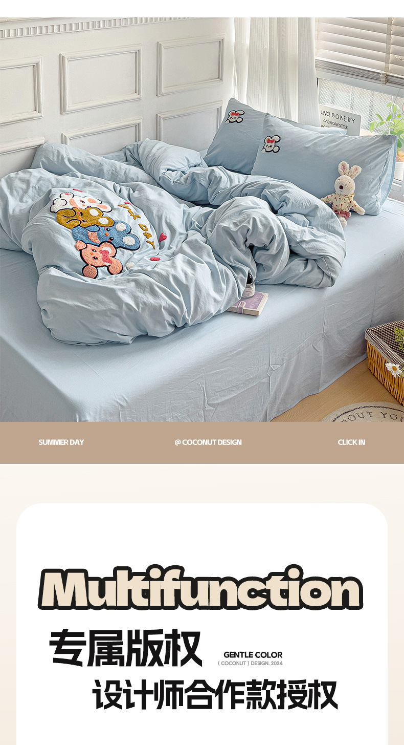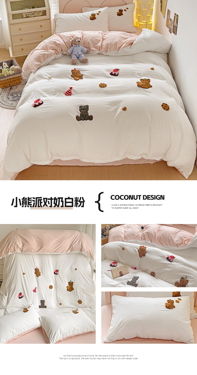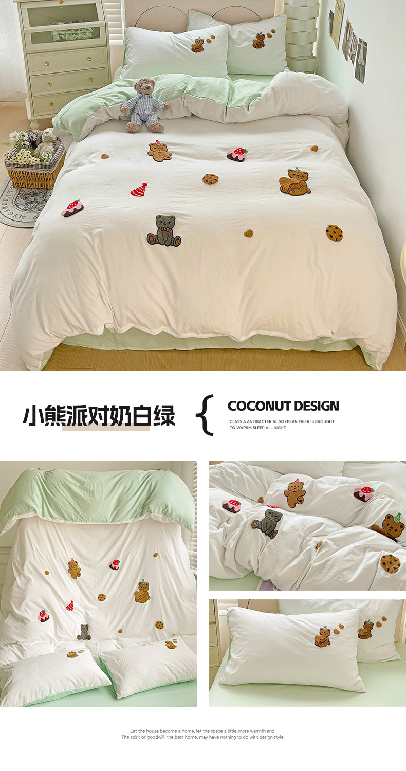 클래스 A 슈퍼 소프트 워시 클라우드 코튼 4 피스 세트 타월 자수 학생 기숙사 3 피스 세트 만화 귀여운 침대 시트