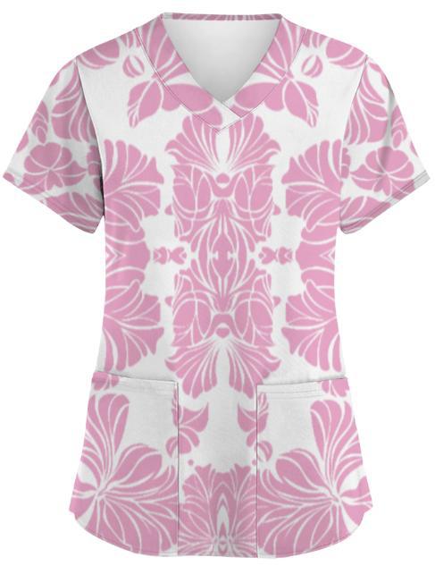 국경 간 대외 무역 아마존 AliExpress 새로운 여성 V-목 간호 착용 반팔 여름 캐주얼 프린트 티셔츠 탑