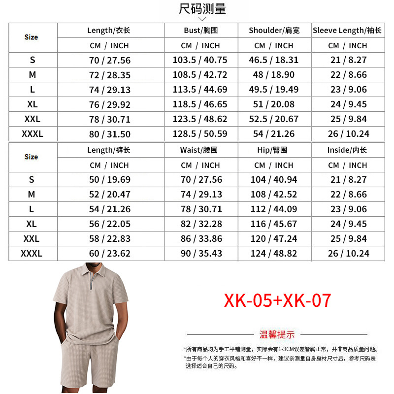 2024 여름 대외 무역 새로운 남성 레저 트렌드 패션 편안한 와플 단색 거북이 스포츠 세트