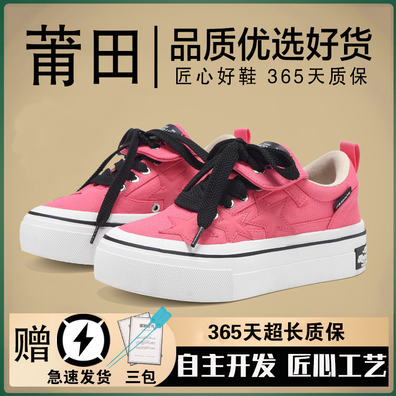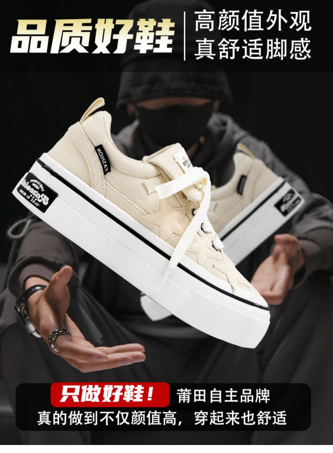 남성과 여성을위한 전국 유행 베이지 캔버스 스타 신발 2024 여름 새로운 두꺼운 밑창 증가 통기성 캐주얼 올 매치 스니커스토어 가기