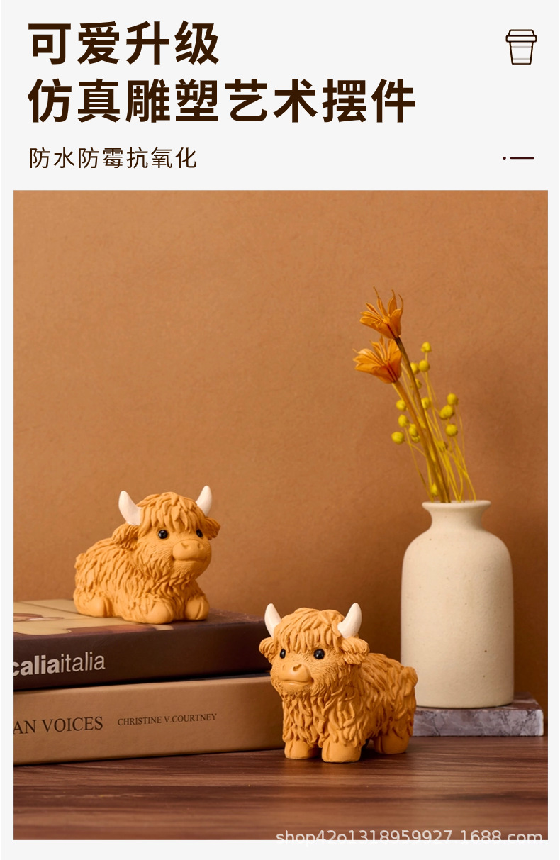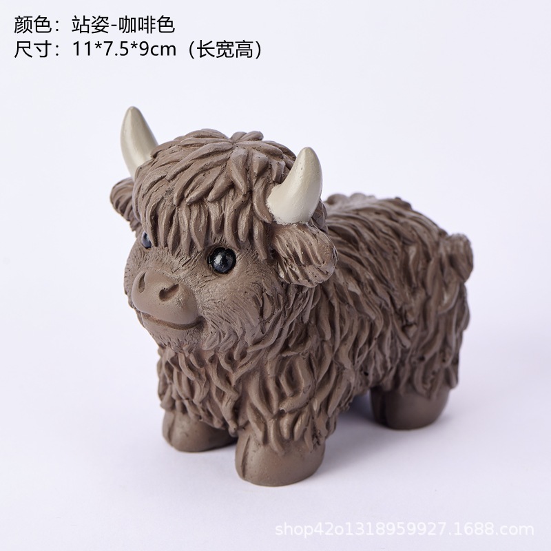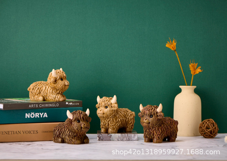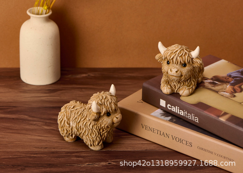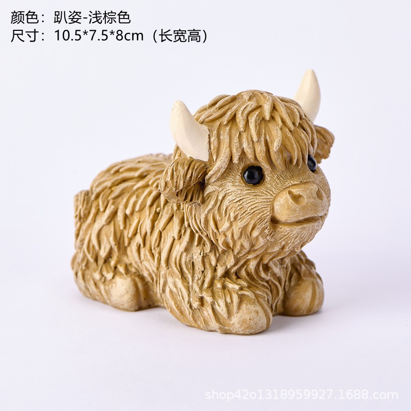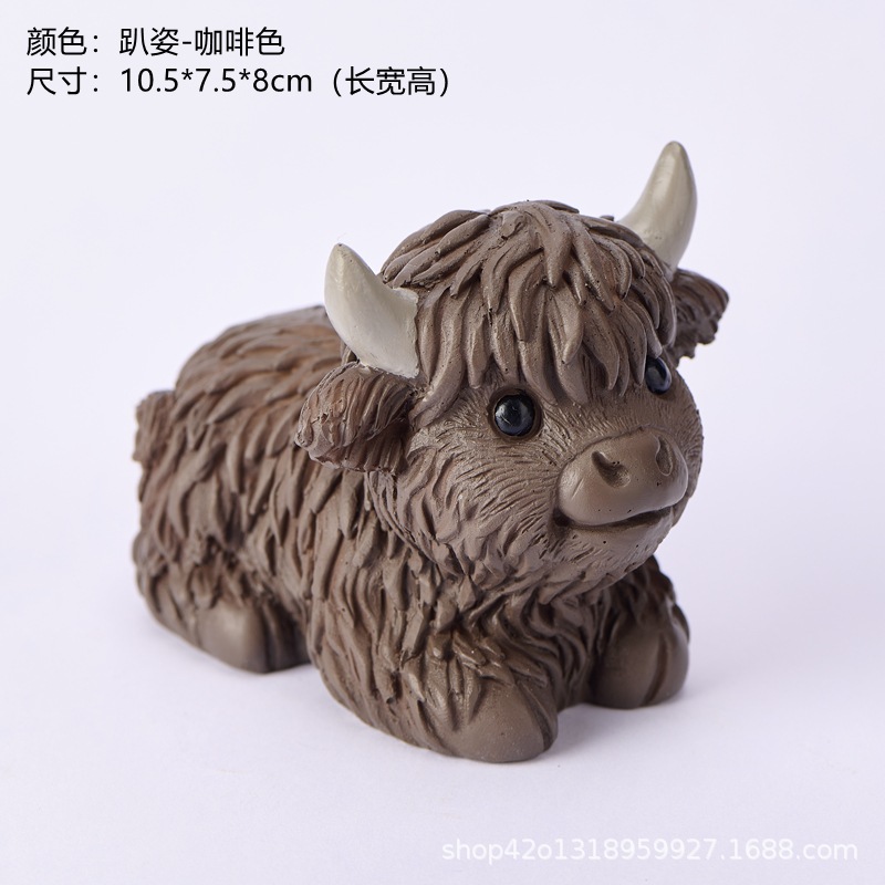 스코틀랜드 하이랜드 소 수지 동상 귀여운 시뮬레이션 매버릭스 장식품 국경 간 노르딕 홈 홀리데이 장식 선물