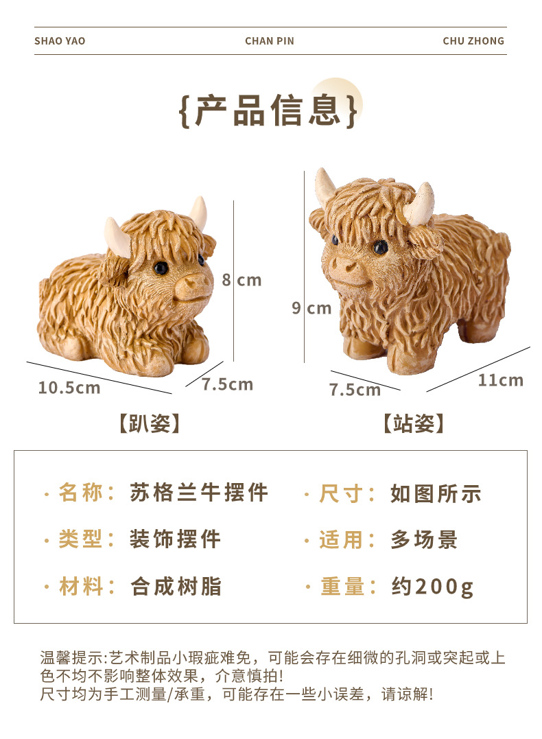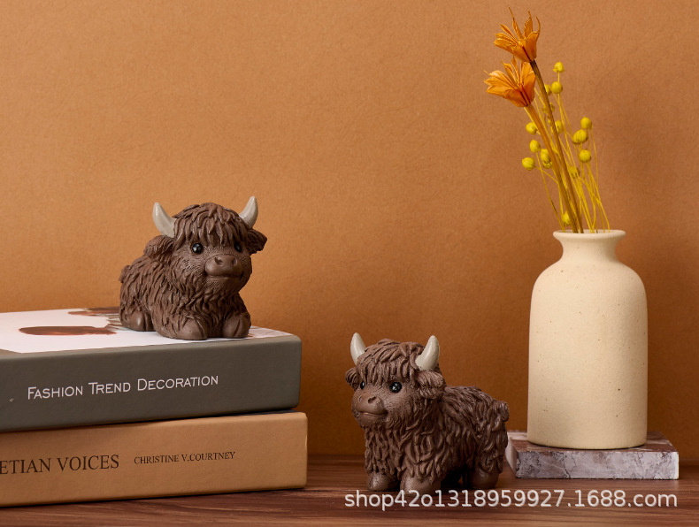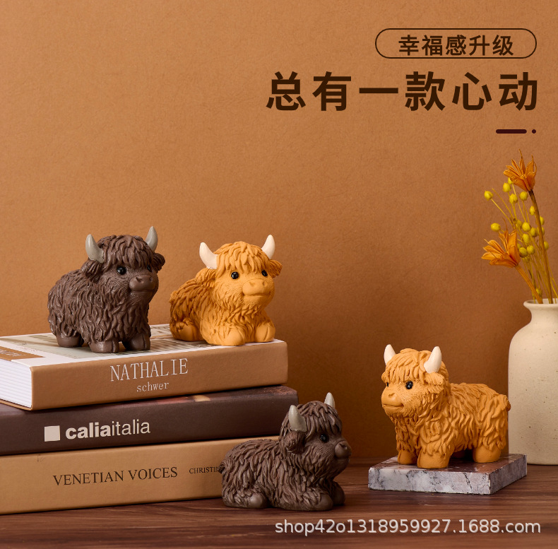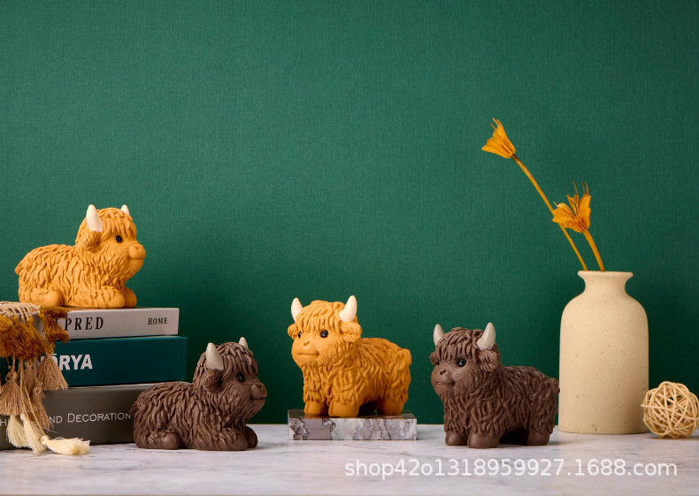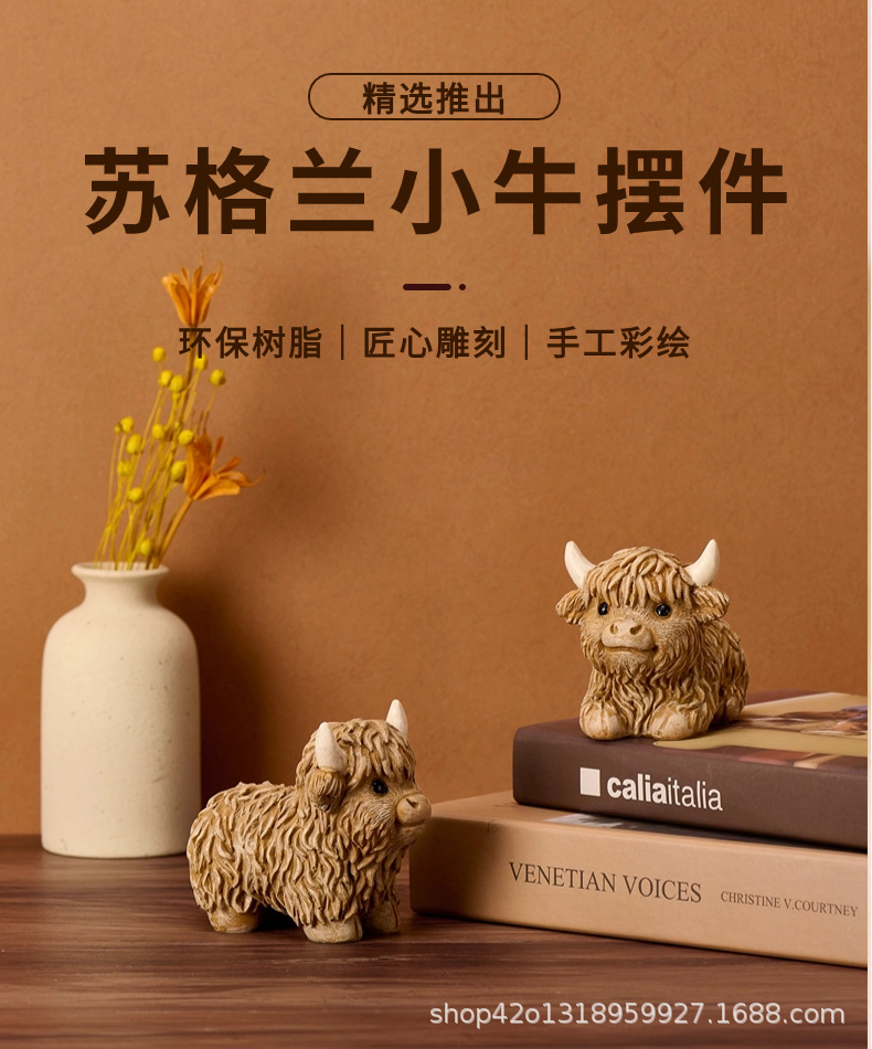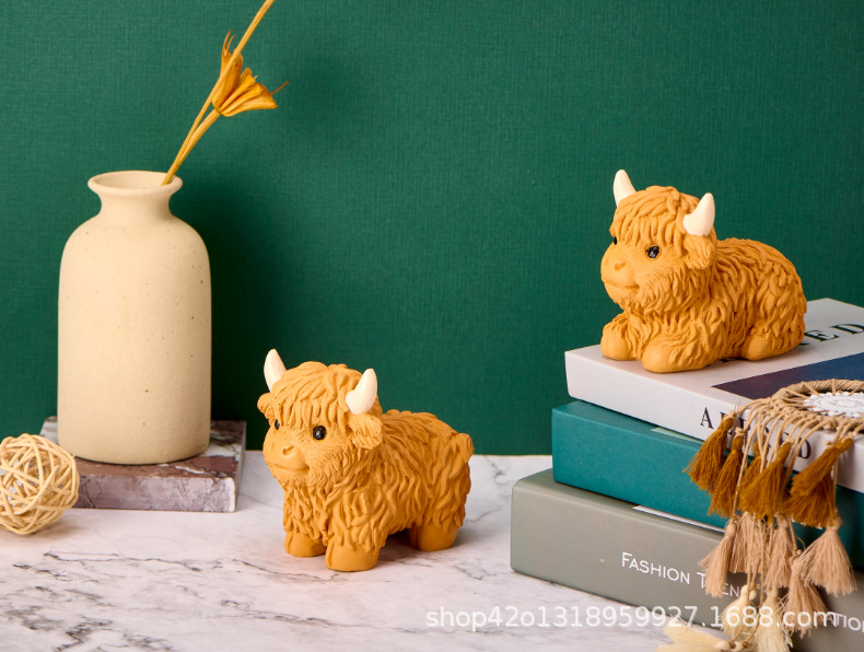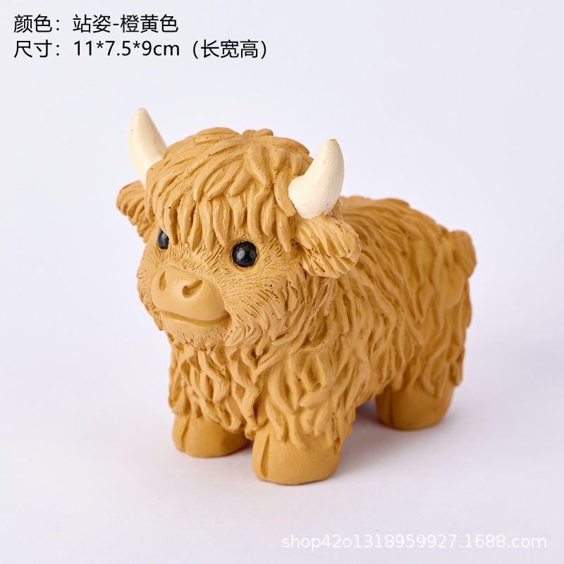 스코틀랜드 하이랜드 소 수지 동상 귀여운 시뮬레이션 매버릭스 장식품 국경 간 노르딕 홈 홀리데이 장식 선물