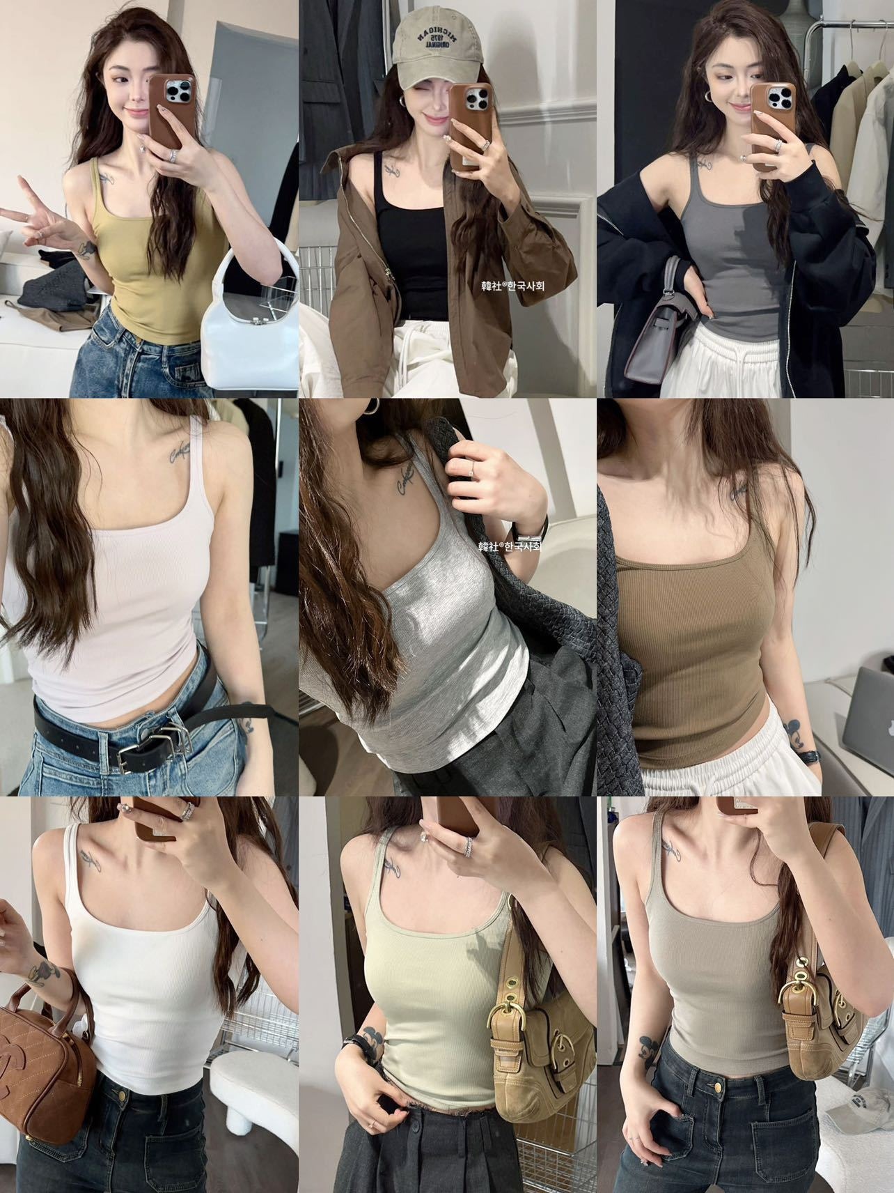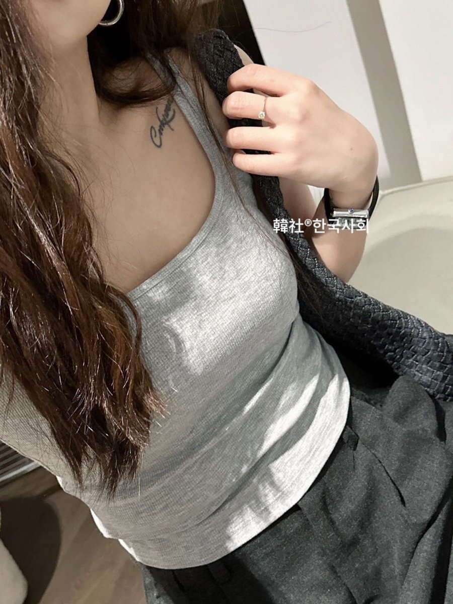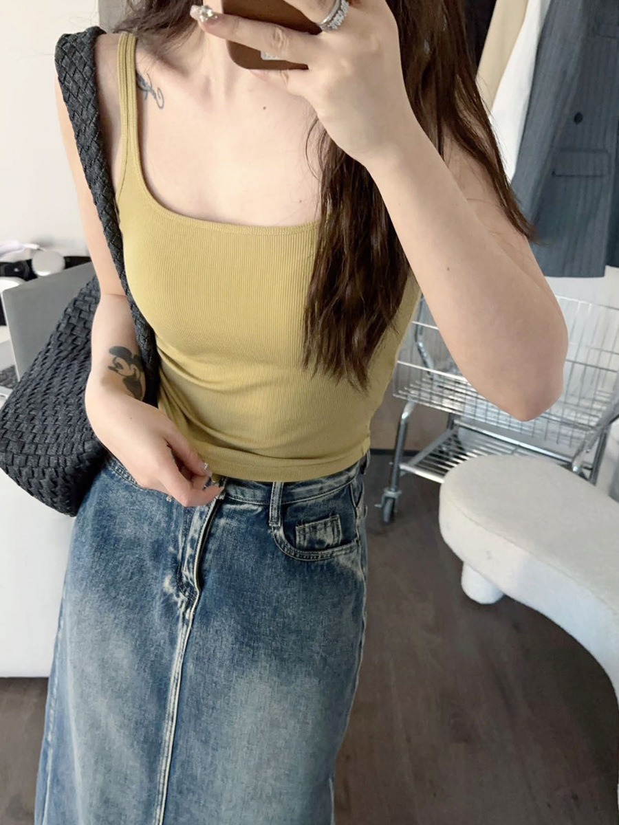 한국 사회 슬링 작은 스퀘어 칼라 원피스 컵 슬림 핏 조커 보투 아웃 웨어러블 면화 높은 탄성 뷰티 백 조끼 여성스토어 가기
