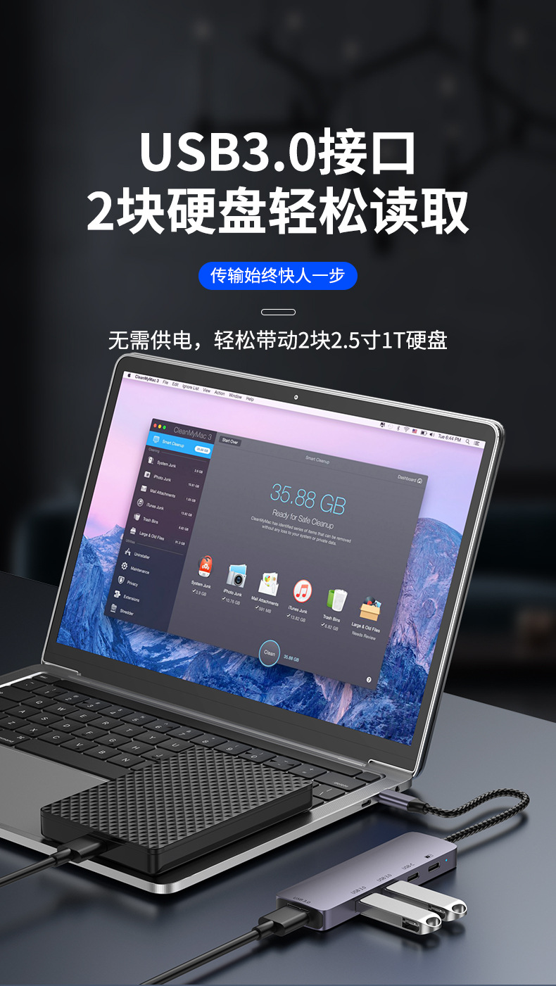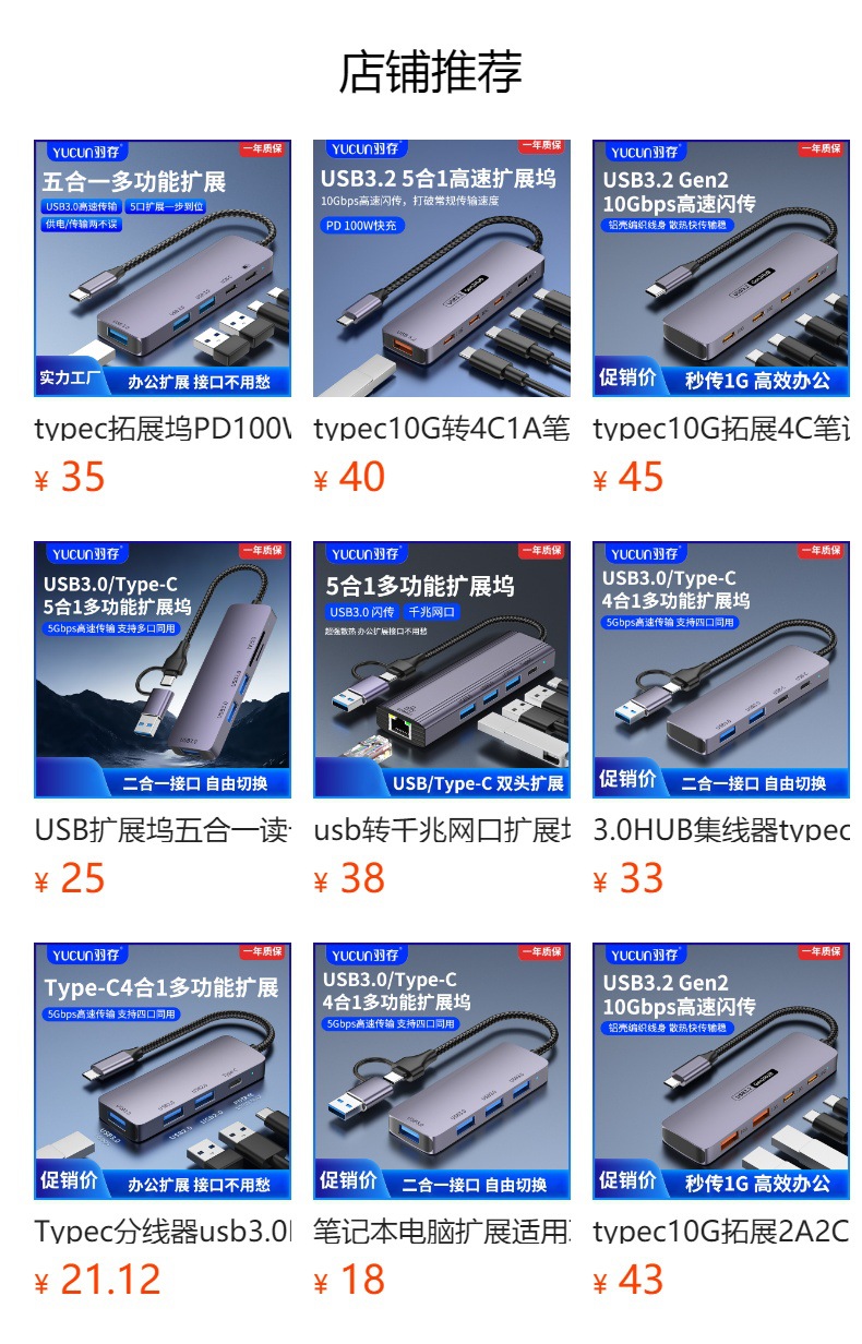 Typec 확장 도크 PD100W 익스텐더 USB 스플리터 노트북 휴대 전화 태블릿 허브스토어 가기