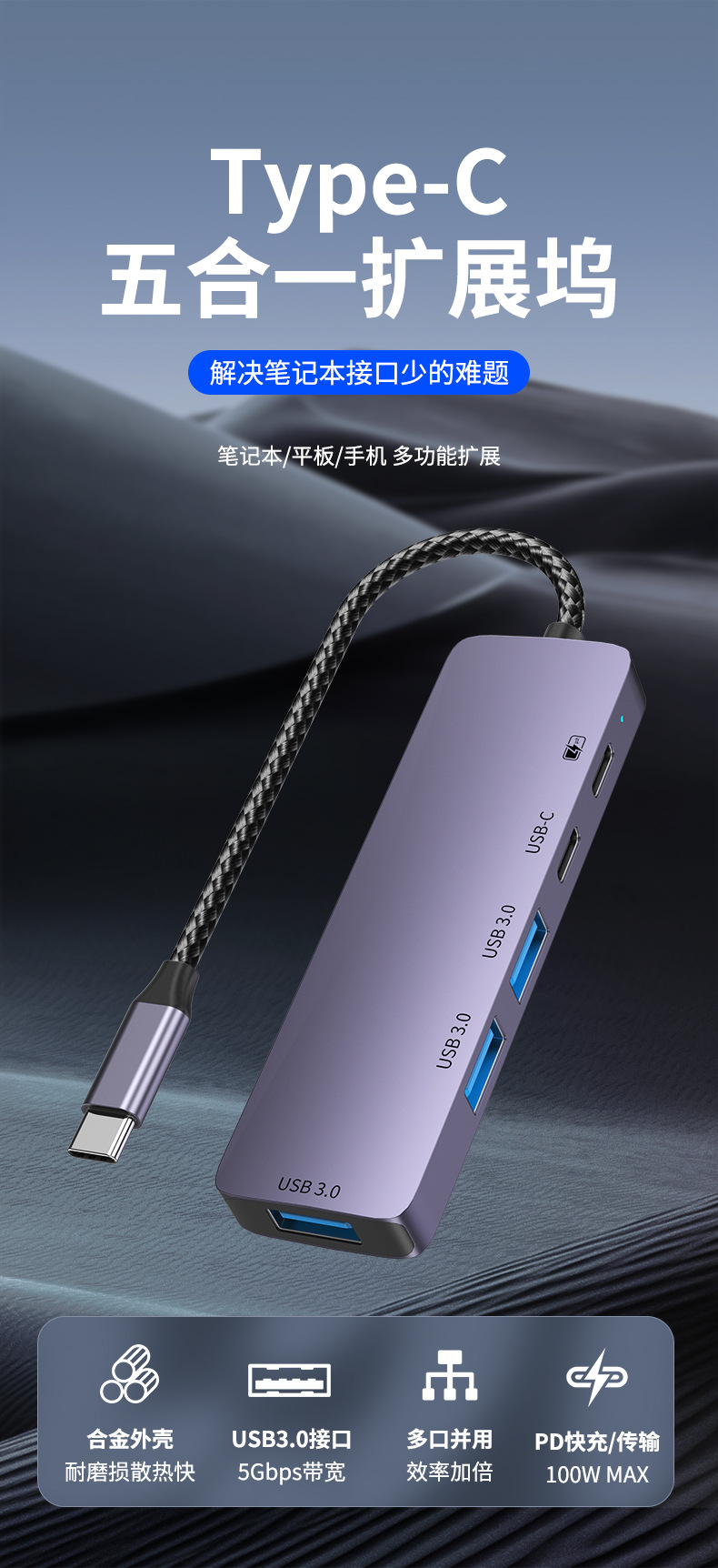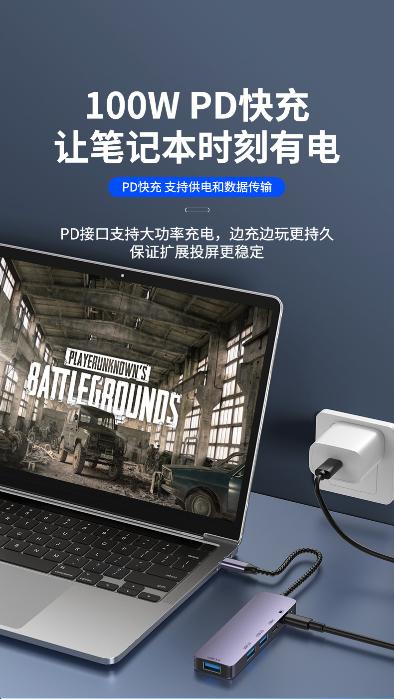 Typec 확장 도크 PD100W 익스텐더 USB 스플리터 노트북 휴대 전화 태블릿 허브