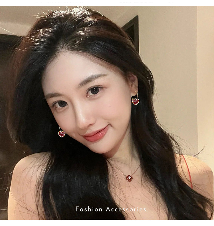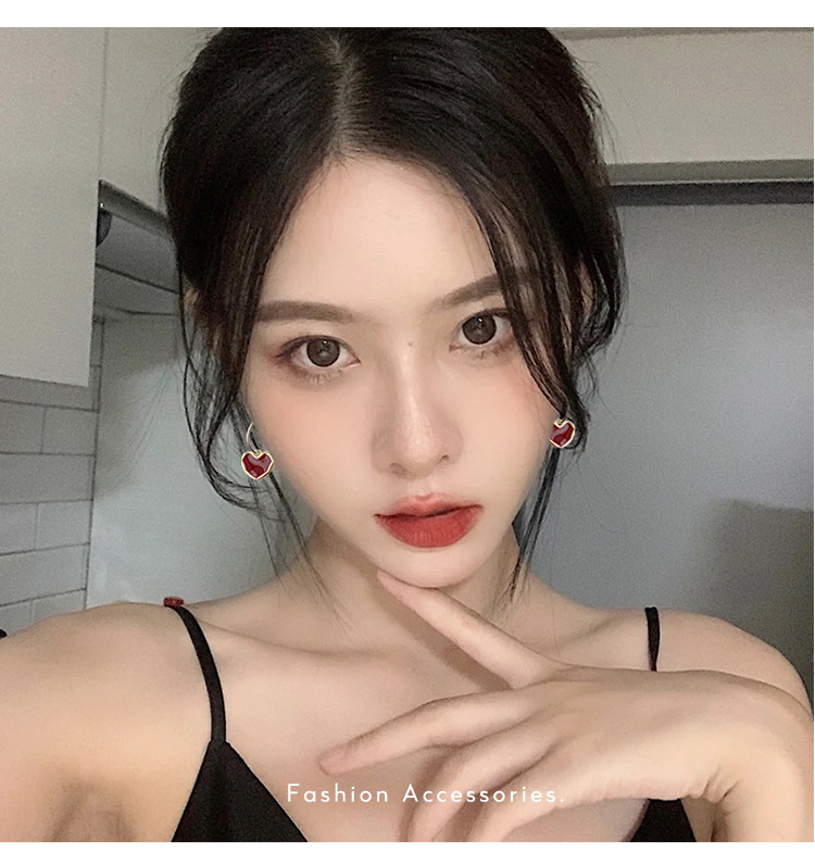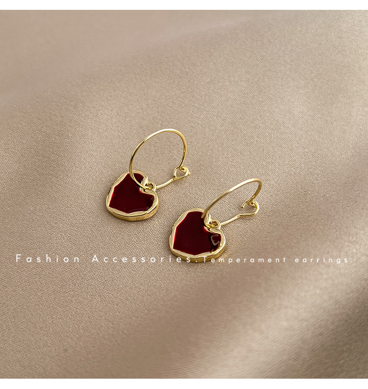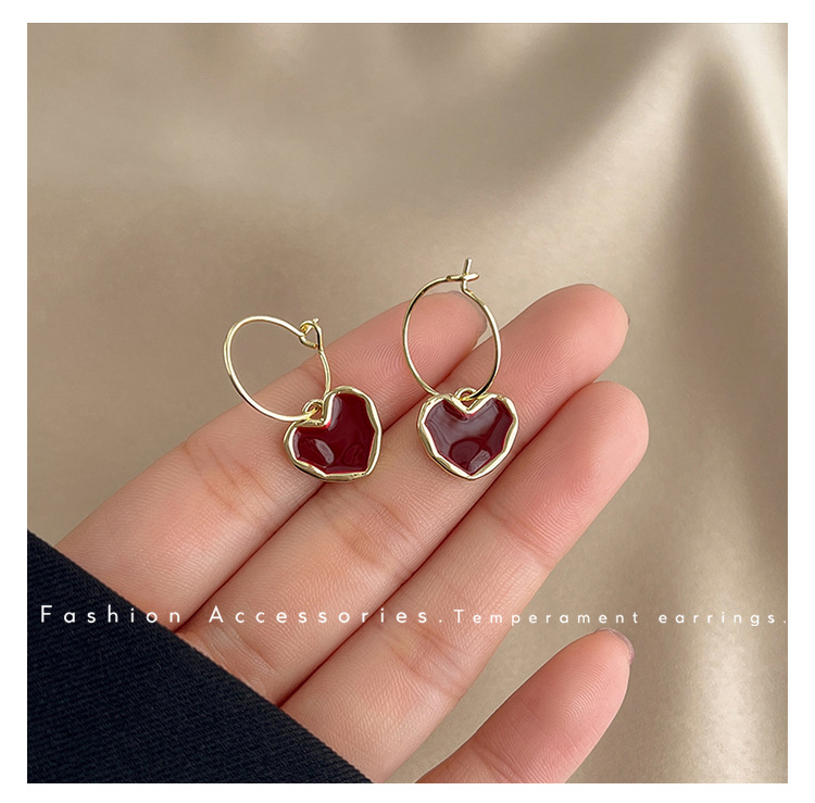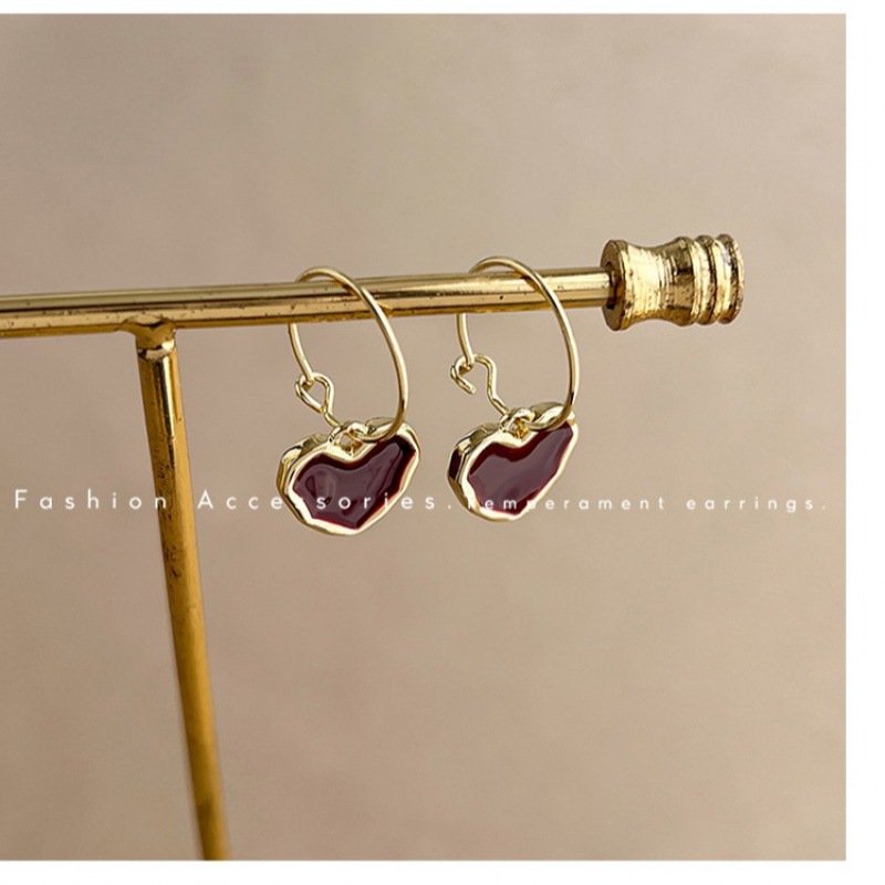 버건디 드롭 사랑의 귀 반지 여성의 간단한 우아한 개인화 된 귀걸이 패션 올 매치 작은 귀걸이 틈새 절묘한 귀걸이