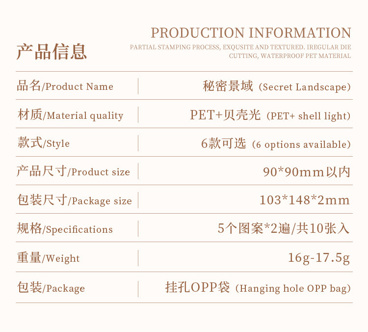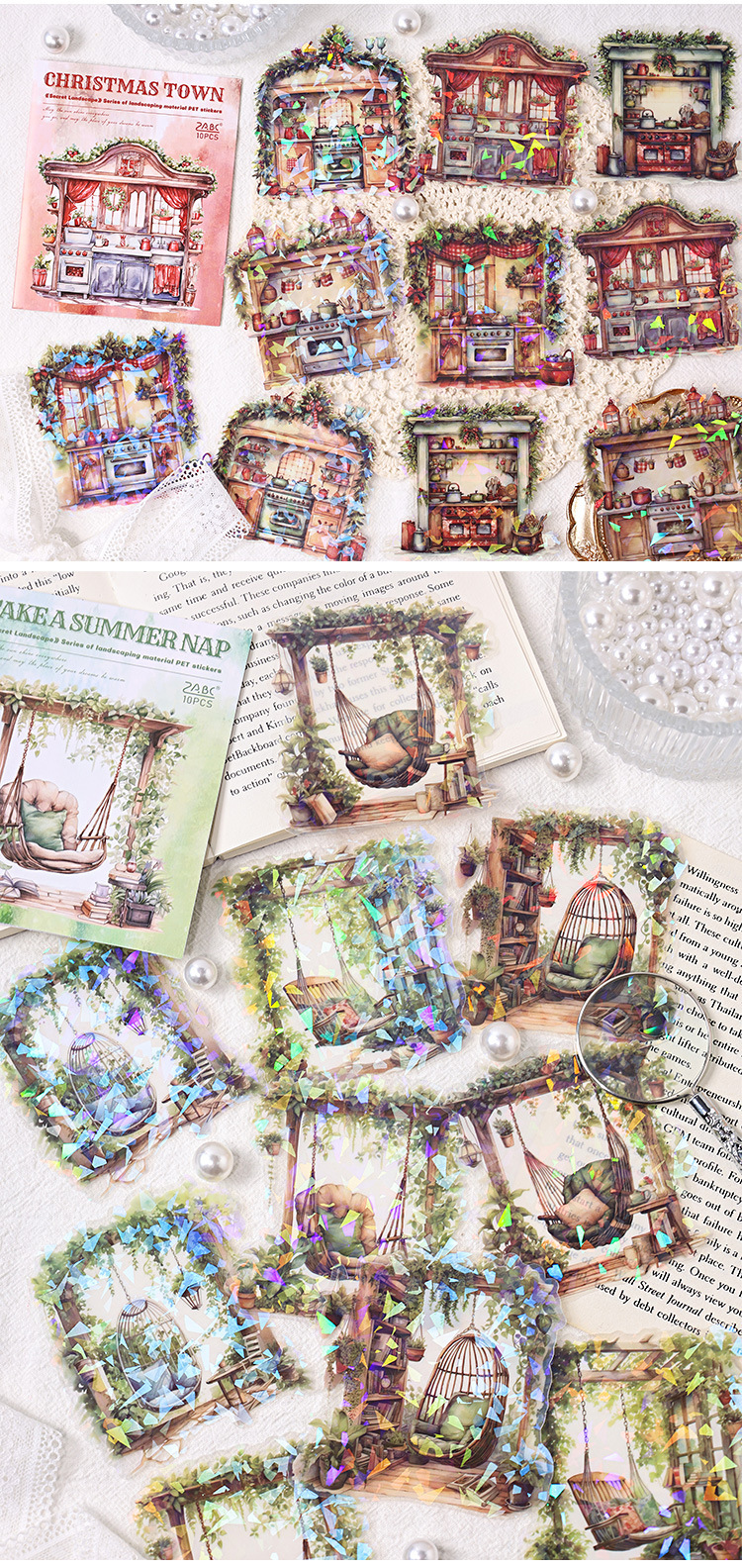 비밀 풍경 애완 동물 스티커 가방 쉘 빛 레이저 정원 테마 조경 꽃 손 계정 장식 소재 스티커