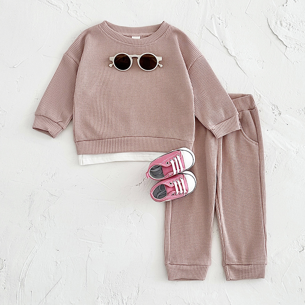 국경 간 INS 한국판 봄과 가을 신생아 긴 소매 가짜 투피스 세트 어린이 아기 스웨터 투피스 세트스토어 가기