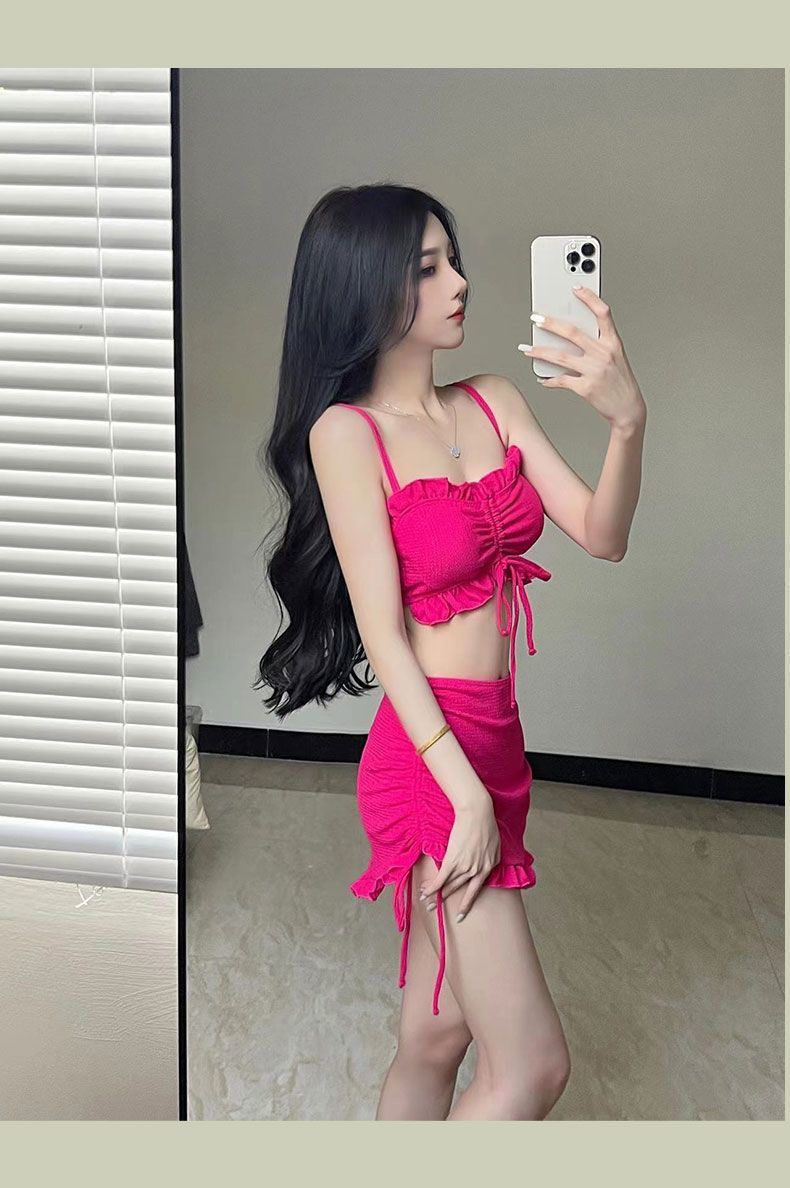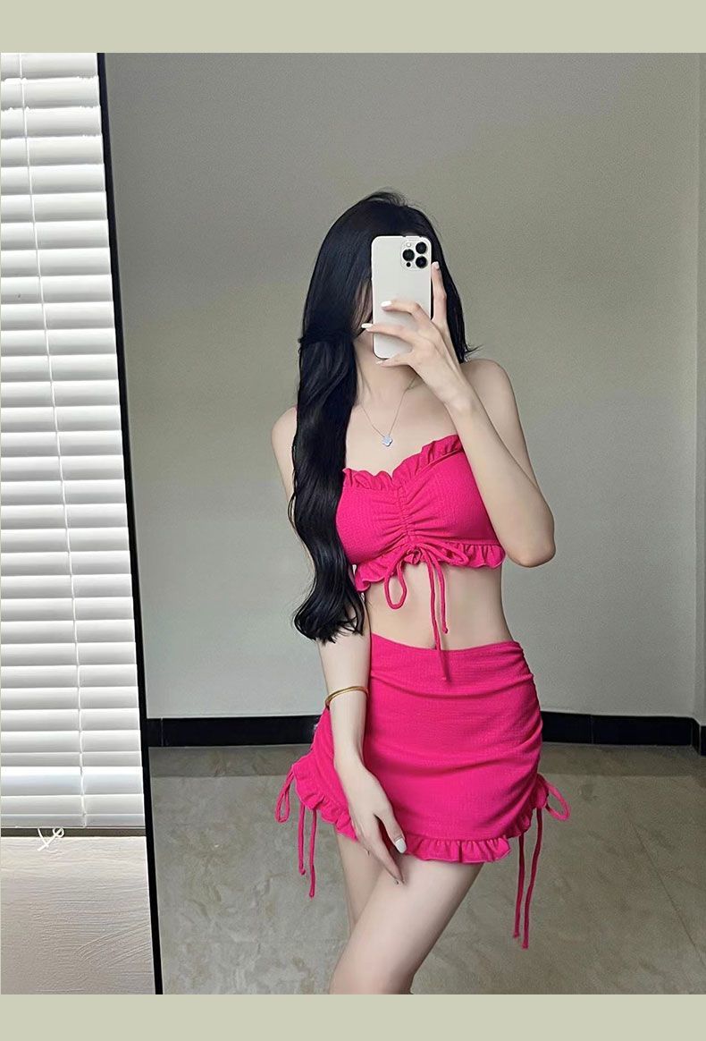 인터넷 연예인 스타일의 보수적인 학생풍 배를 커버해 날씬해 보이는 2025년 신상 여성 온천용 여름 스플릿 스커트 수영복스토어 가기