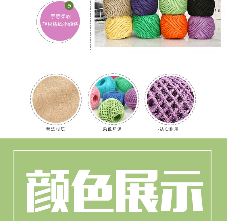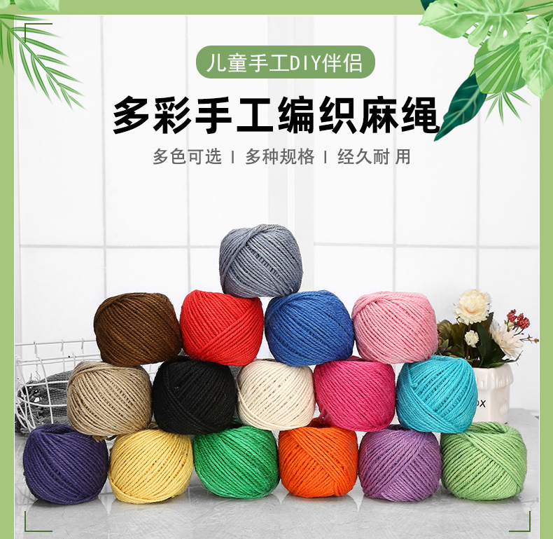 3MM 컬러 대마 로프 유치원 손으로 짠 diy 꽃병 그리드 바인딩 장식 꼬기 복고풍 로프스토어 가기