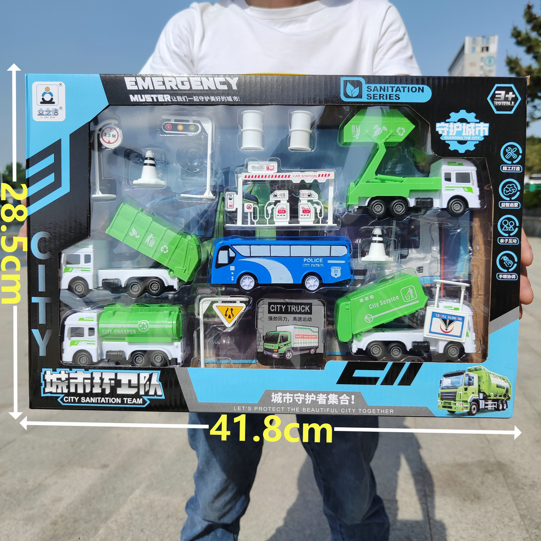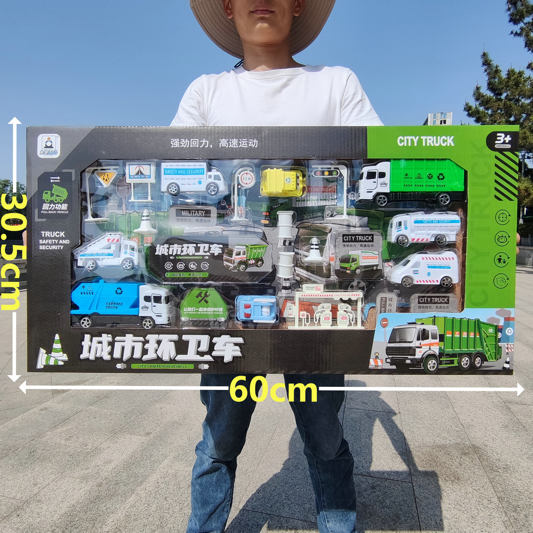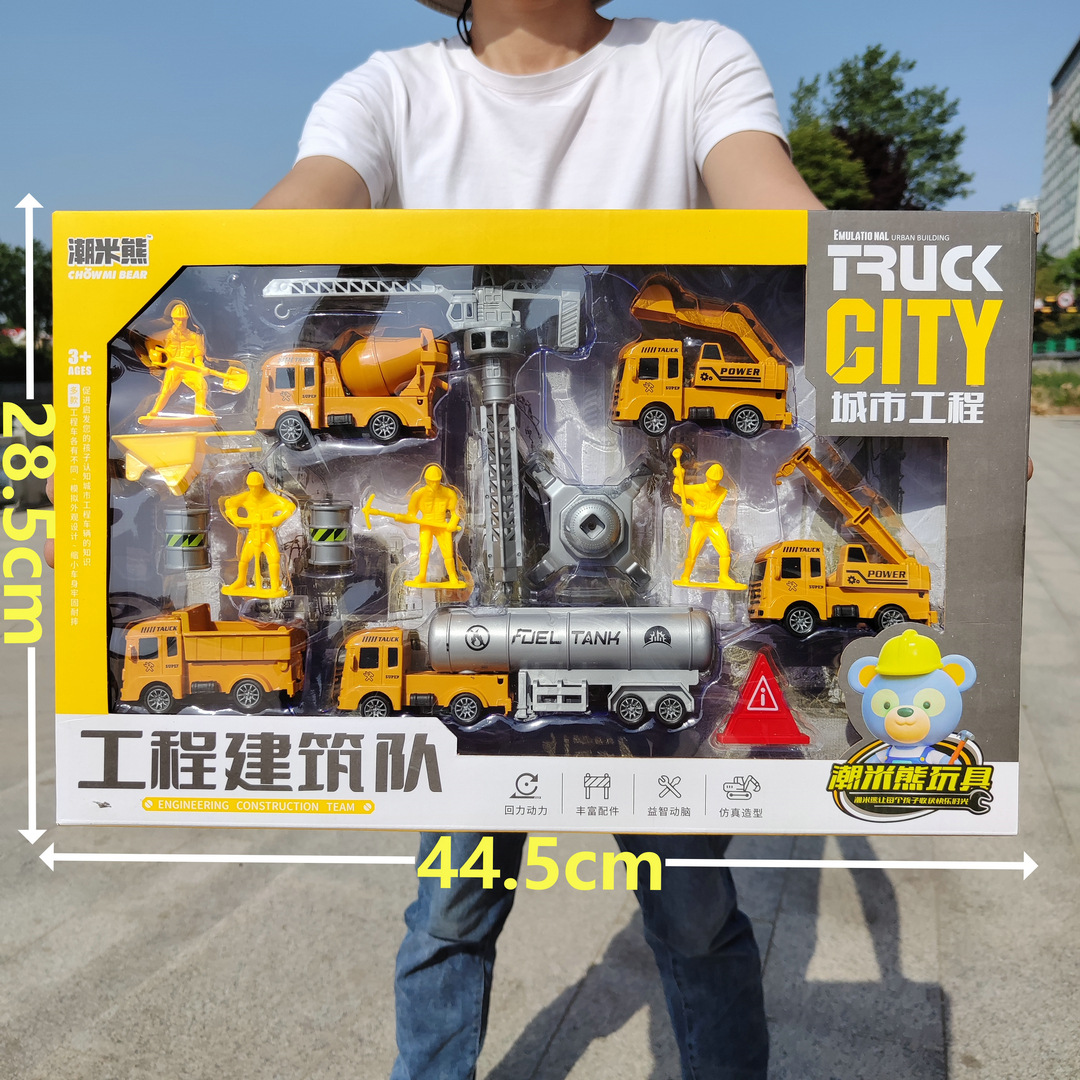 큰 선물 상자 백 포스 관성 자동차 어린이 장난감 엔지니어링 자동차 모델 화재 세트 소년 자동차 마구간 도매스토어 가기
