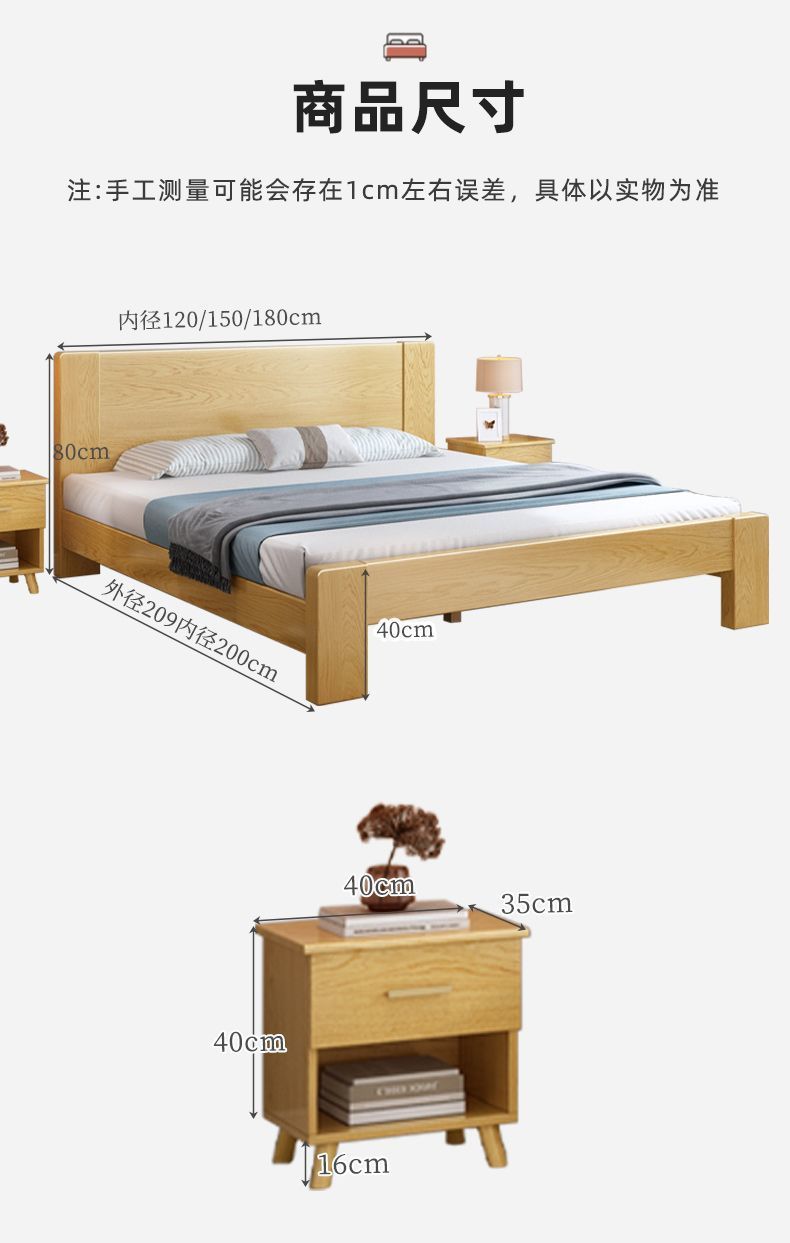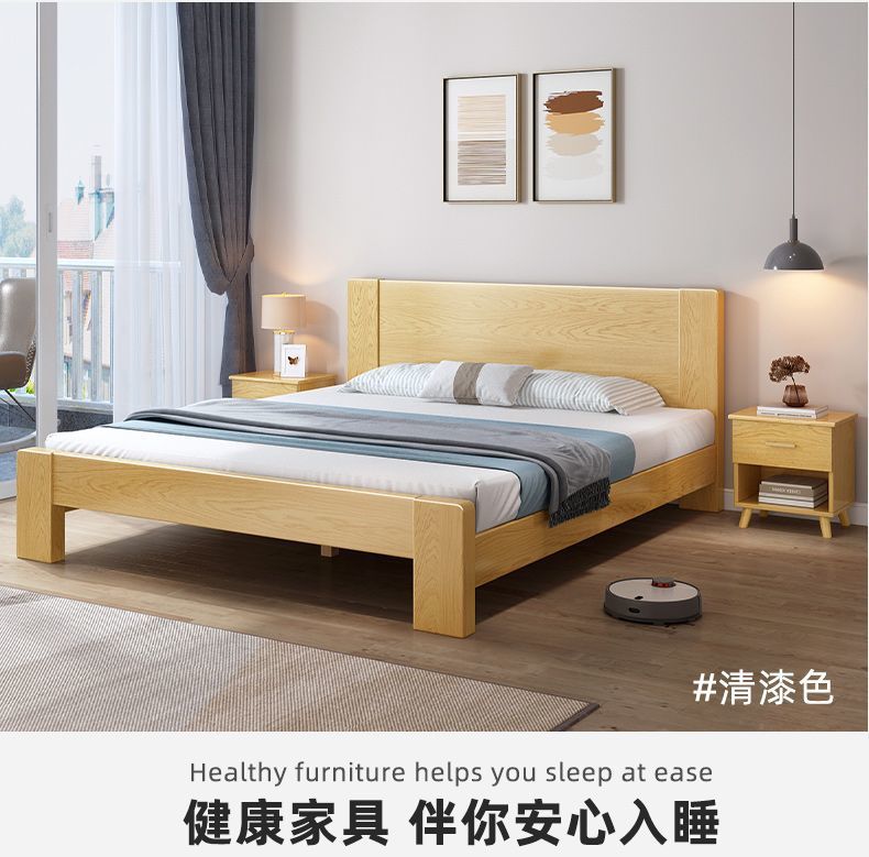 전체 단단한 나무 침대 1.5 m 오크 가구 현대 간단한 1.8 더블 침대 마스터 침실 오크 1.2m 싱글 침대 프레임스토어 가기