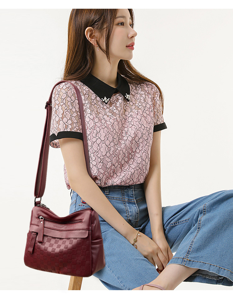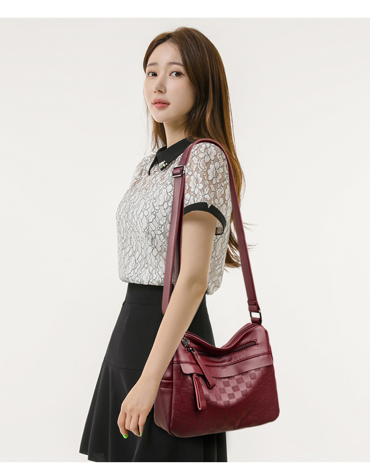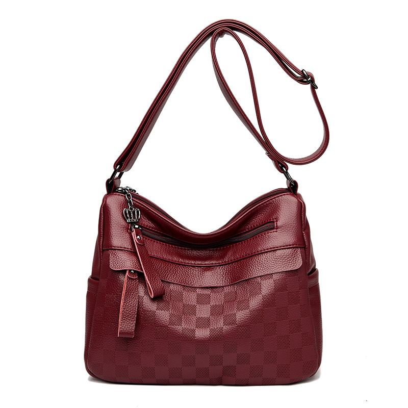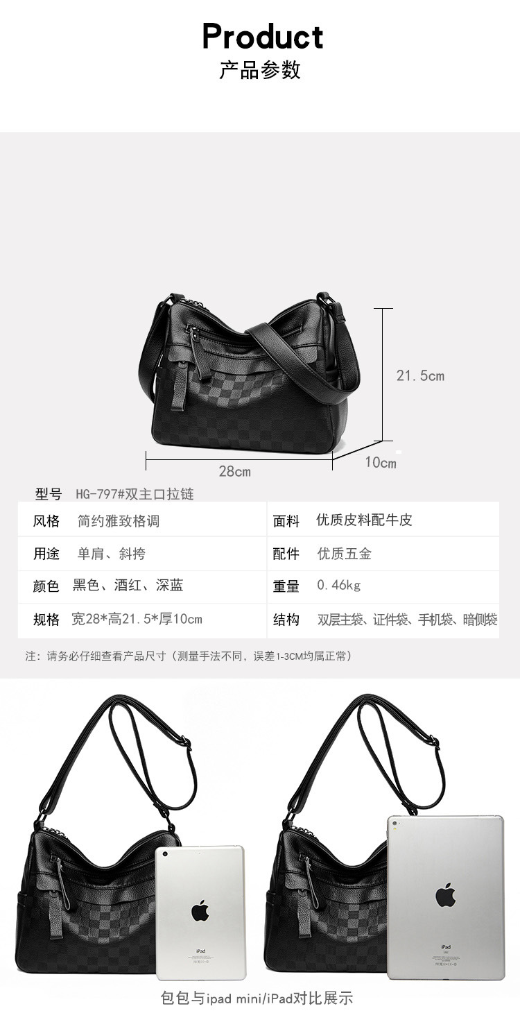 라이브 폭발 간단한 패션 어깨 크로스 바디 백 체스 판 마더 백 정품 가죽 중년 여성 가방 배낭 트렌드