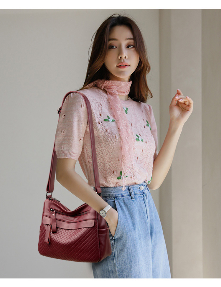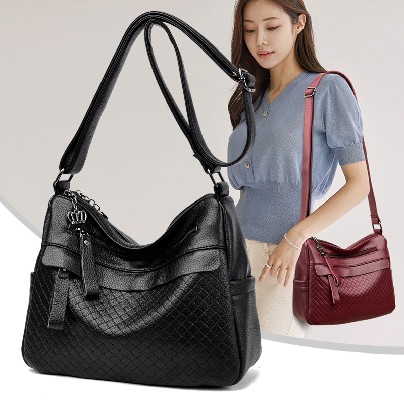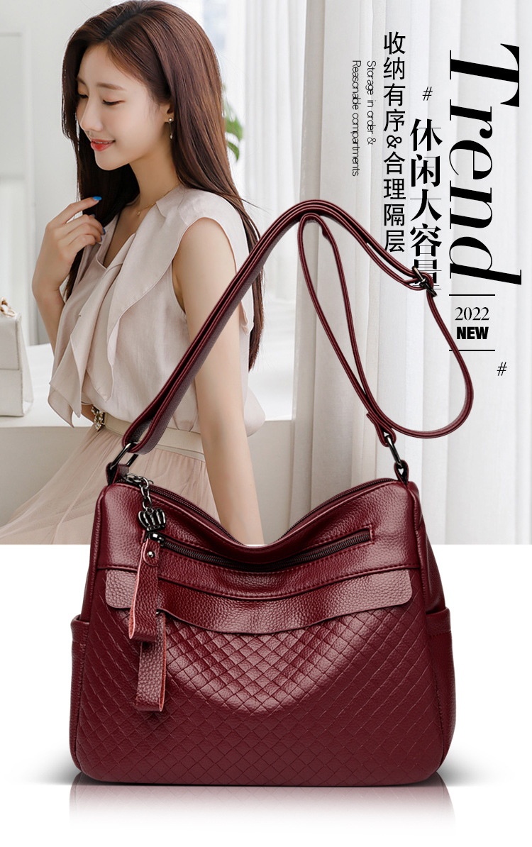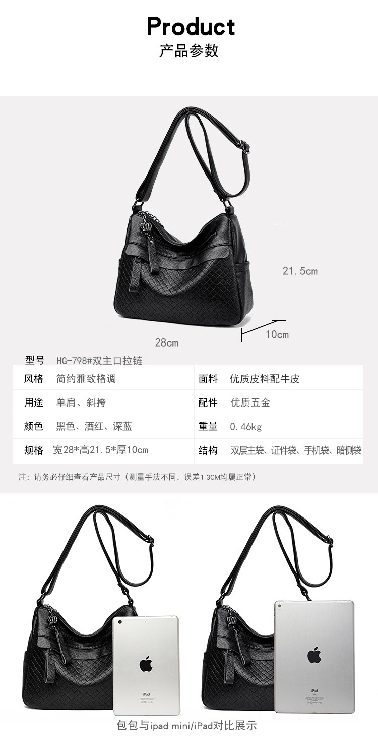 라이브 폭발 간단한 패션 어깨 크로스 바디 백 체스 판 마더 백 정품 가죽 중년 여성 가방 배낭 트렌드