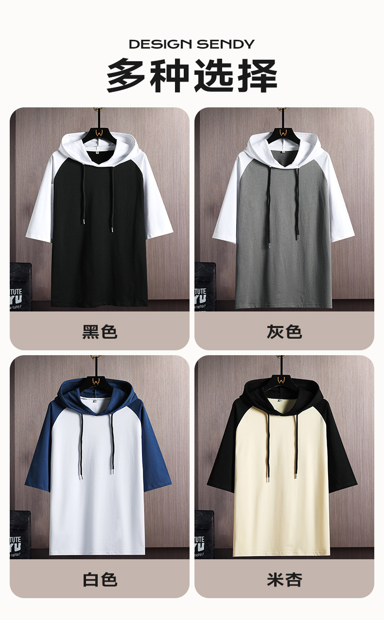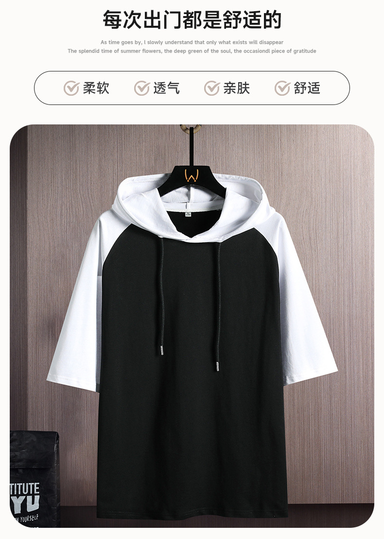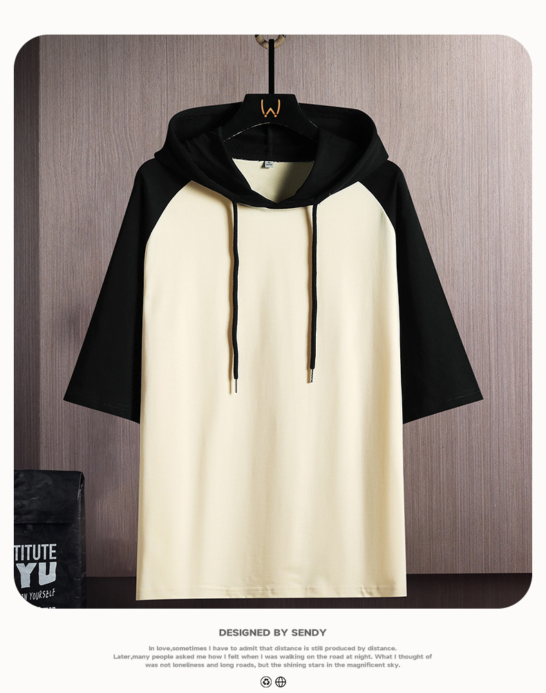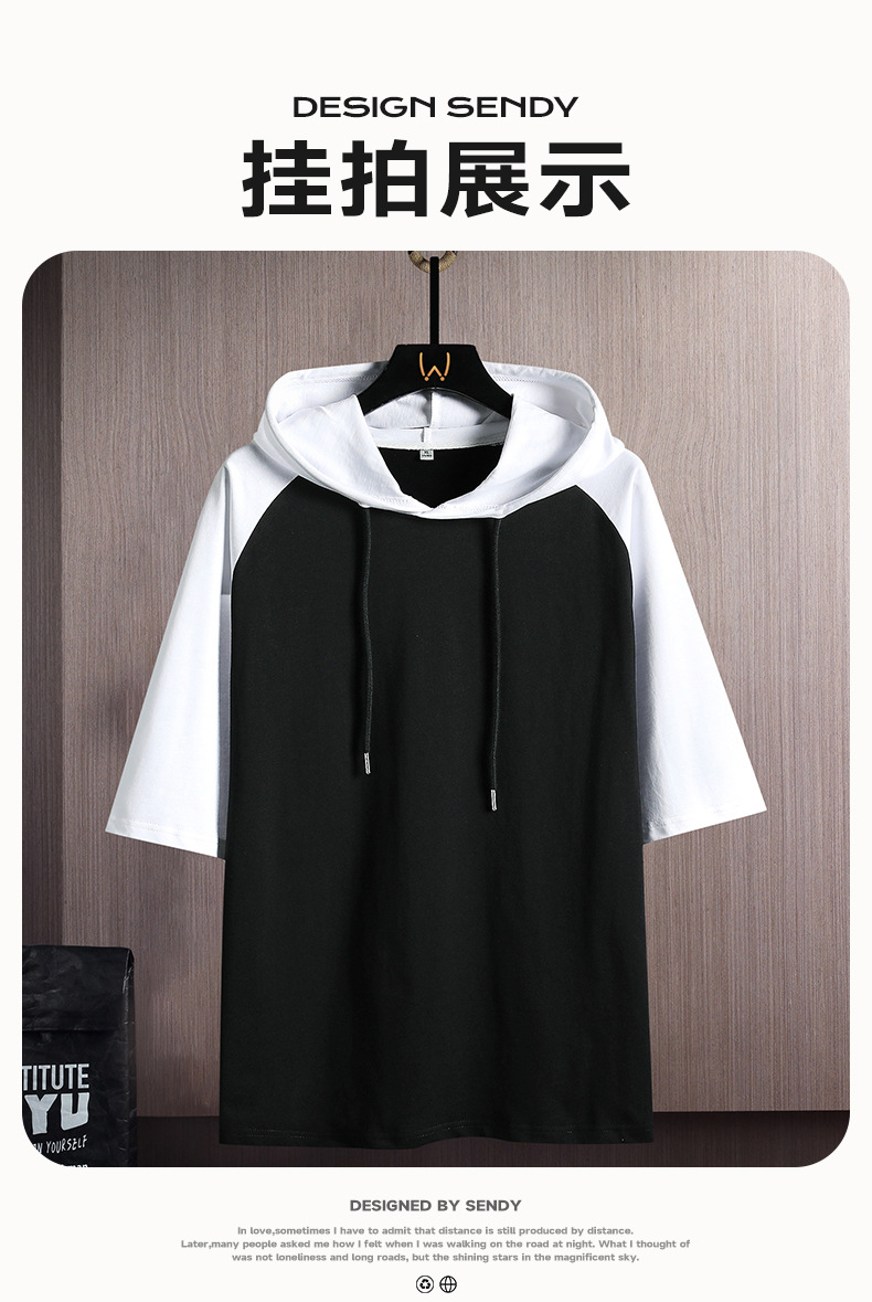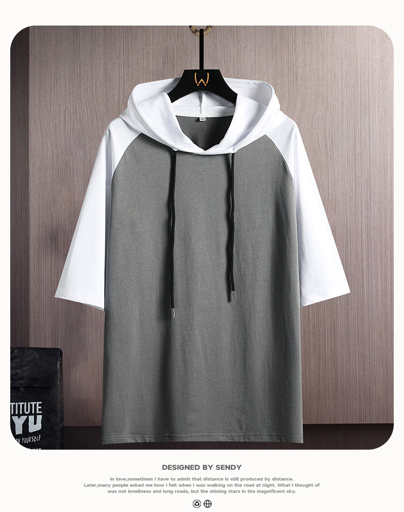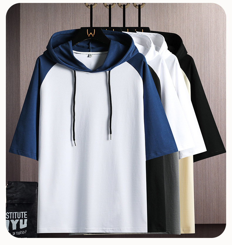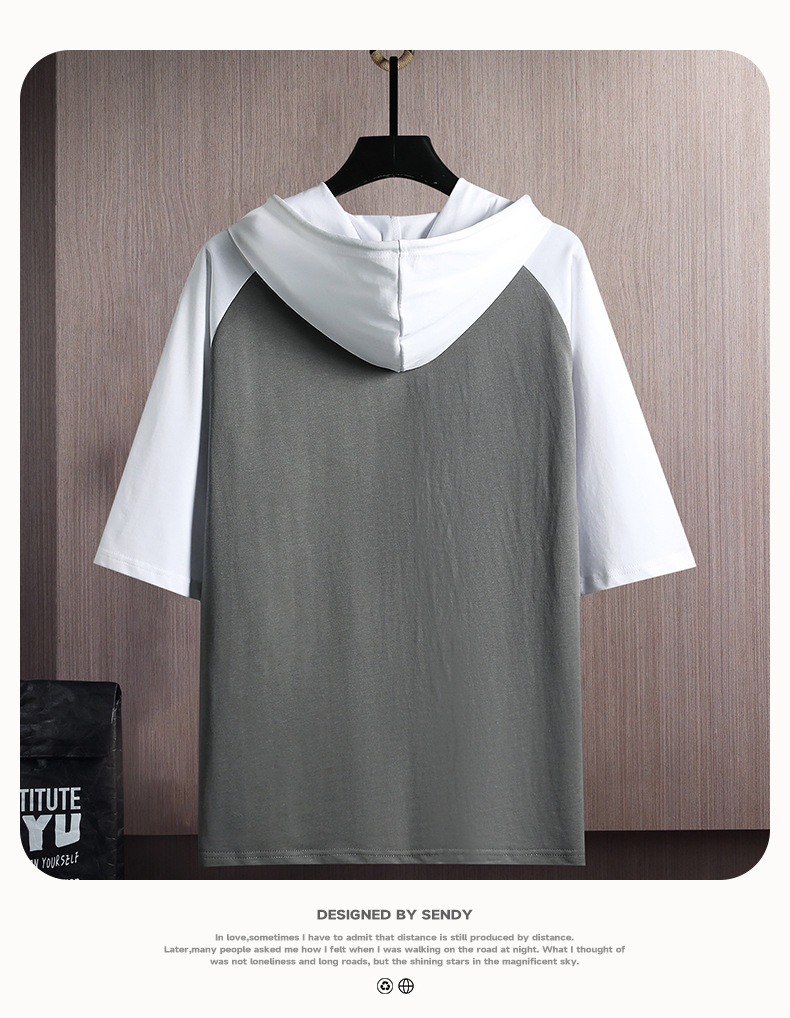 남학생용 여름 반팔 티셔츠, 후드 순면 루즈 티셔츠, 트렌디한 디자인, 홍콩 스타일 반팔 컬러 블록 탑