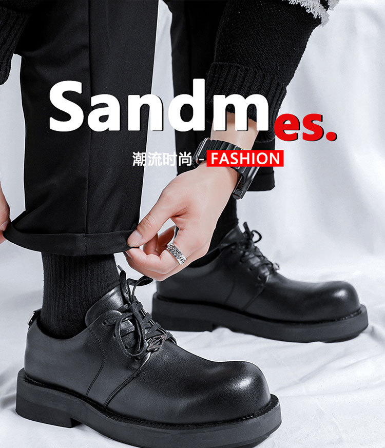 틈새 큰 발가락 가죽 신발 남성 캐주얼 비즈니스 라운드 토 더비 신발 2024 어두운 영국 스타일 유행 브랜드 남성 신발스토어 가기