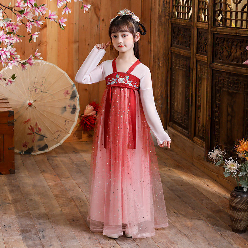 어린이 한복 소녀 요정 고대 의상 중국 스타일 어린 소녀 고종 우아한 댄스 공연 의상
