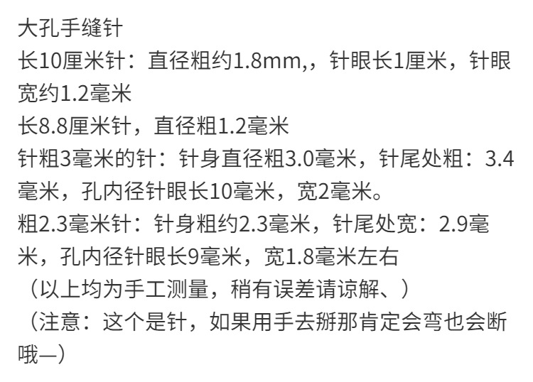 • 길이 8.8cm, 두께 1.2mm 이불바늘(10개)
