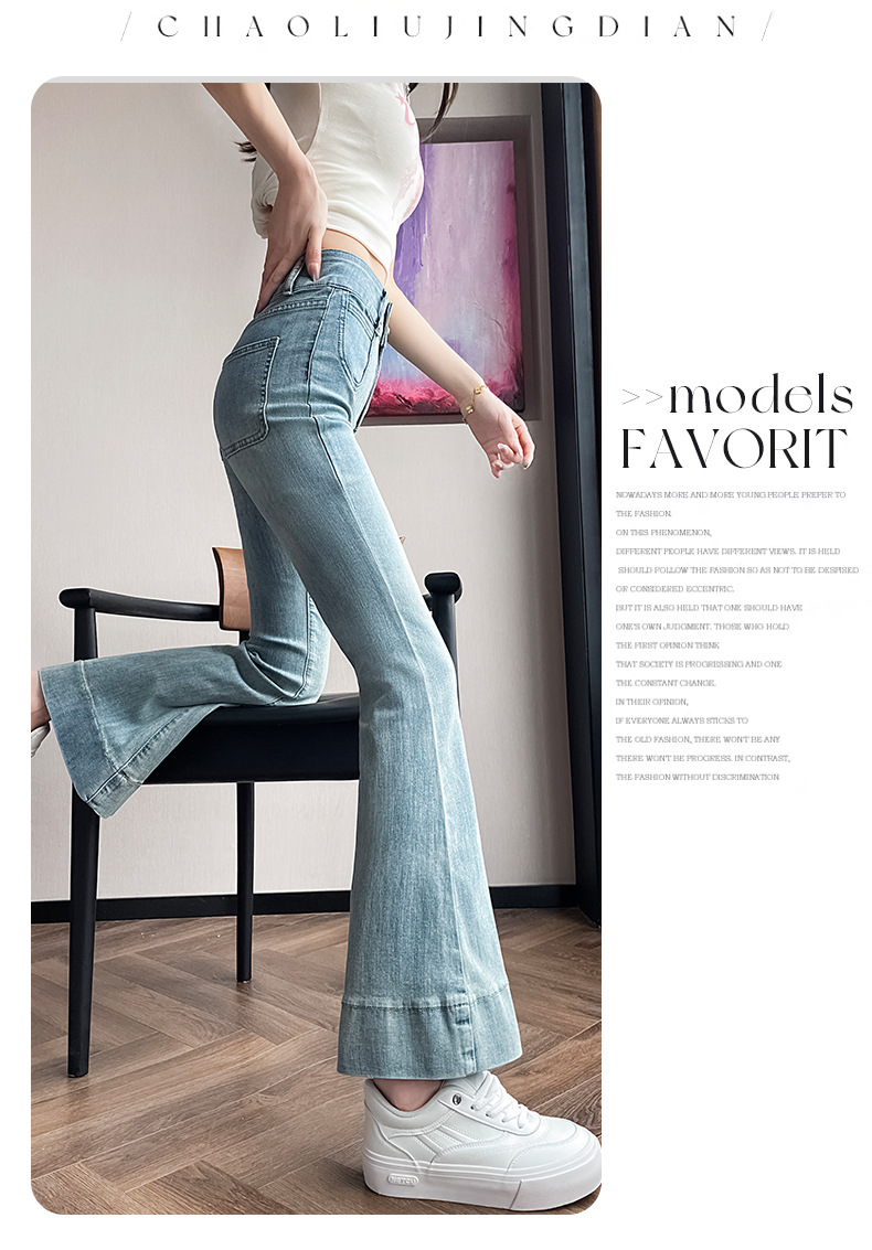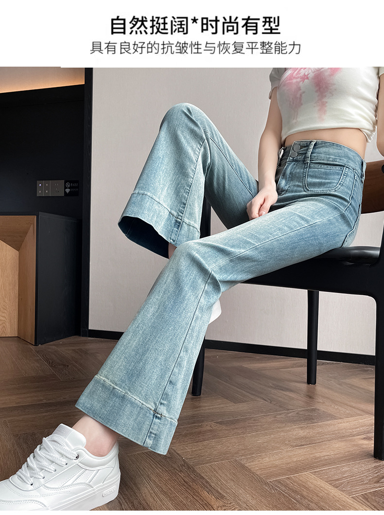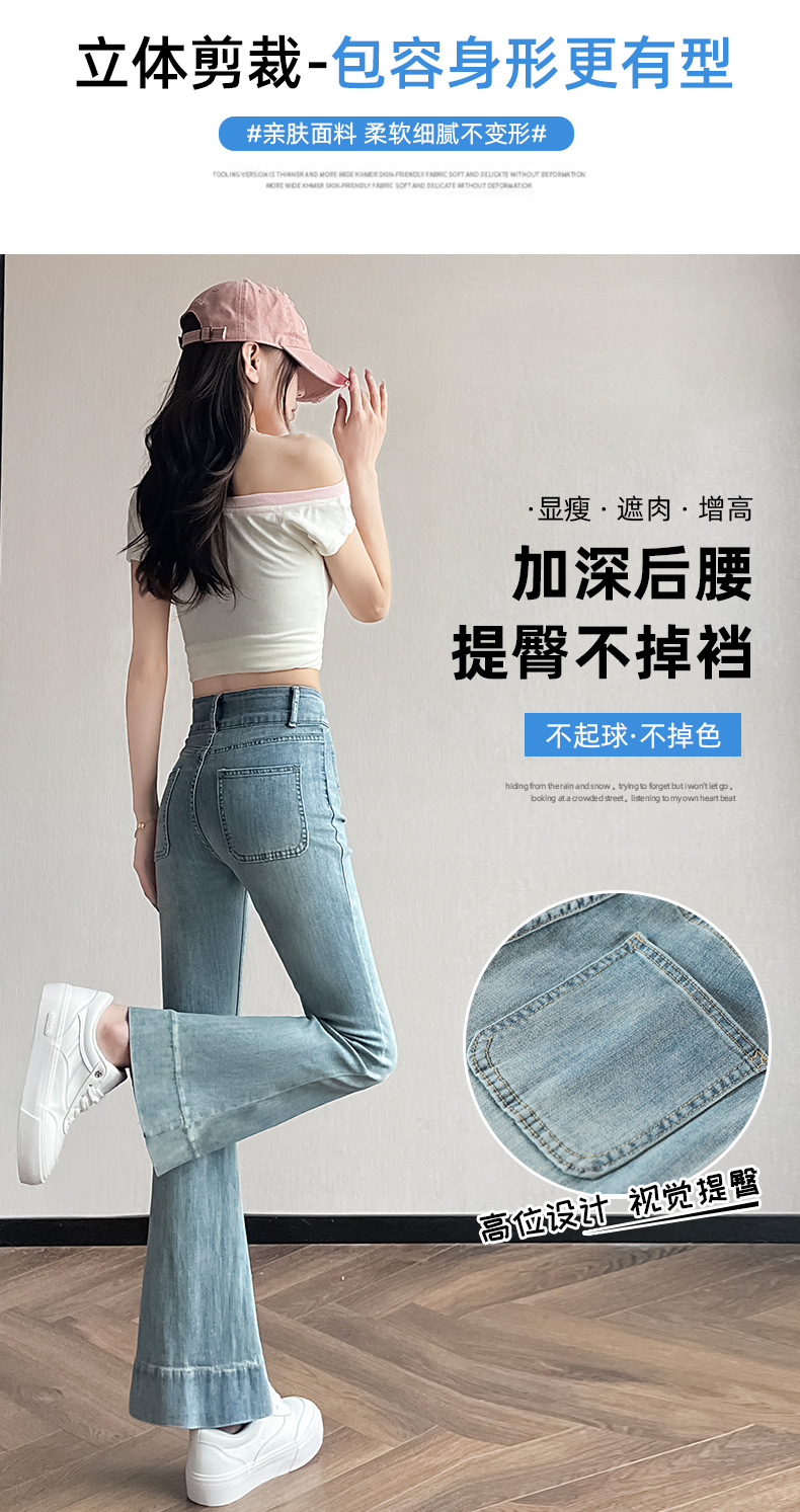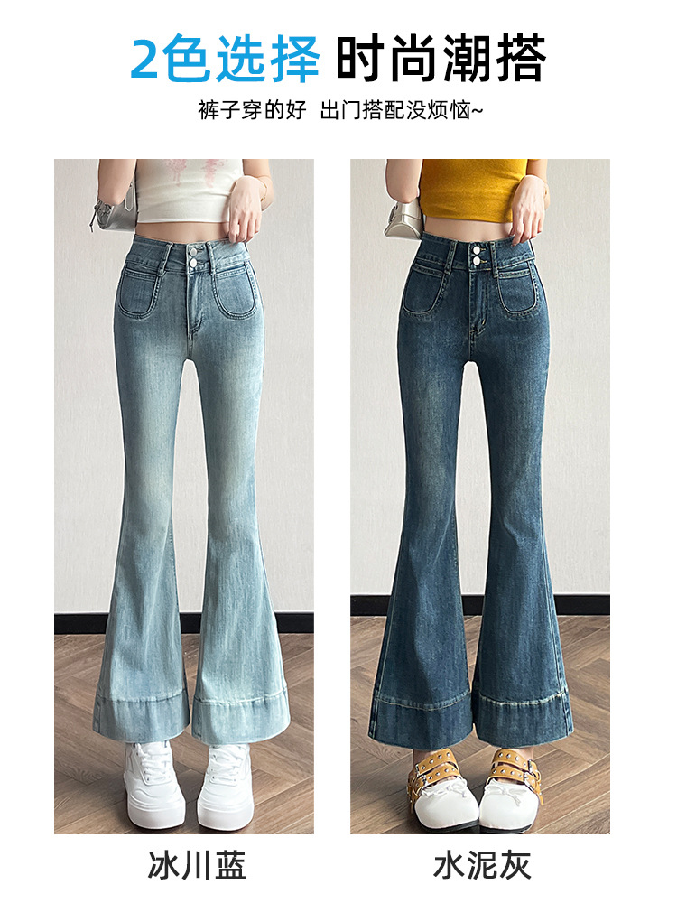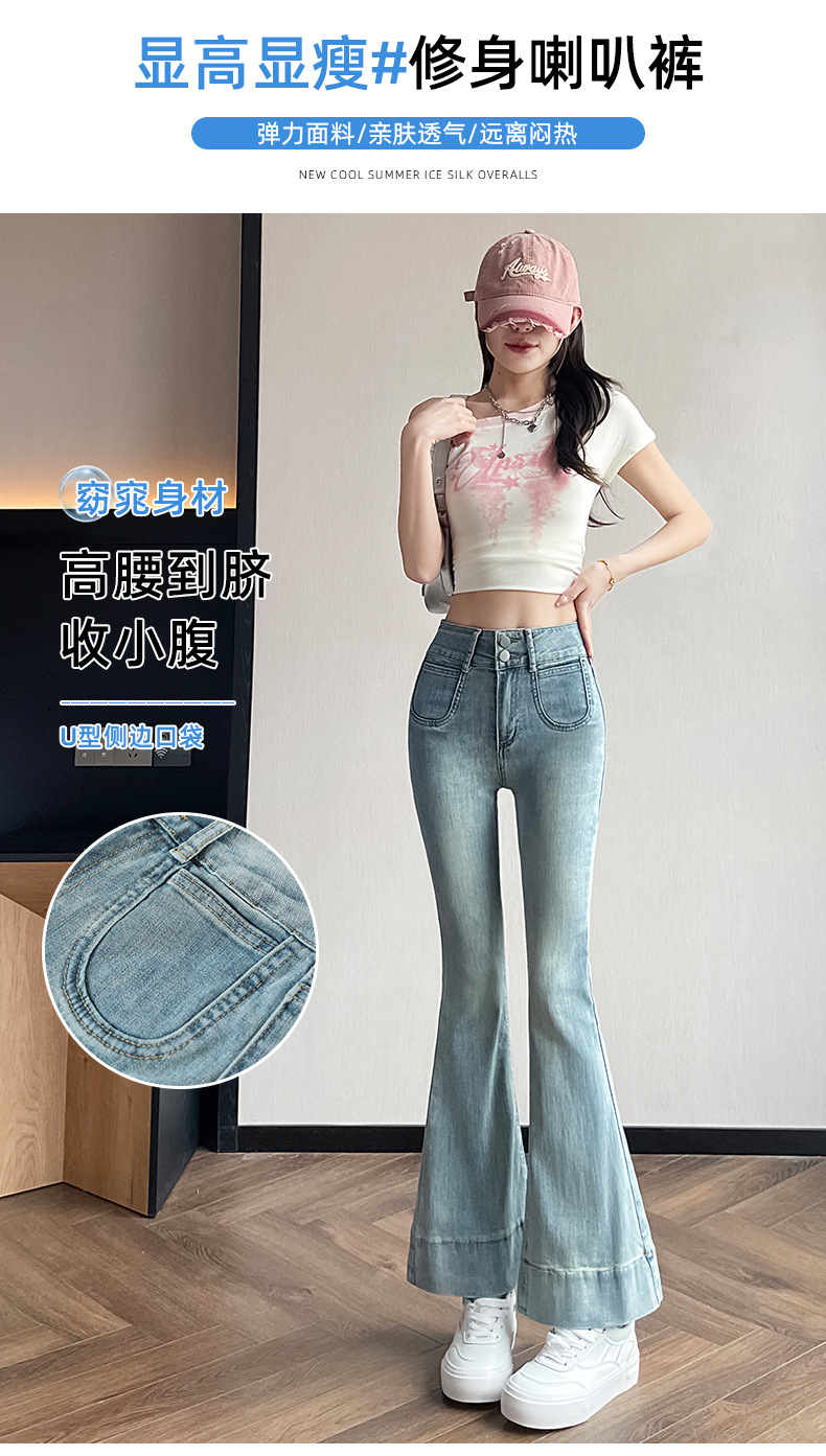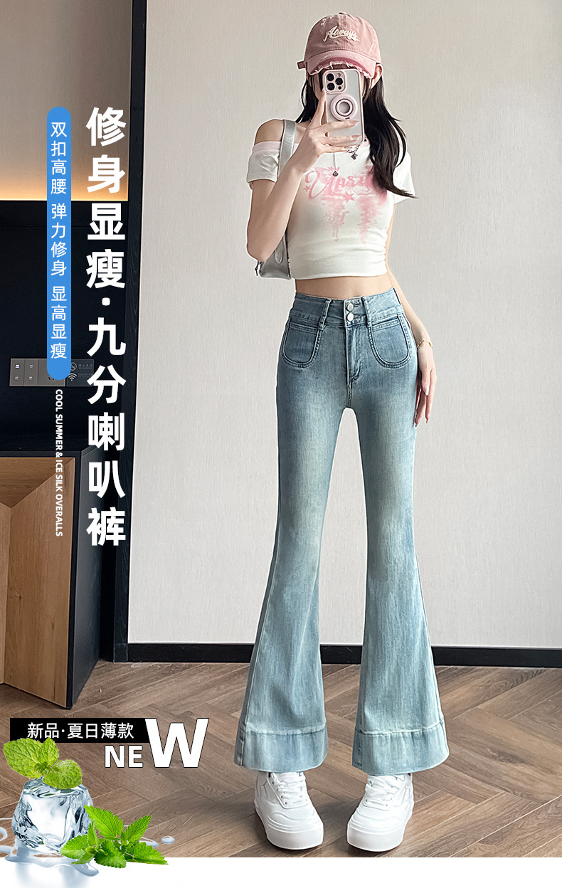 마이크로 플레어 청바지 여성의 여름 얇은 2024 새로운 슬림 패션 폭발 넓은 다리 작은 바지스토어 가기