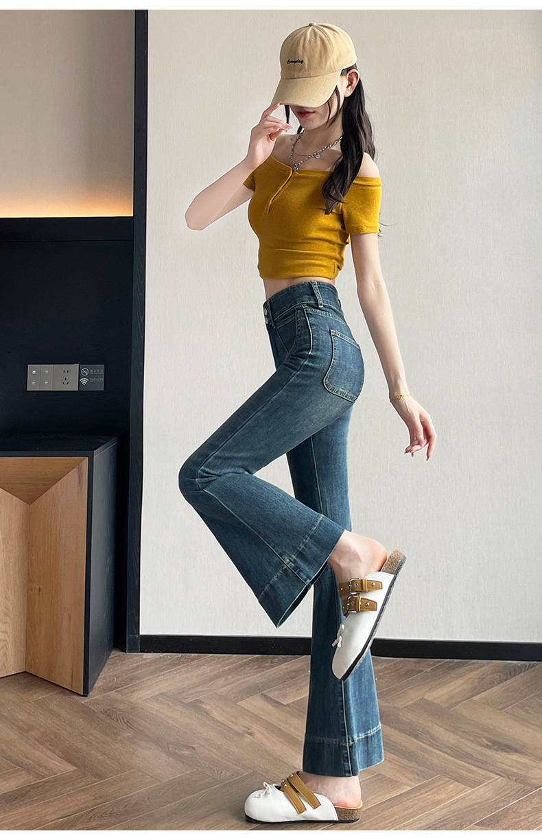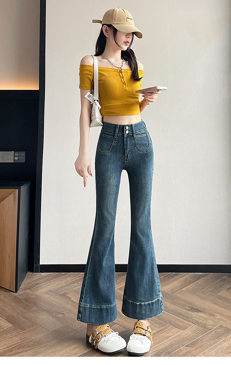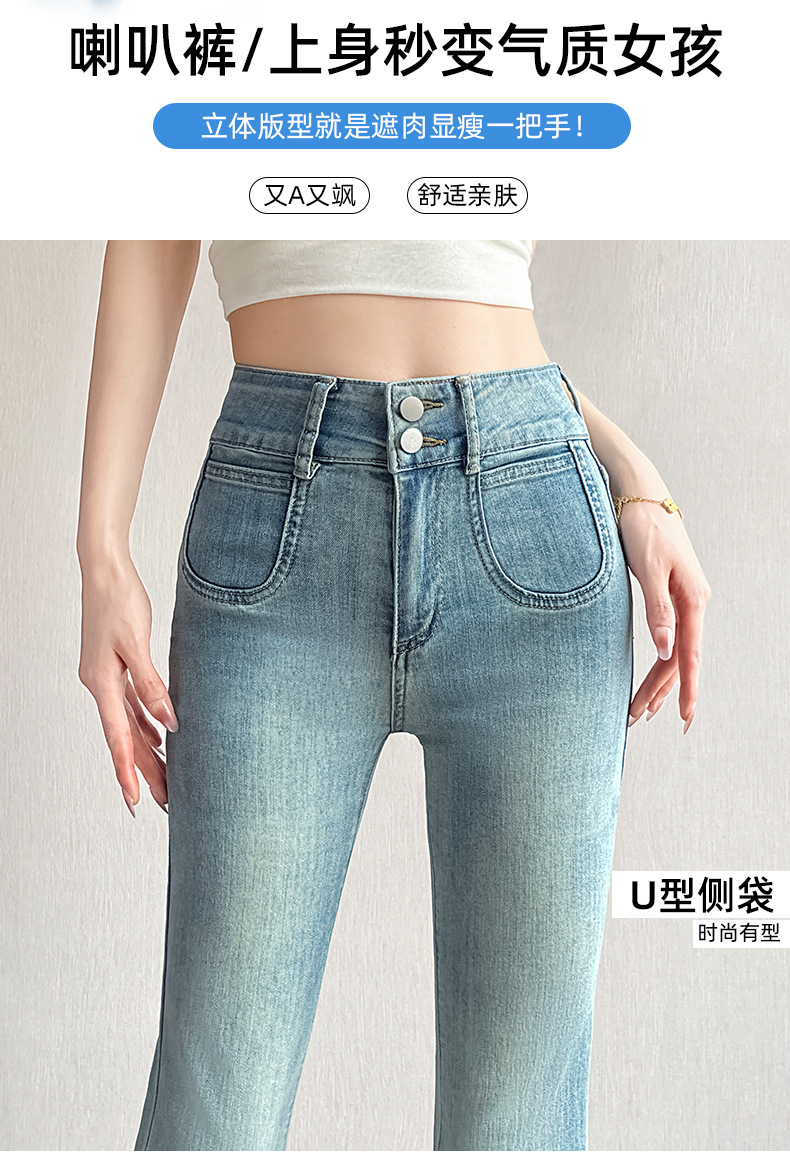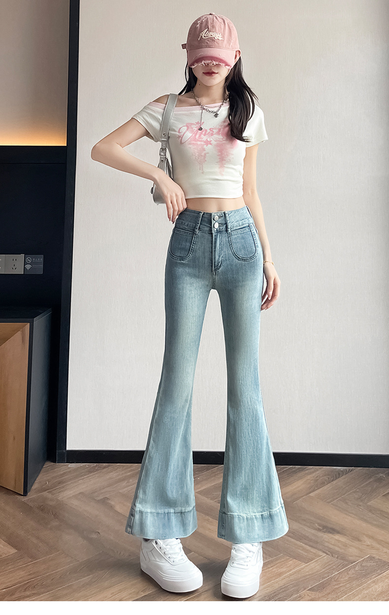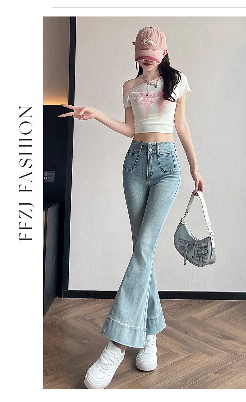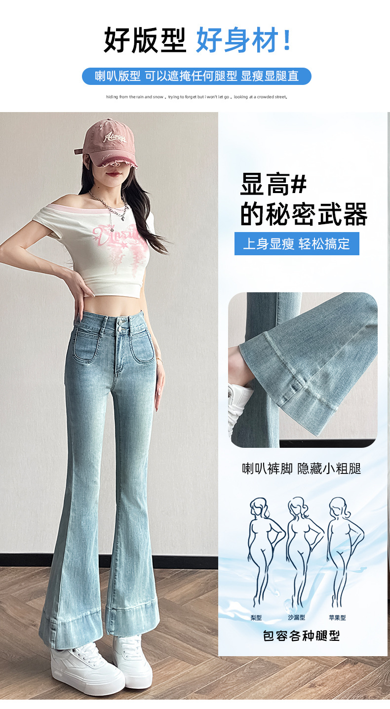 마이크로 플레어 청바지 여성의 여름 얇은 2024 새로운 슬림 패션 폭발 넓은 다리 작은 바지스토어 가기