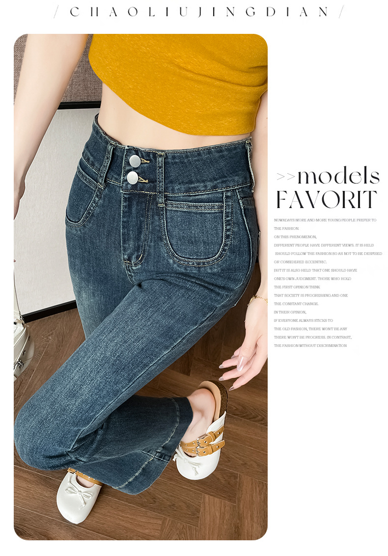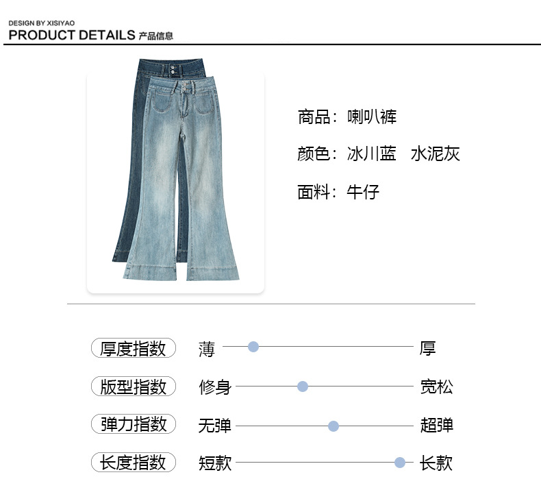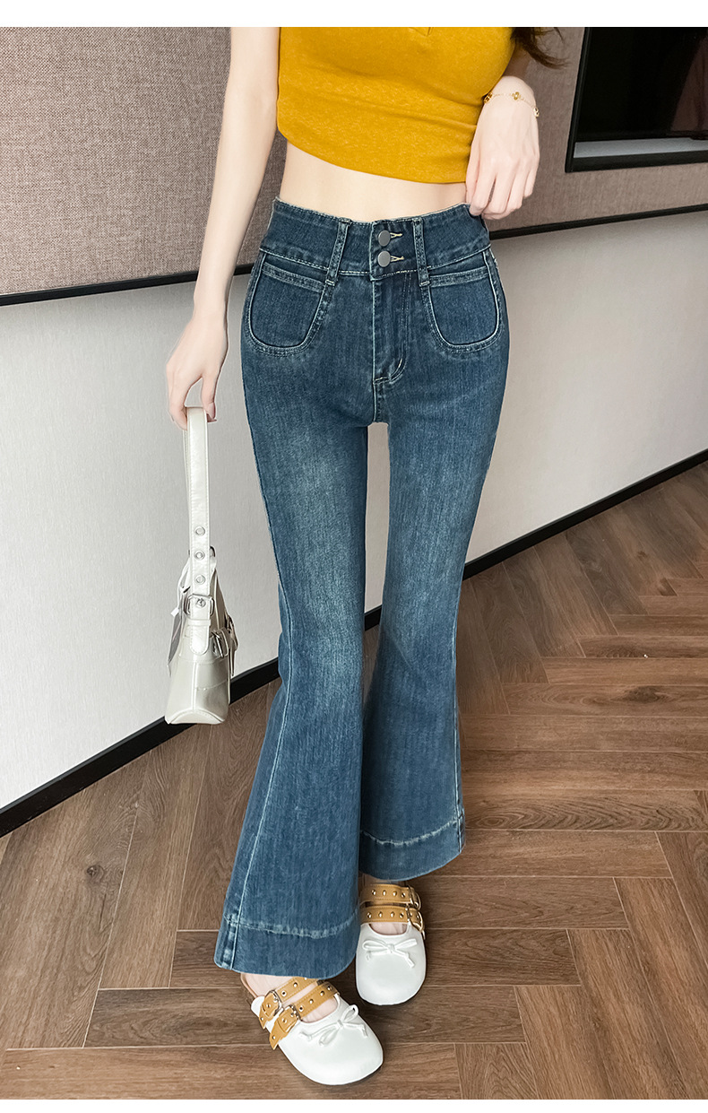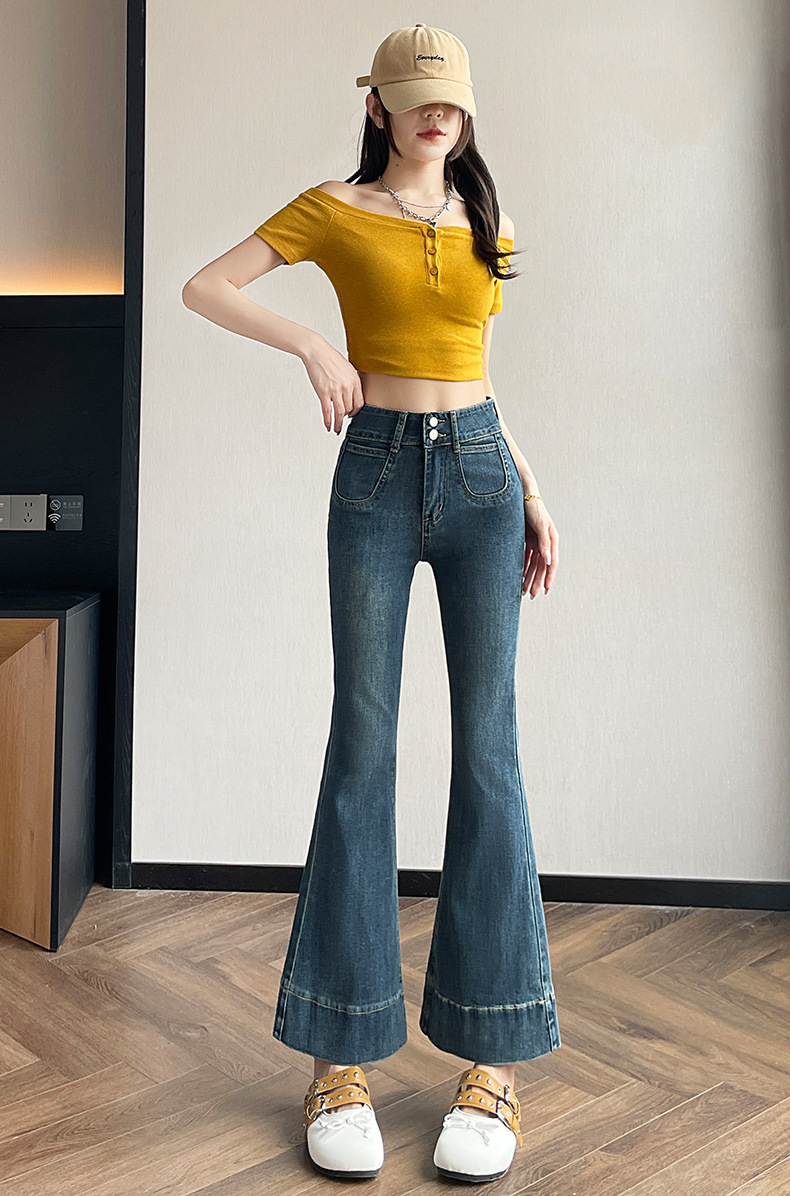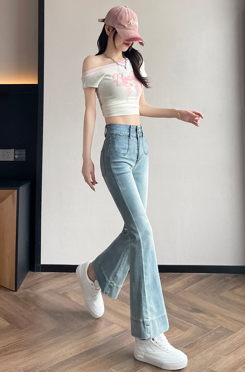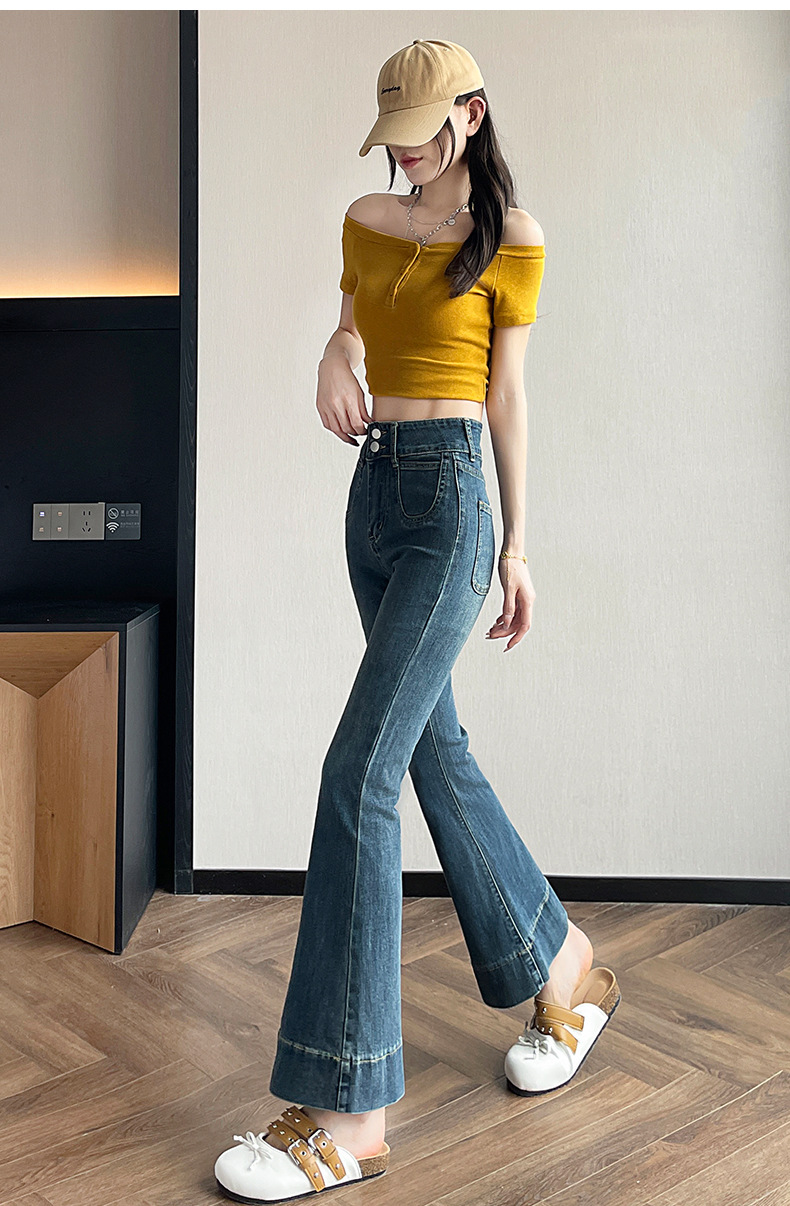 마이크로 플레어 청바지 여성의 여름 얇은 2024 새로운 슬림 패션 폭발 넓은 다리 작은 바지스토어 가기