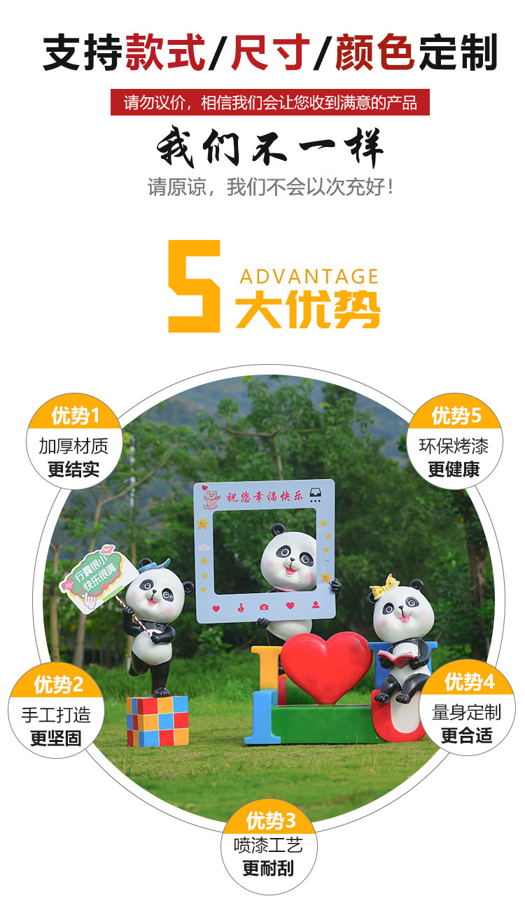 야외 만화 팬더 조각 FRP 쇼핑몰 Meichen 장식 유치원 풍경 지역 잔디 동물 장식품스토어 가기