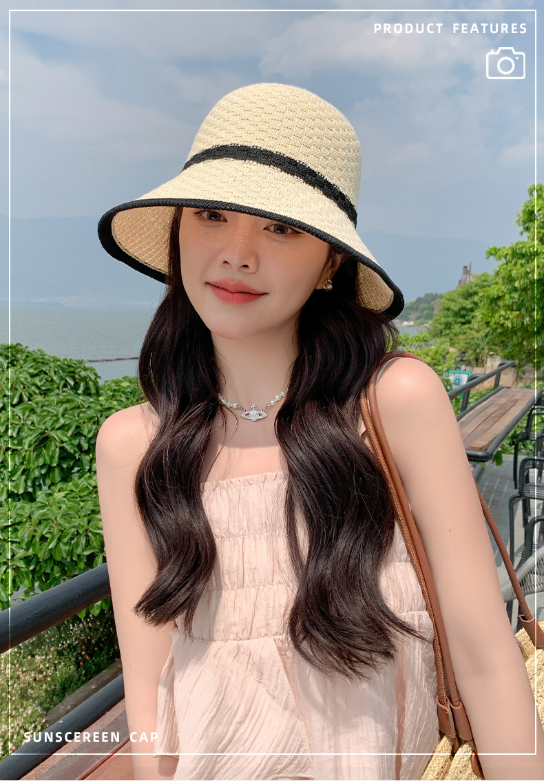 2024 새로운 활 등나무 모자 어린이 여름 차양 넓은 챙이 어부 모자 선 스크린 통기성 UV 모자스토어 가기