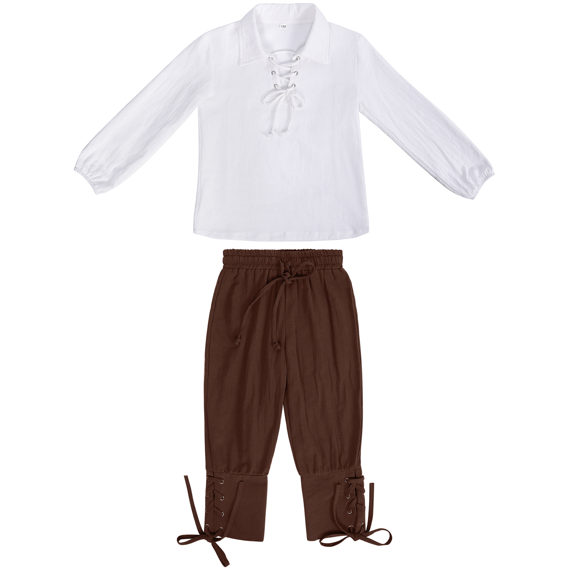중세 해적 세트 셔츠 자른 바지 어린이 르네상스 할로윈 스코틀랜드 제이콥 비트스토어 가기