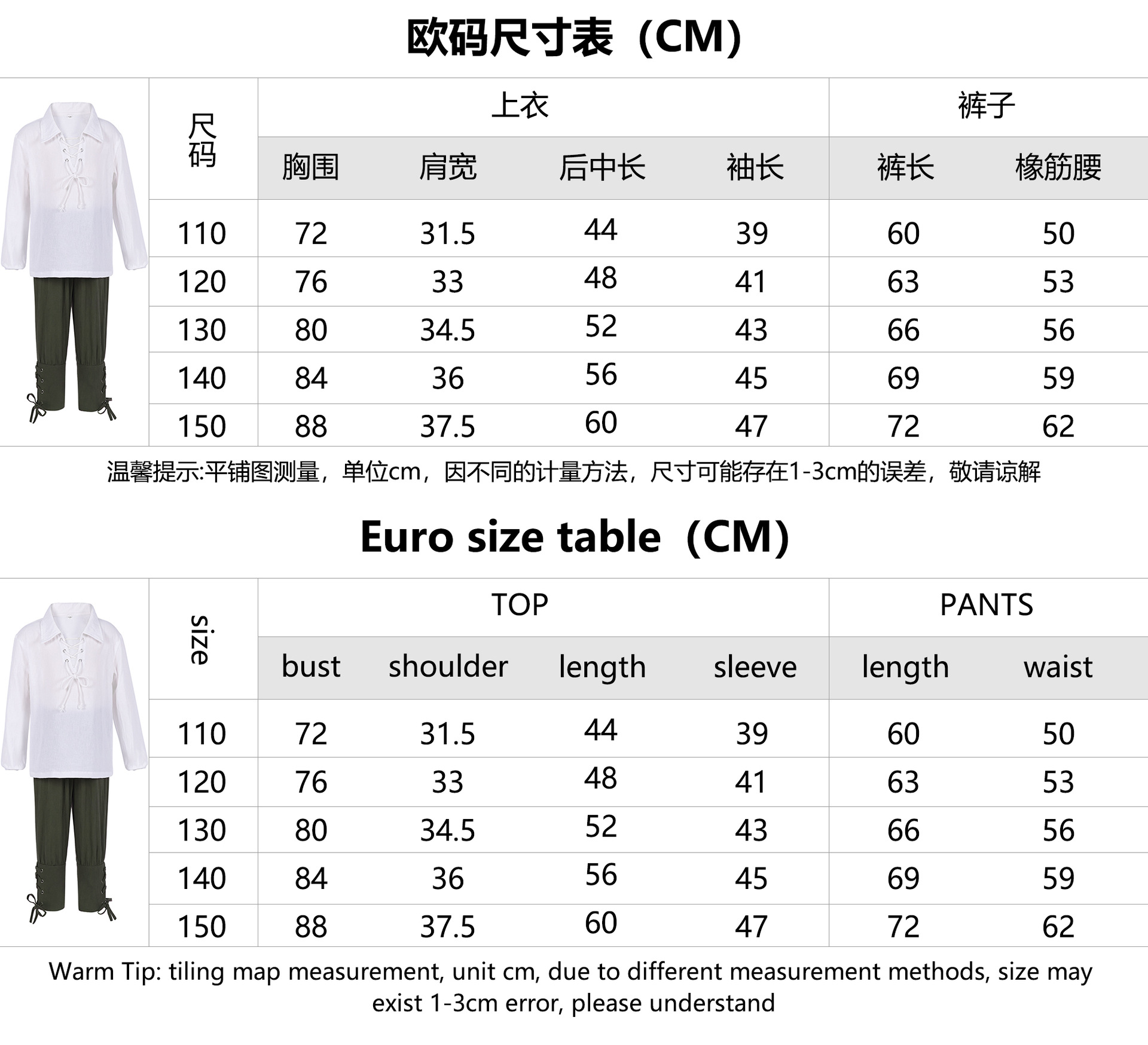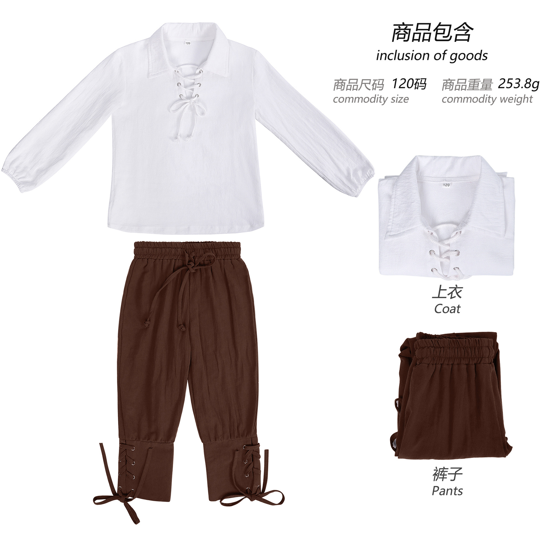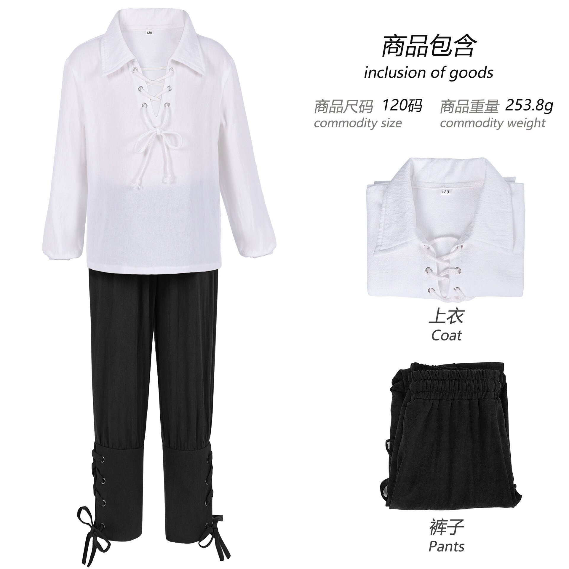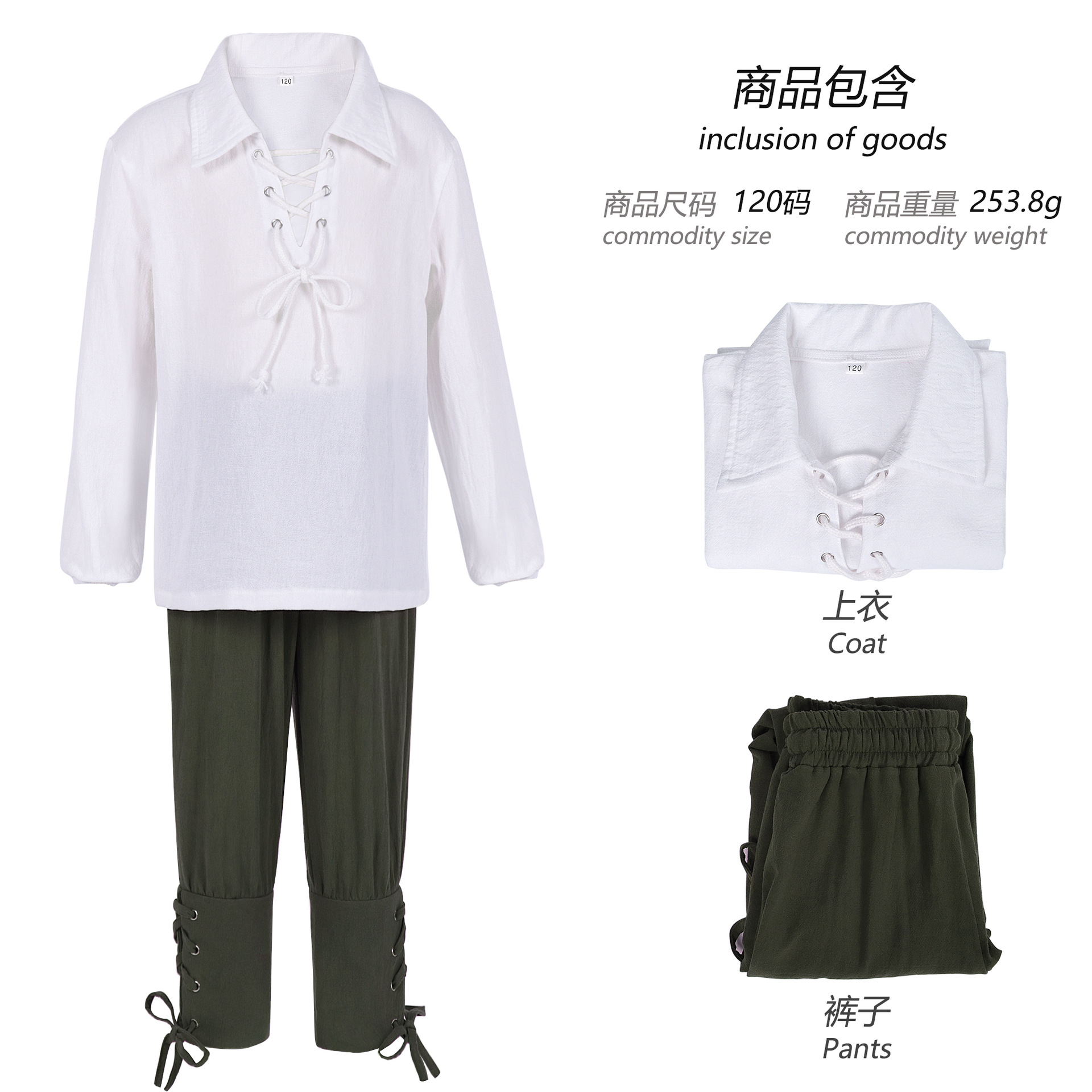 중세 해적 세트 셔츠 자른 바지 어린이 르네상스 할로윈 스코틀랜드 제이콥 비트
