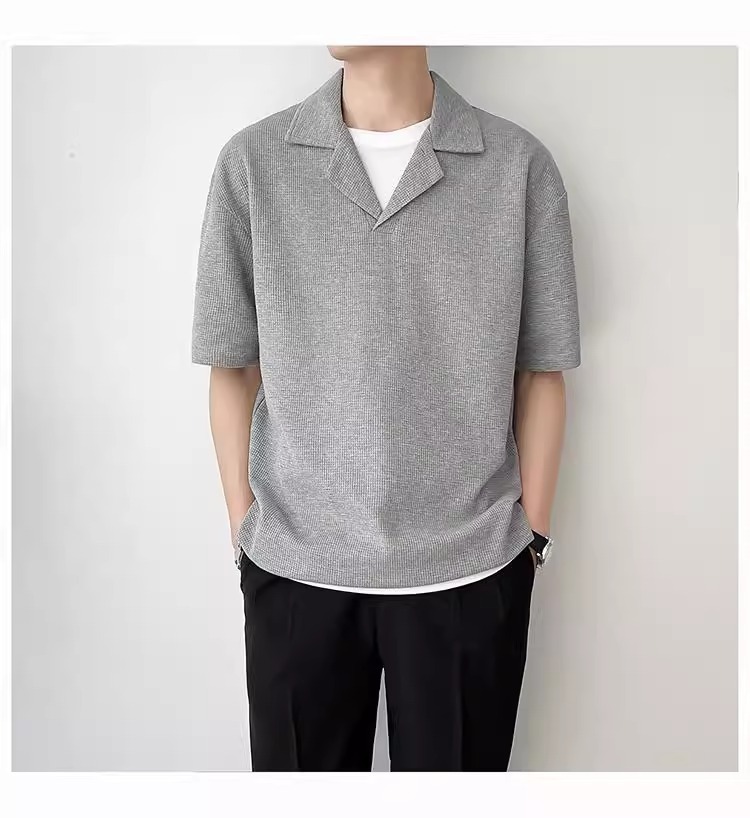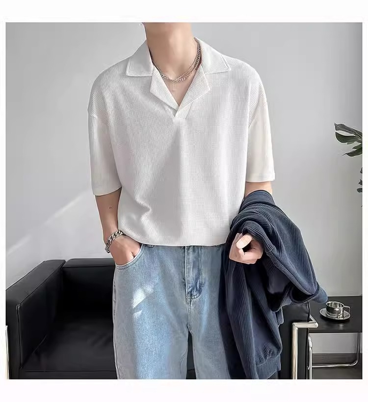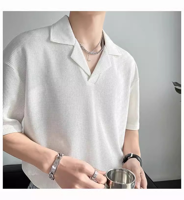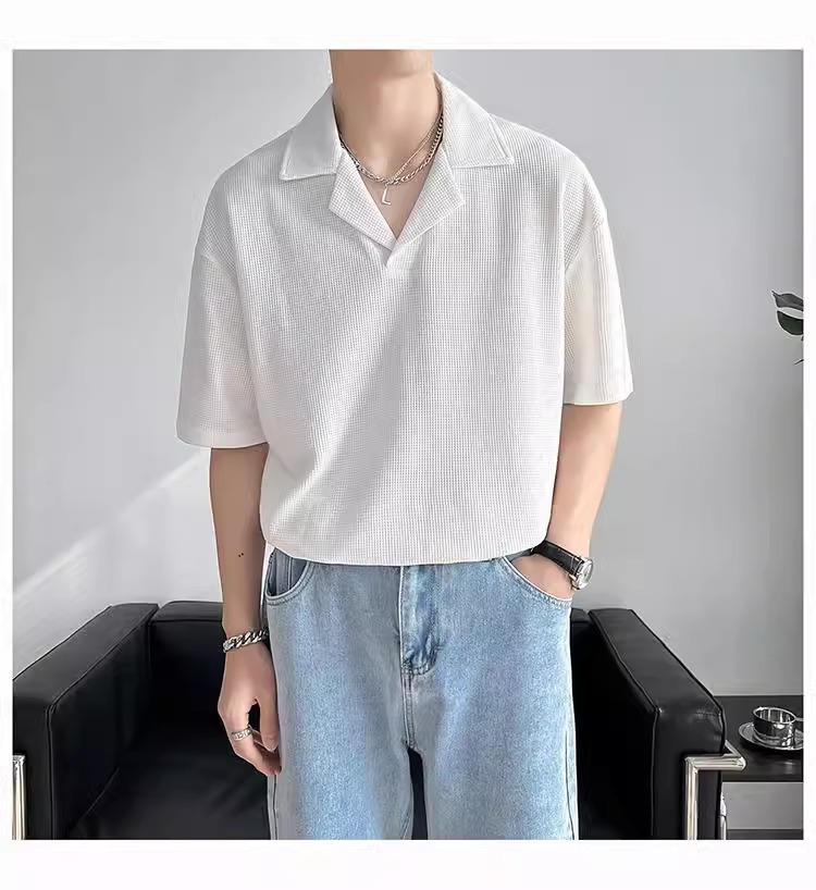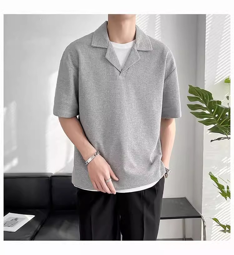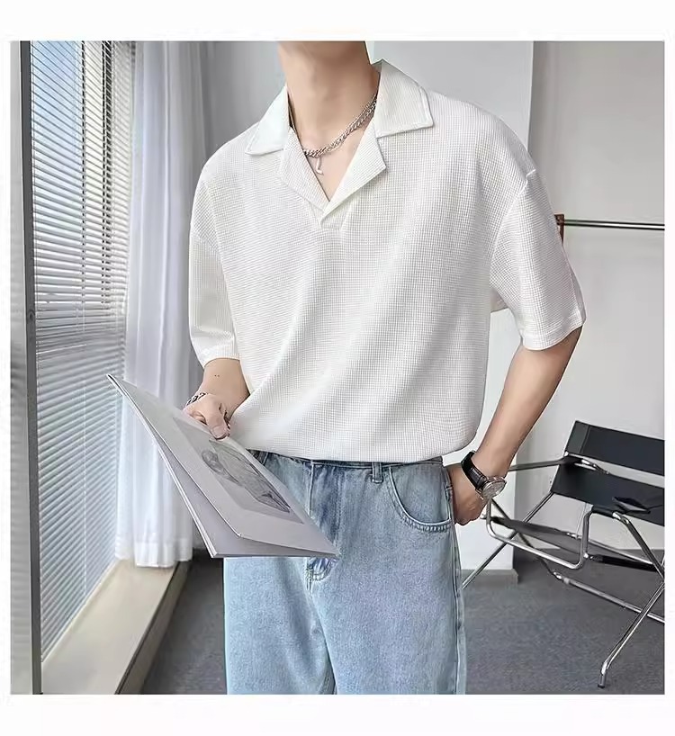 가벼운 성숙한 쿠바 칼라 셔츠 반팔 남자의 유행 브랜드 틈새 디자인 센스 남자의 2024 새로운 스타일 헤어 스타일리스트 도매스토어 가기