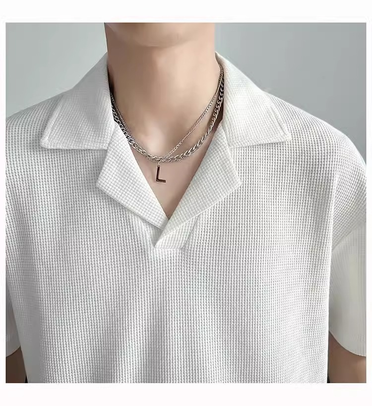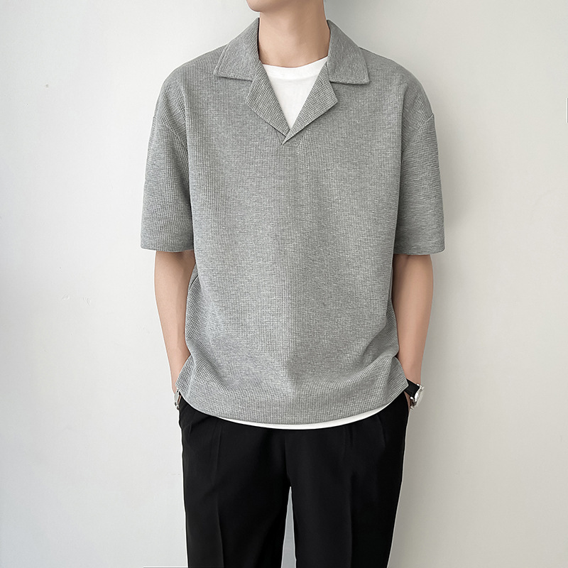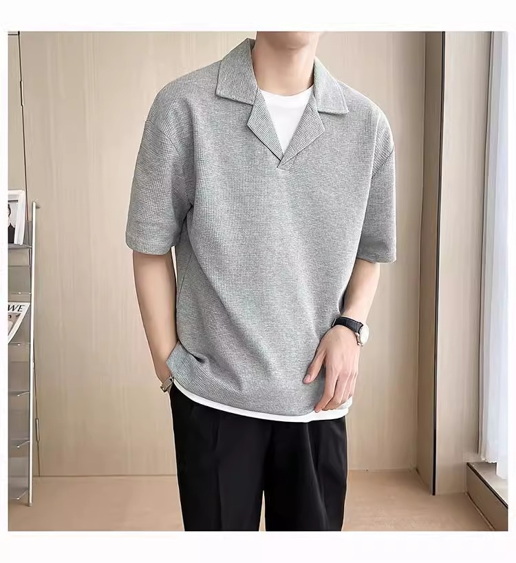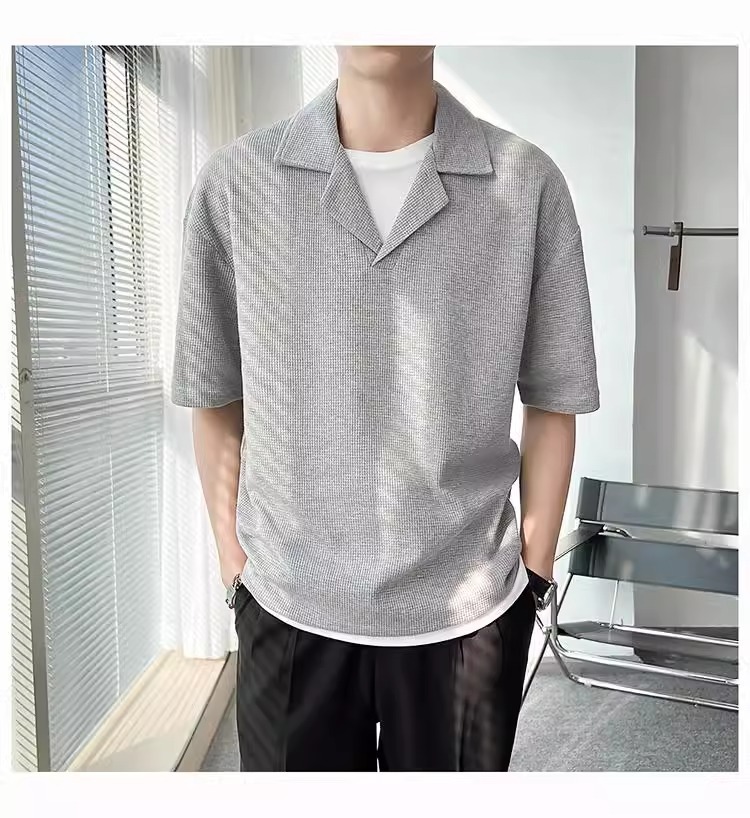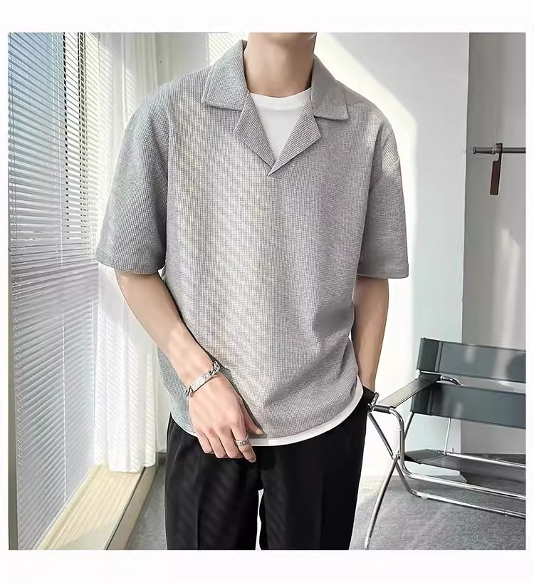 가벼운 성숙한 쿠바 칼라 셔츠 반팔 남자의 유행 브랜드 틈새 디자인 센스 남자의 2024 새로운 스타일 헤어 스타일리스트 도매