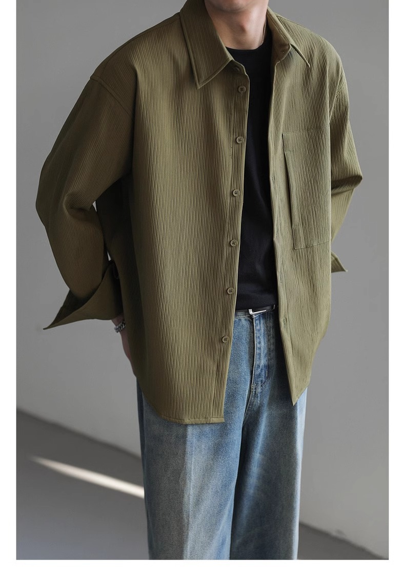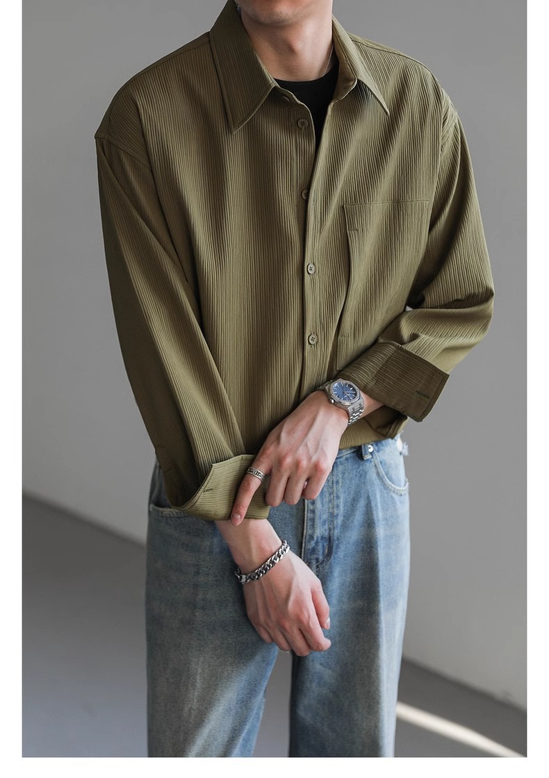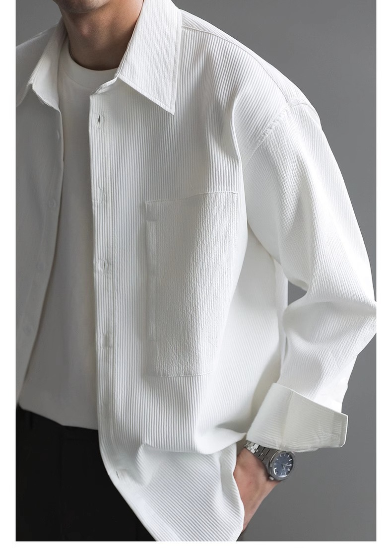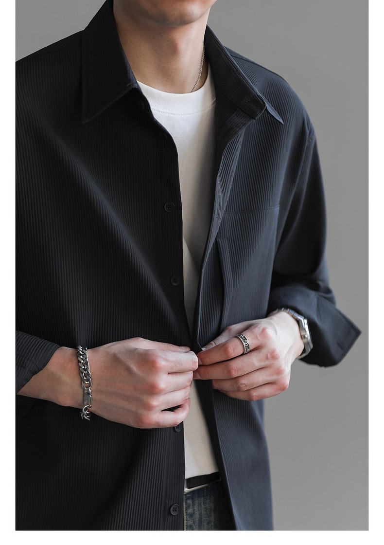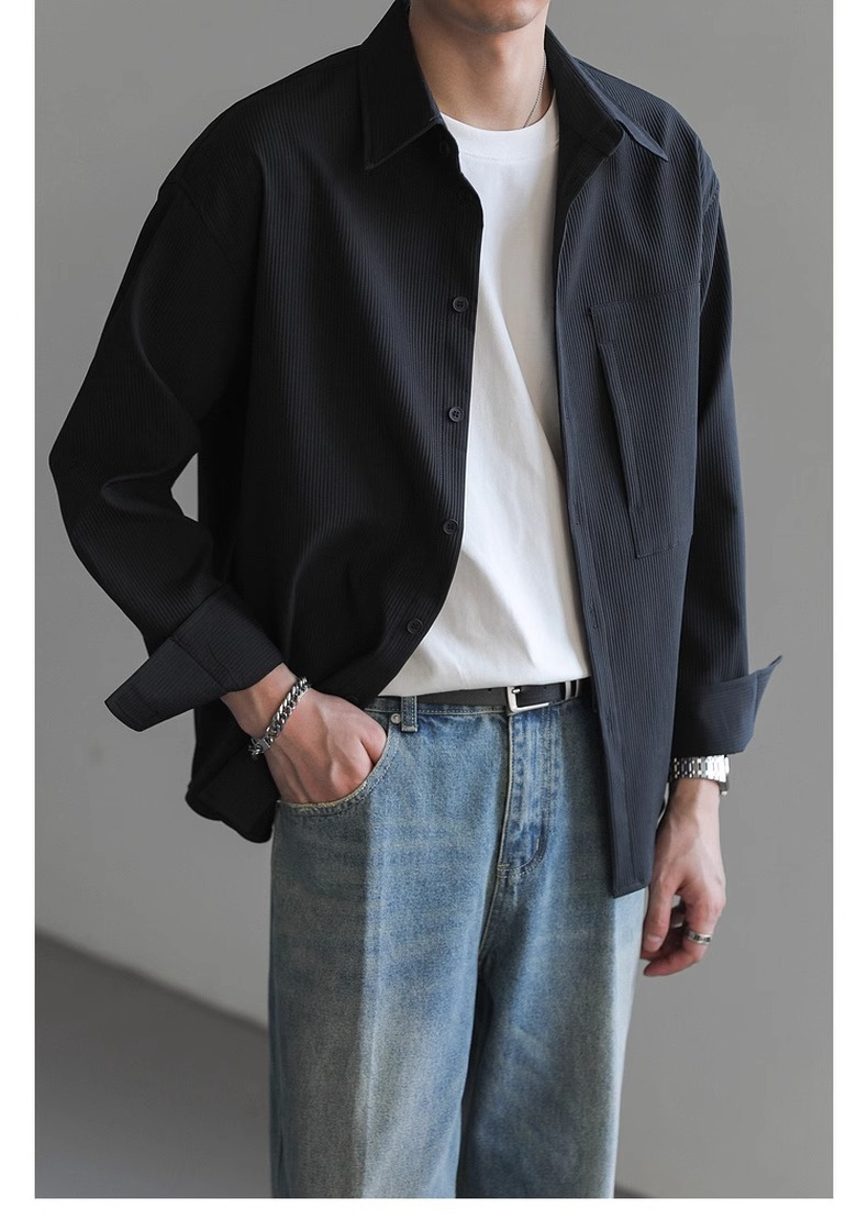 한국 스타일 느슨한 긴팔 셔츠 남자의 봄과 가을 새로운 빛 럭셔리 포장 유행 단색 비 철 셔츠 탑스토어 가기