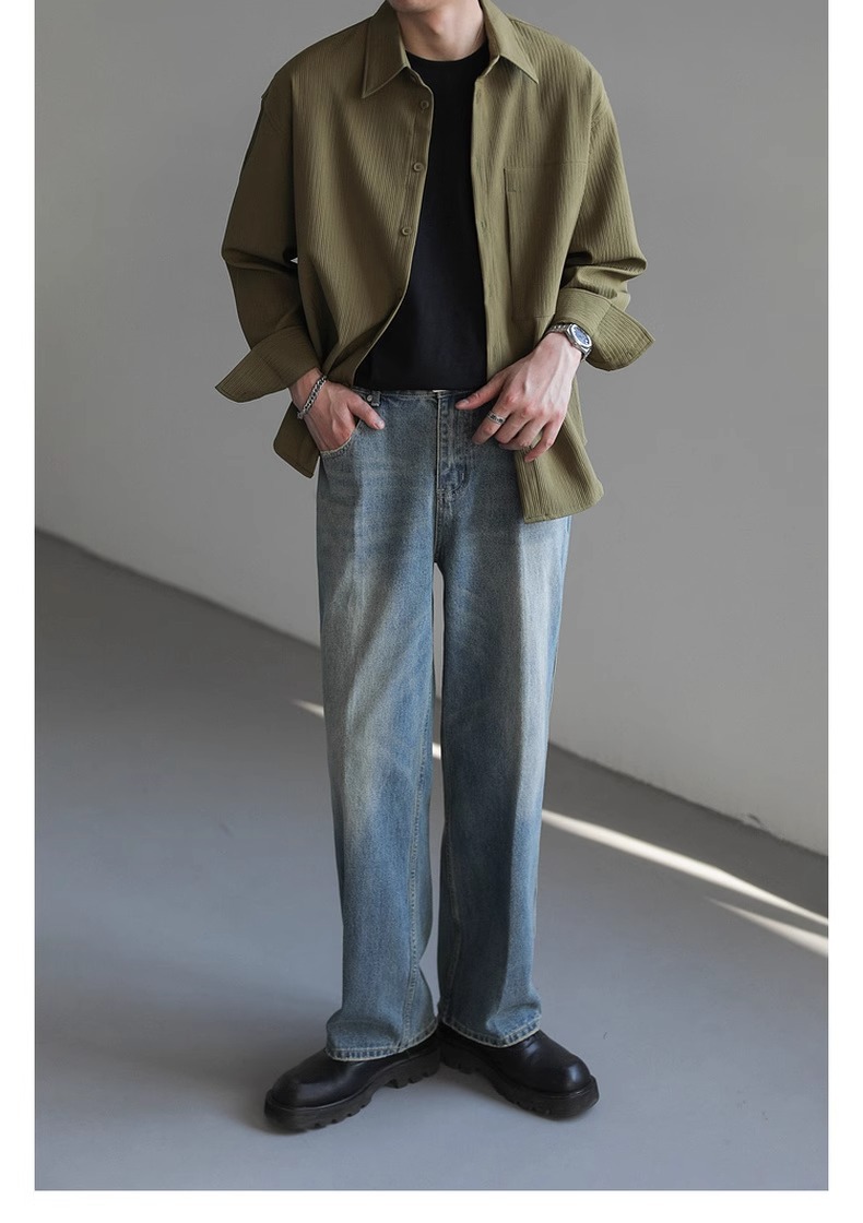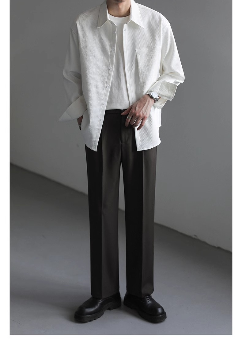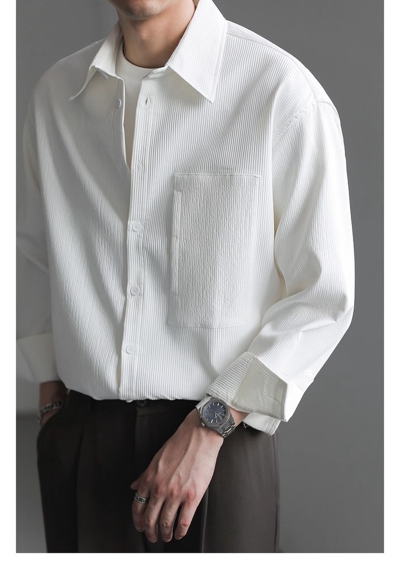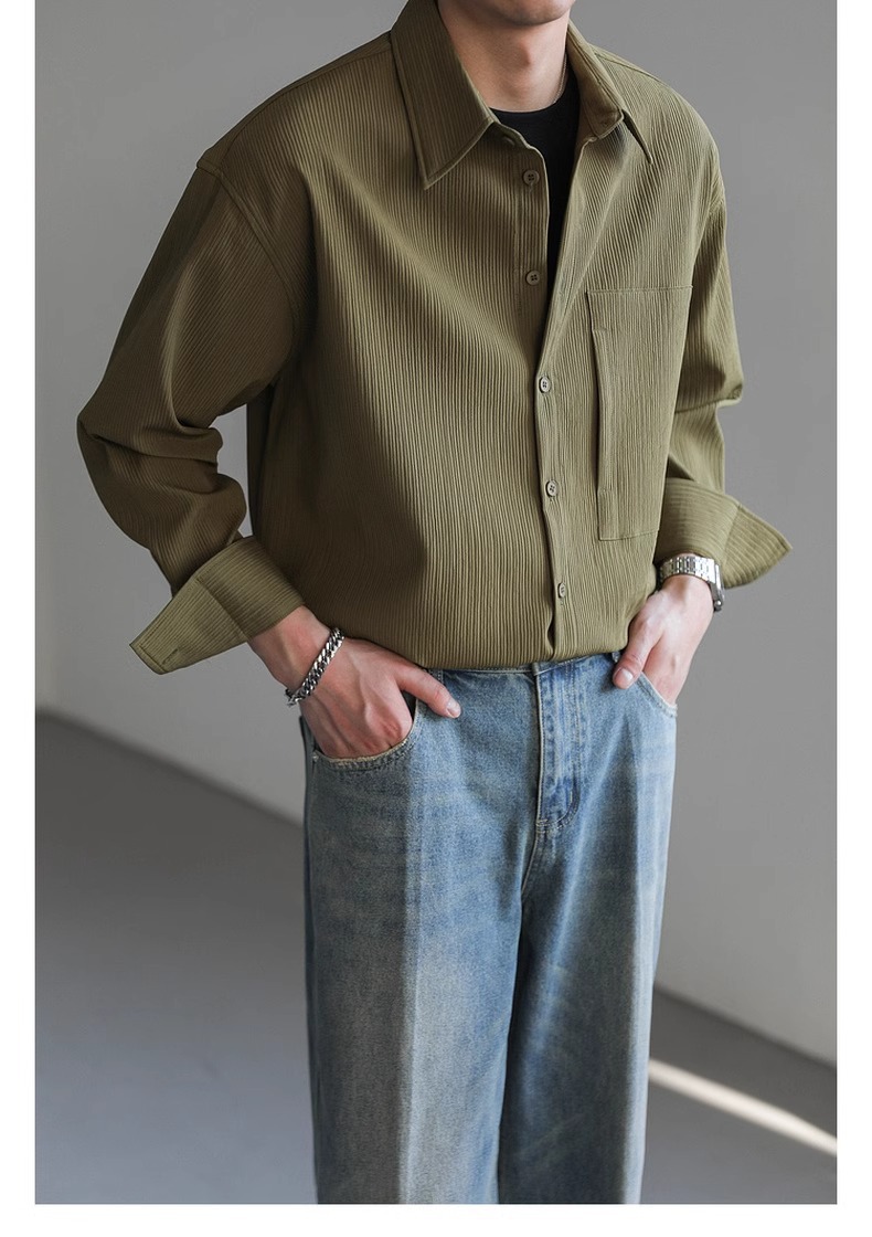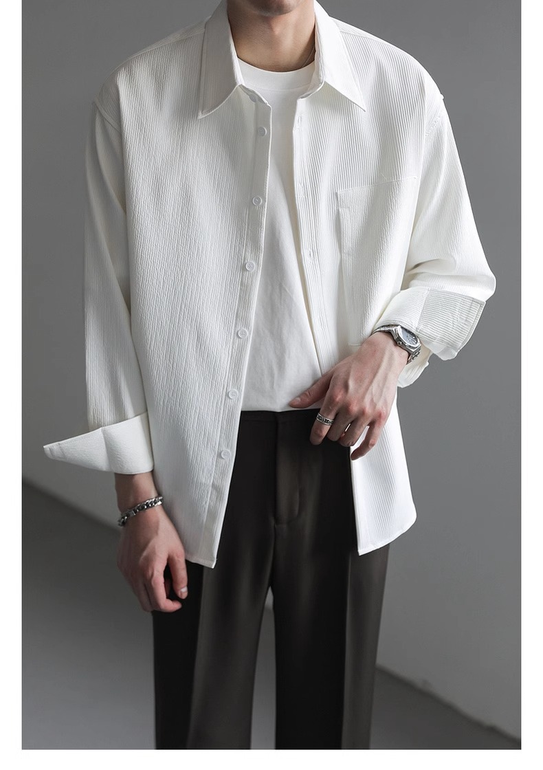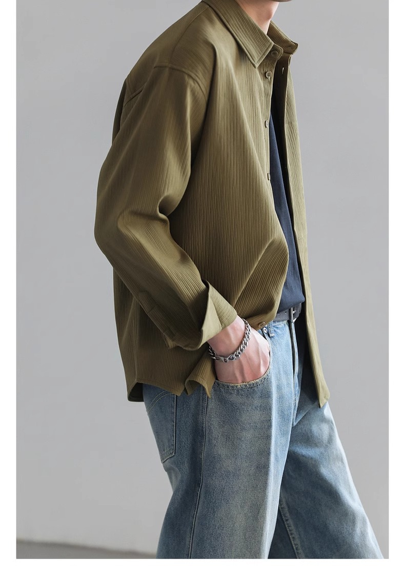 한국 스타일 느슨한 긴팔 셔츠 남자의 봄과 가을 새로운 빛 럭셔리 포장 유행 단색 비 철 셔츠 탑스토어 가기