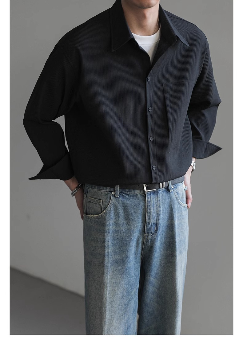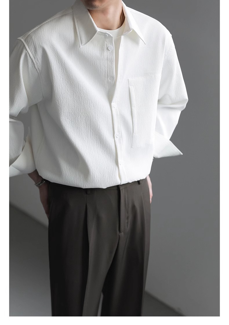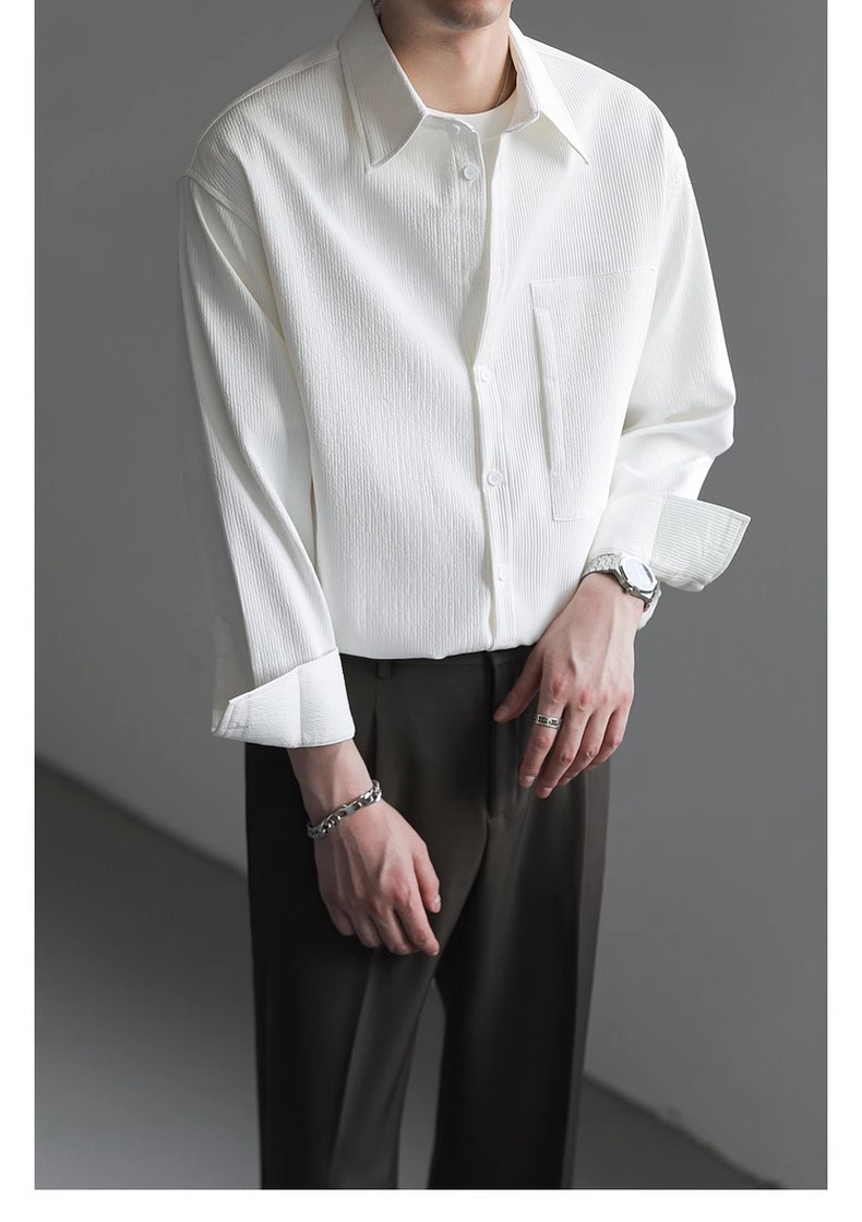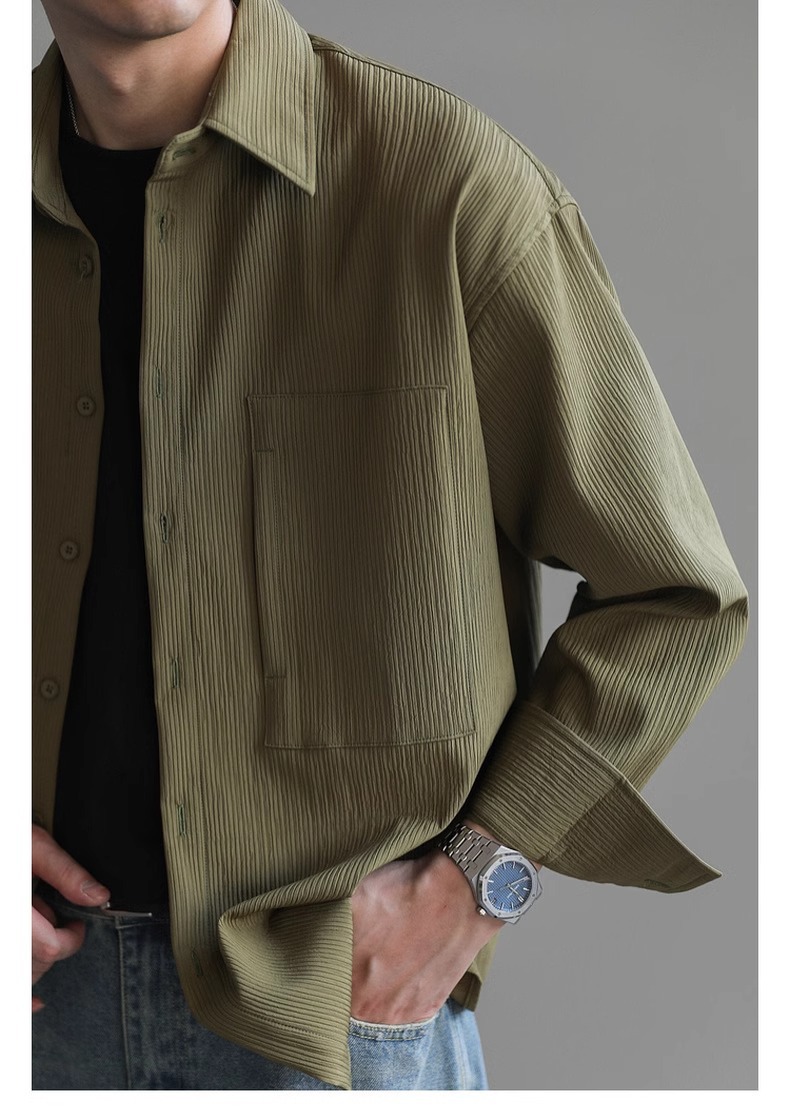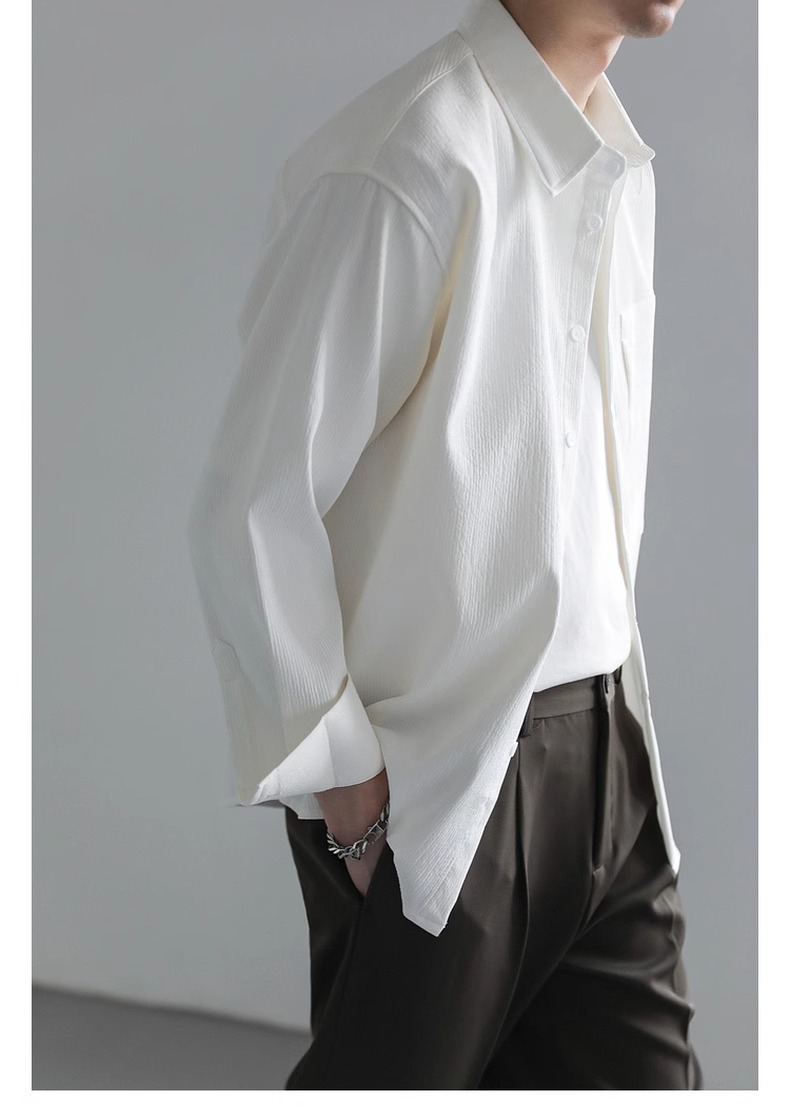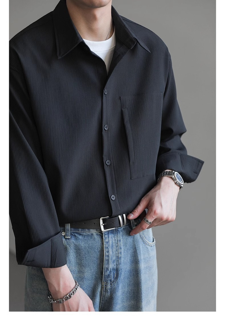 한국 스타일 느슨한 긴팔 셔츠 남자의 봄과 가을 새로운 빛 럭셔리 포장 유행 단색 비 철 셔츠 탑