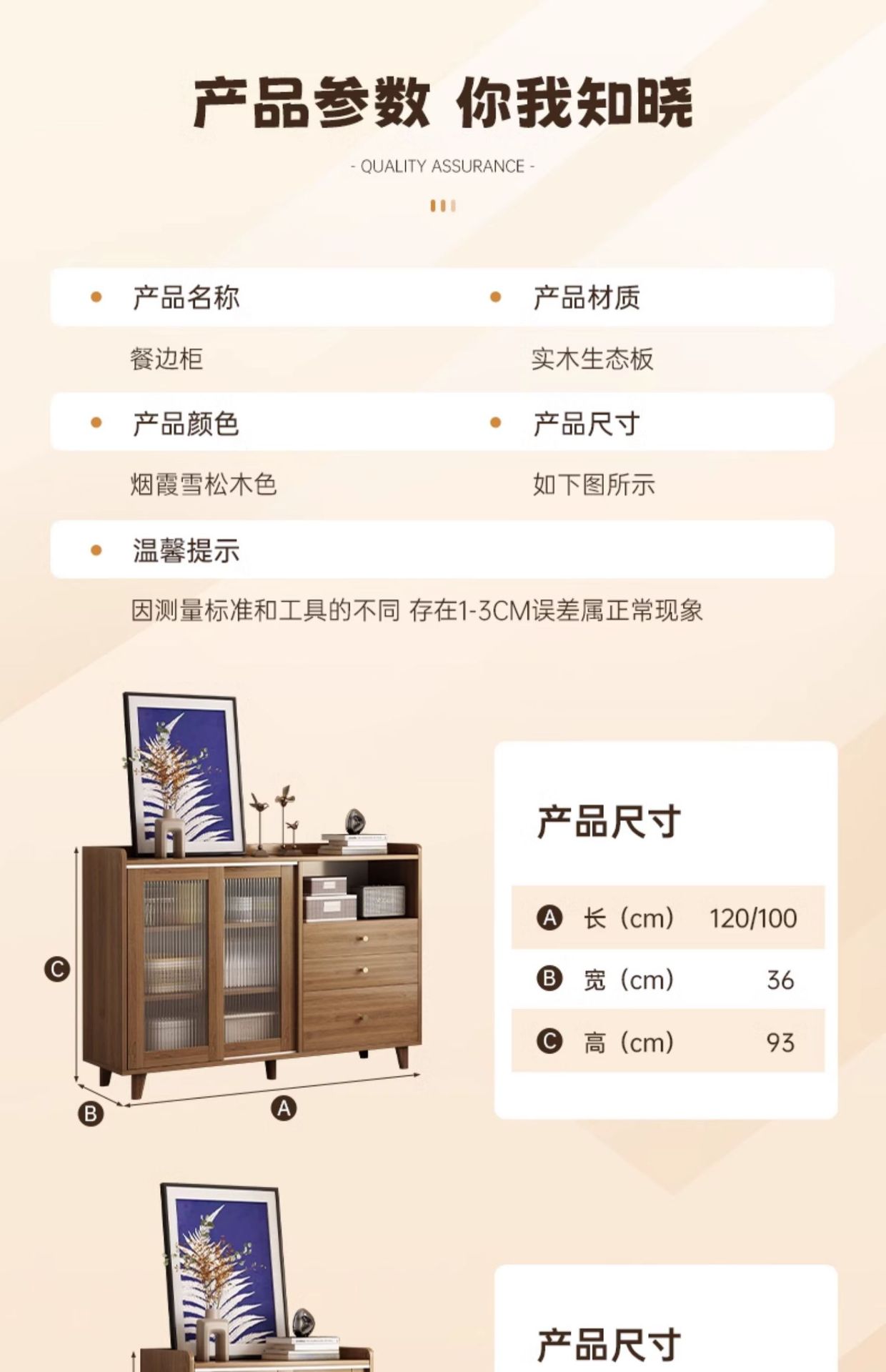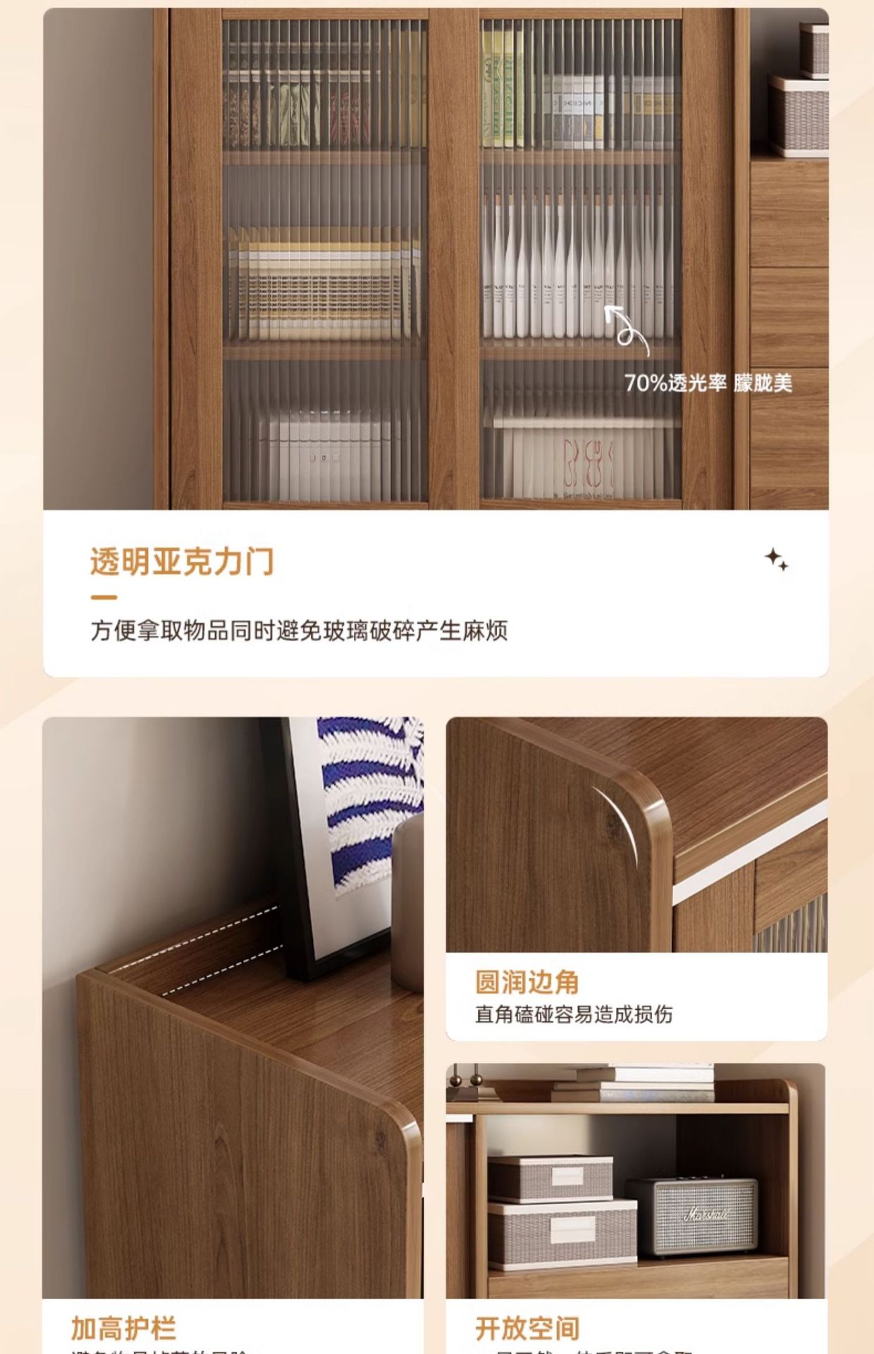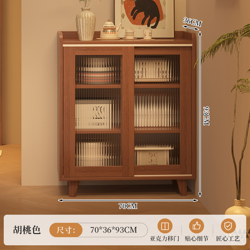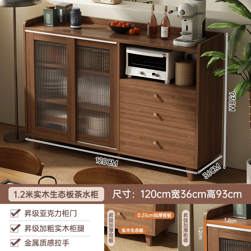 • [호두 색상] 120cm 모든 단단한 나무 생태 보드 아크릴 슬라이딩 도어 차 캐비닛