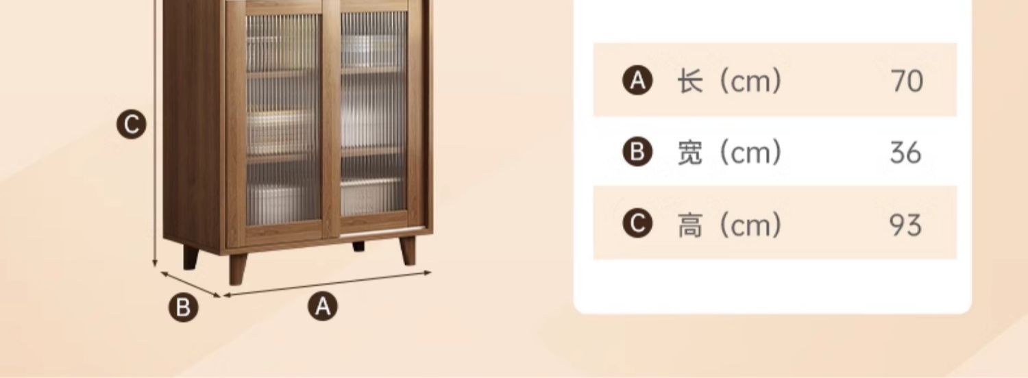 • [원목 생태보드] 0.7m 다크월넛 3단 미닫이 찬장