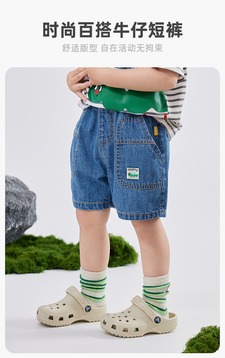 [6 세트 착용] 낙서 가족 어린이 청바지 여름 티셔츠 아기 반팔 반바지 여름 아기 바지스토어 가기