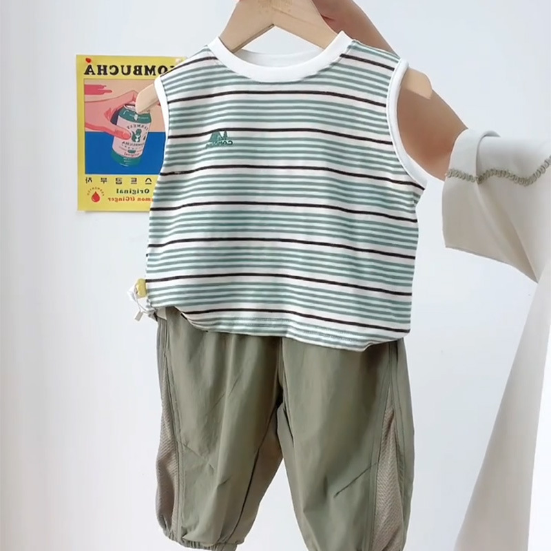 • 세트 3 조끼-흰색과 녹색 스트립 022